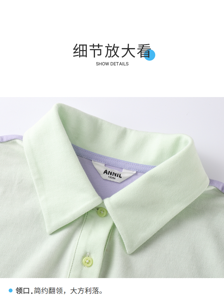 女童装polo衫透气吸湿短袖夏新款纯棉拼接简约翻领t恤安奈儿童装EG321249