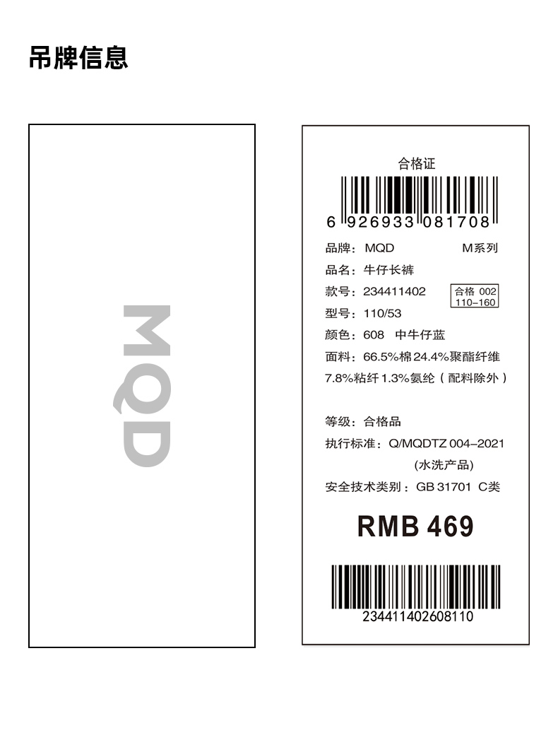【MQD】女童冬季舒适直筒休闲时尚牛仔长裤