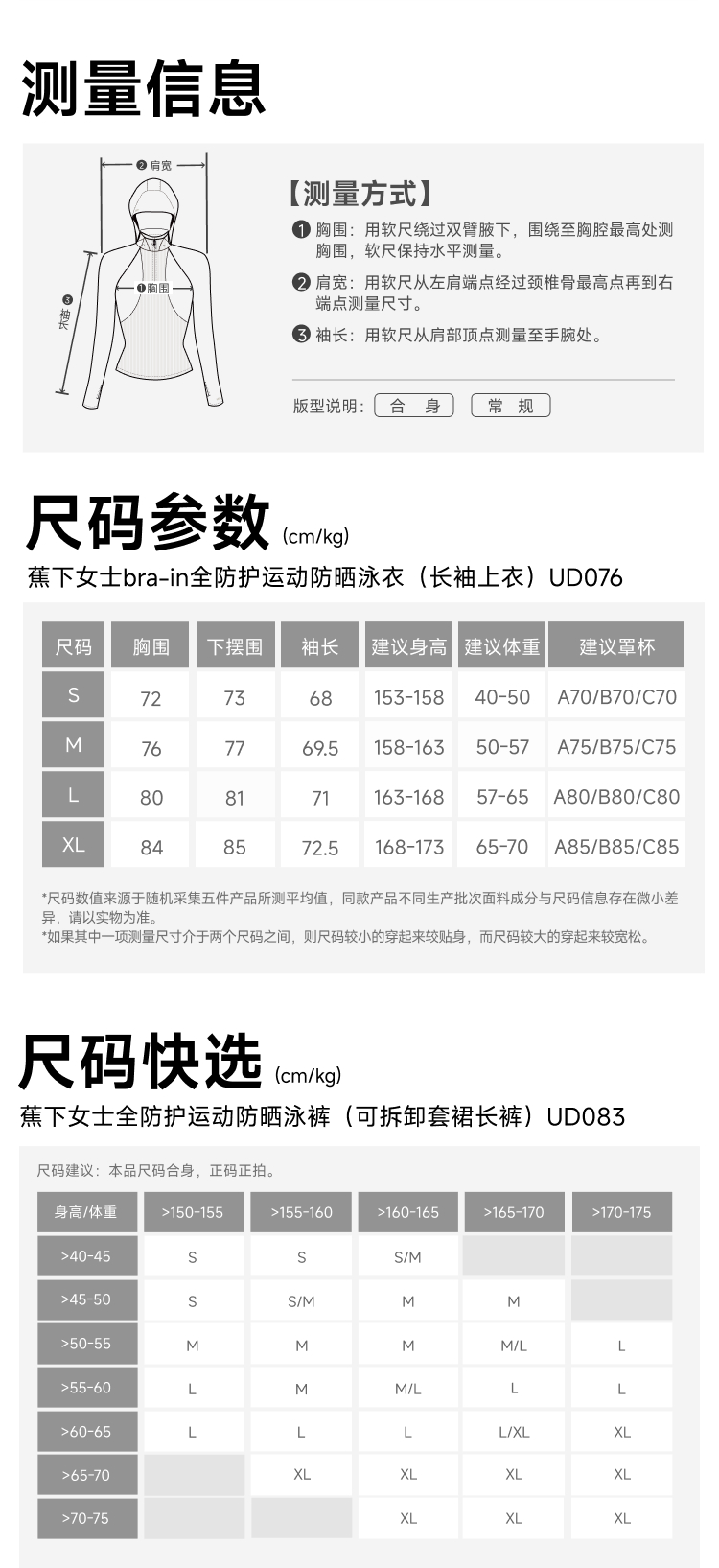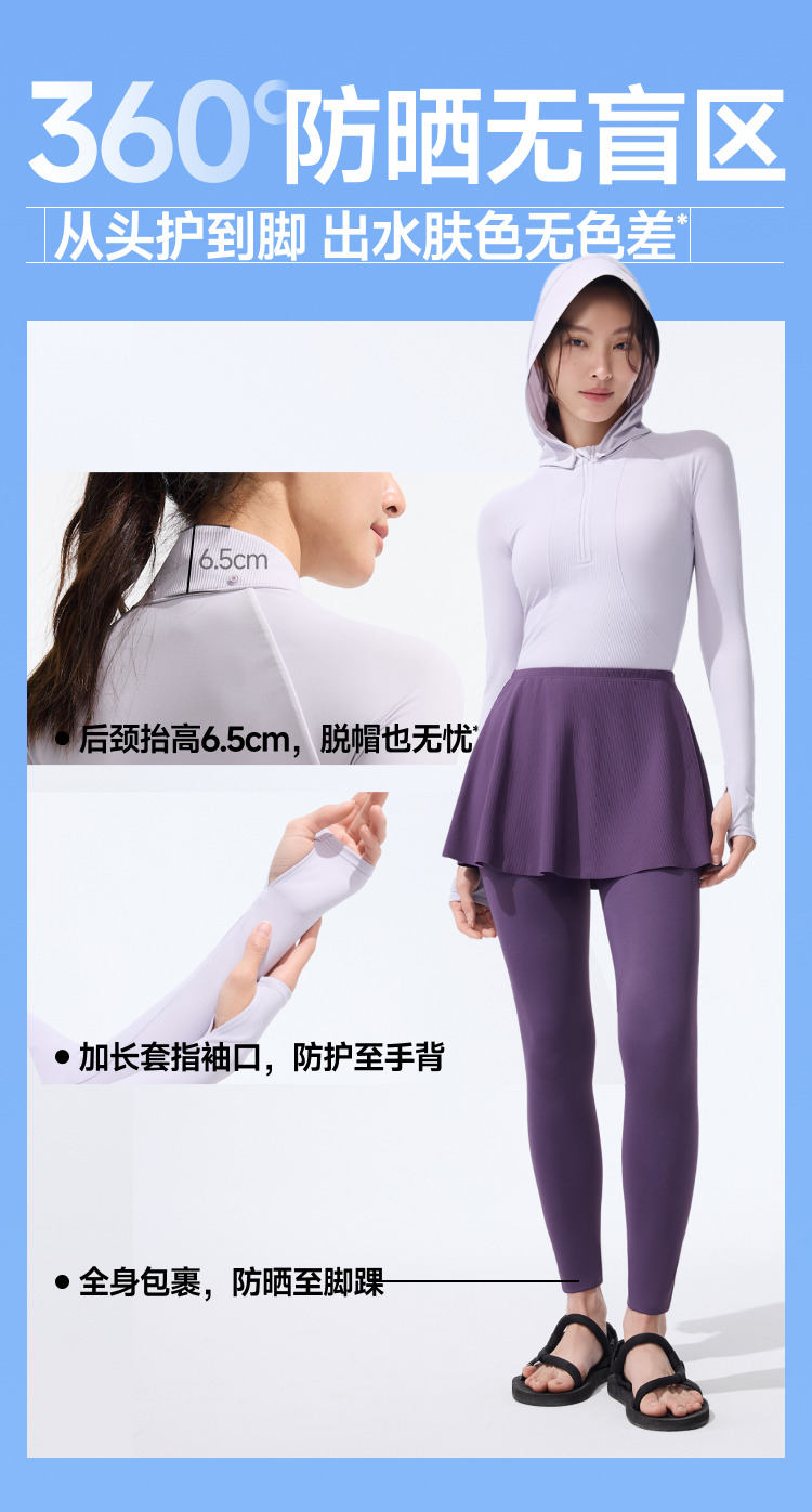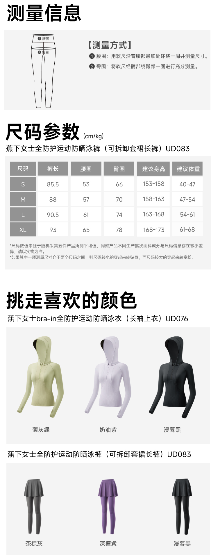 25SS-蕉下女士bra-in全防护运动防晒泳衣(长袖上衣)UD076+蕉下女士全防护运动防晒泳裤(可拆卸套裙长裤)UD083