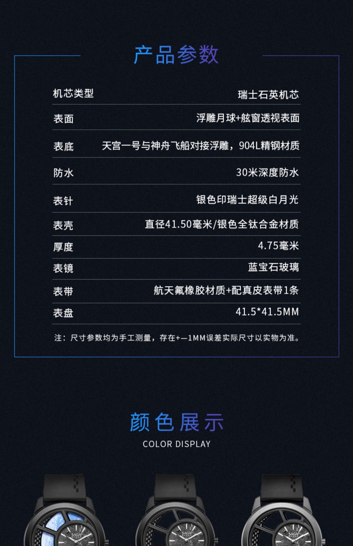 SAGA世家表2020新款手表男SPACE天宫探索系列石英机芯腕表