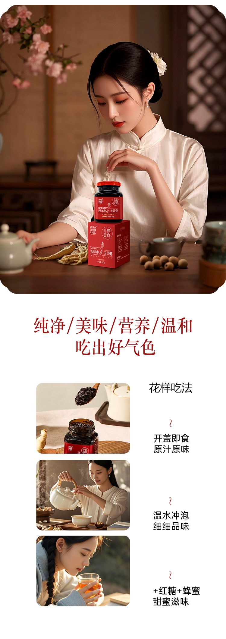 小碗良食西洋参玉灵膏双补古法蒸桂圆龙眼肉气血160g/瓶