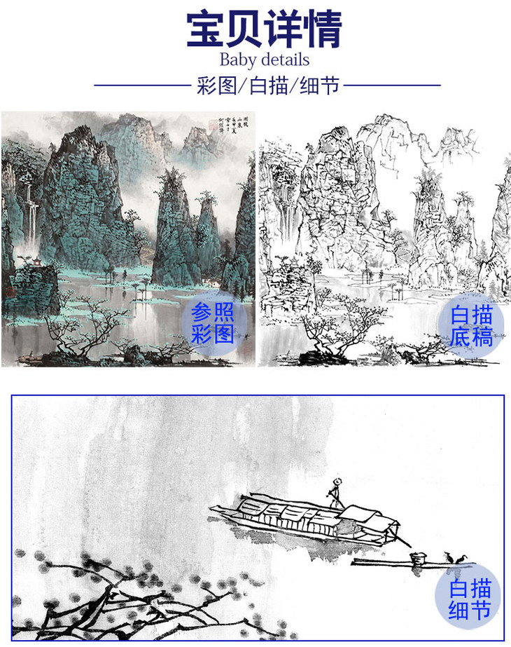 工笔画白描底稿-白雪石斗方山水-小品册页-BX36