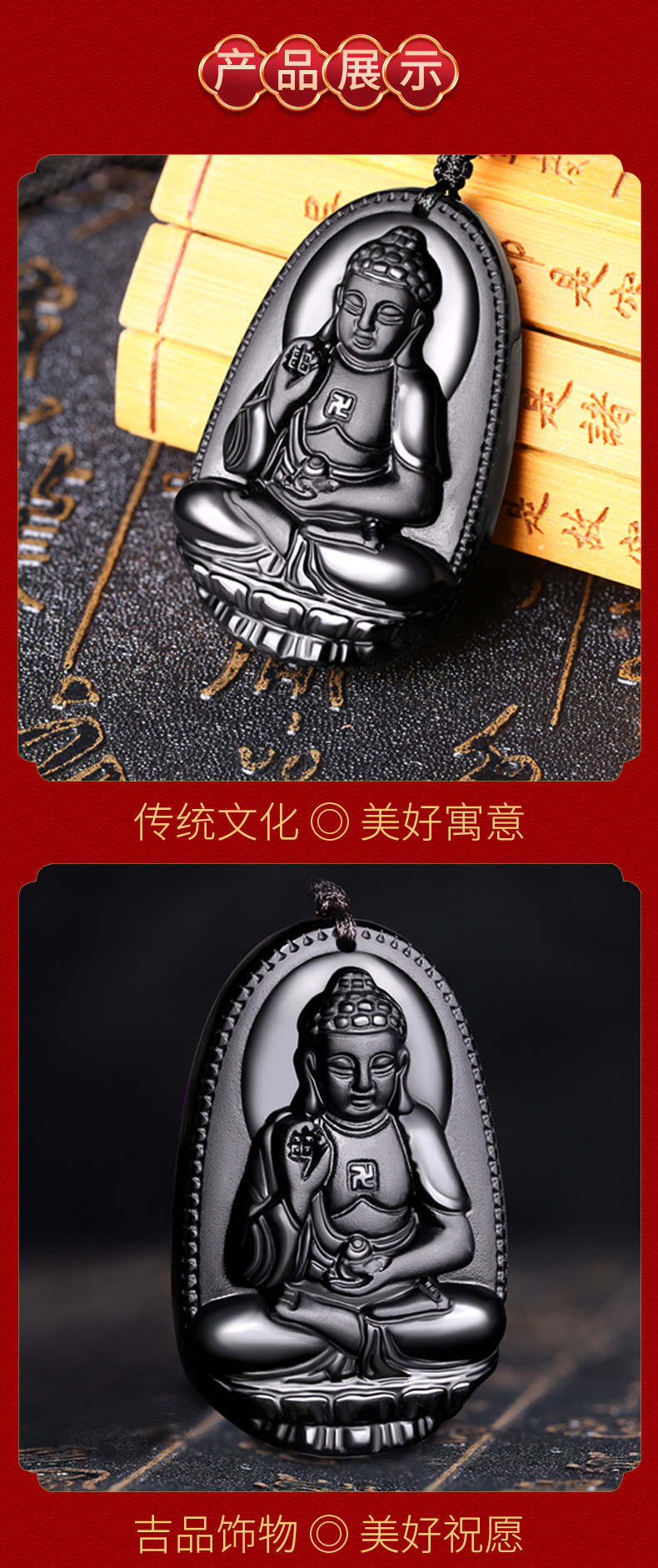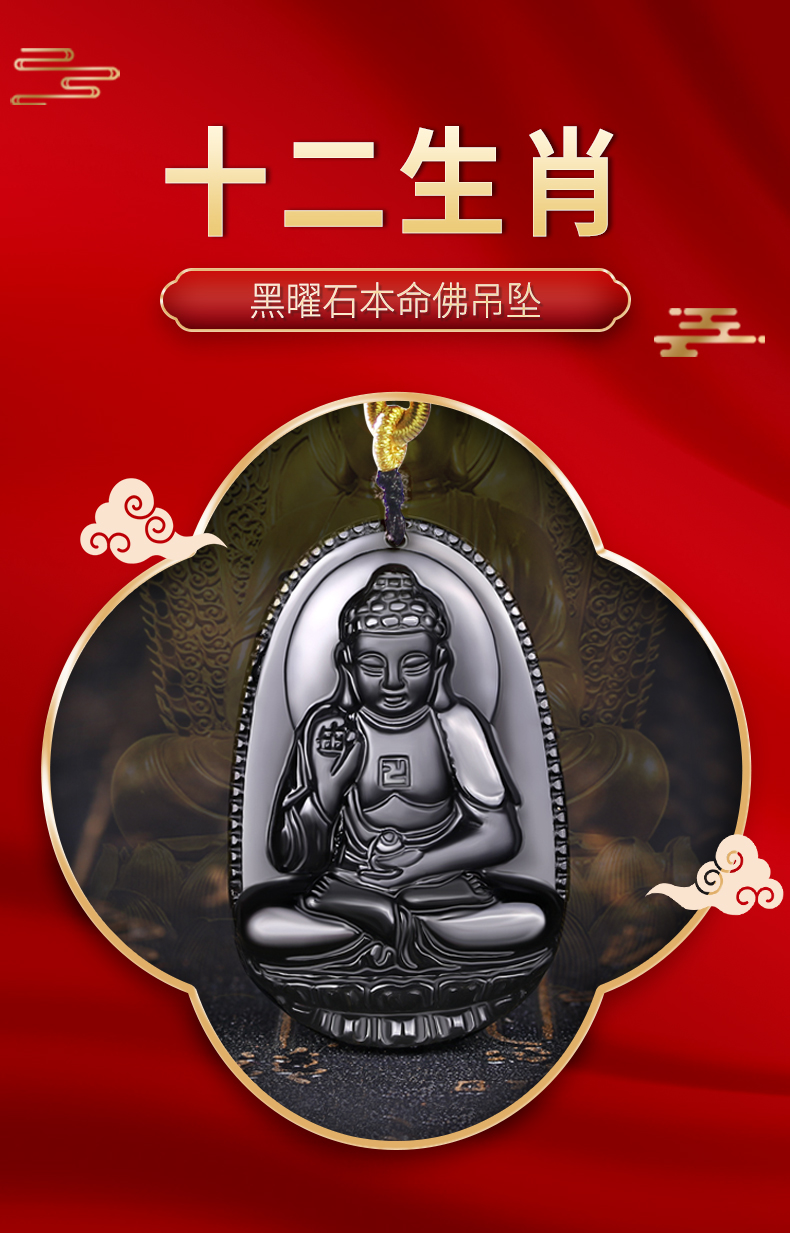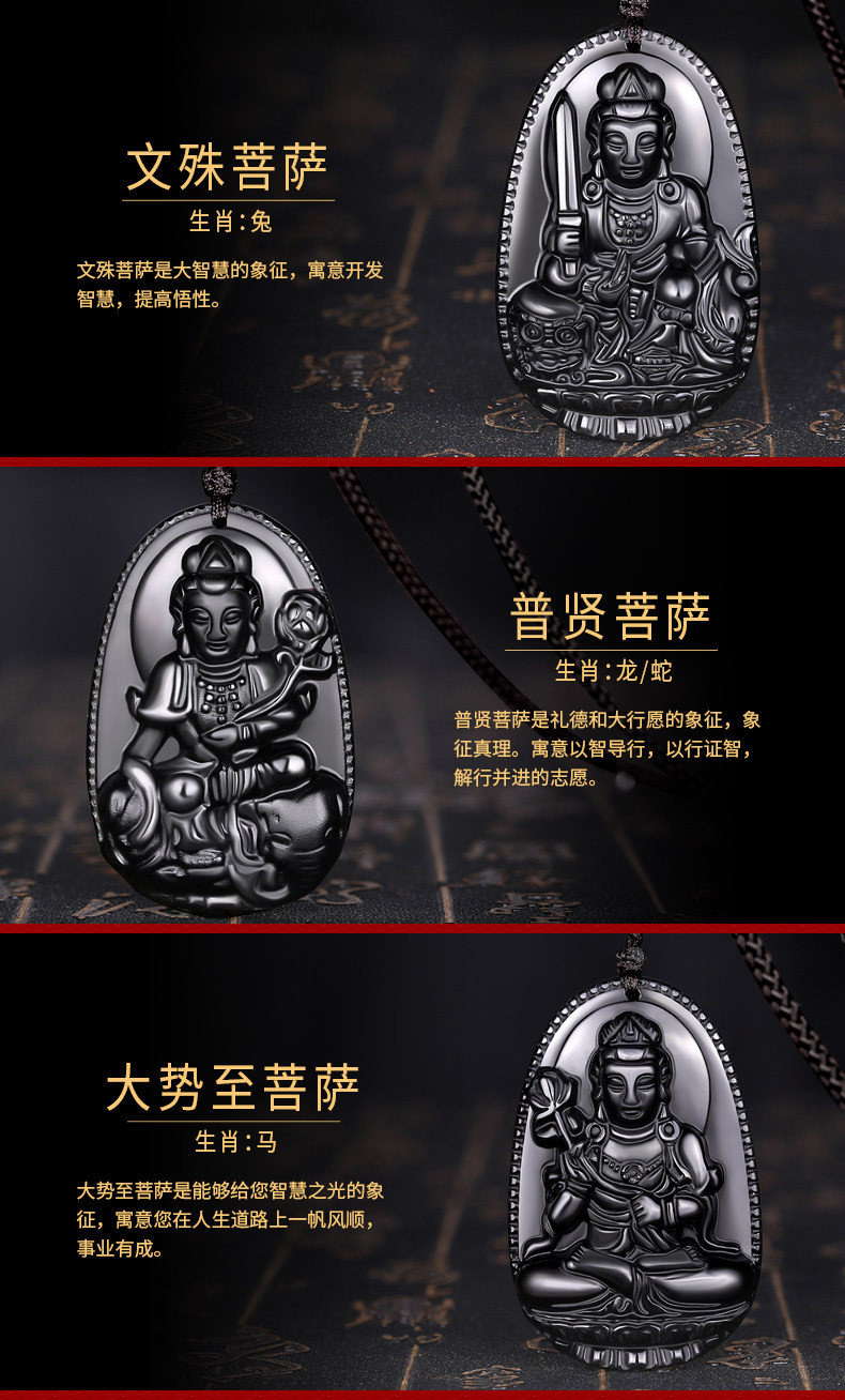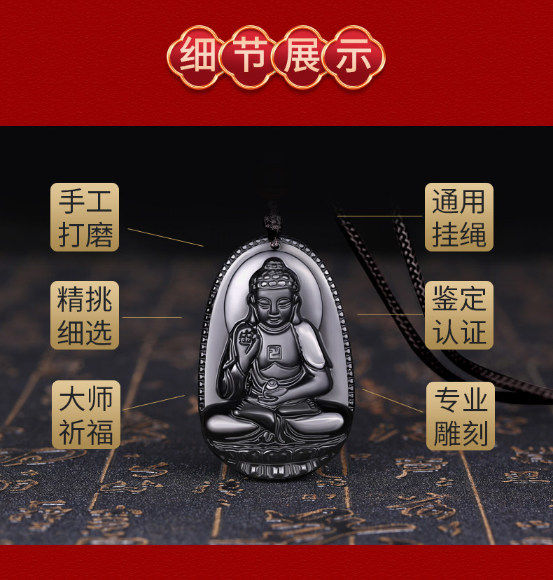 宋韶光十二生肖本命佛黑曜石男女士吊坠普贤阿弥陀佛项链