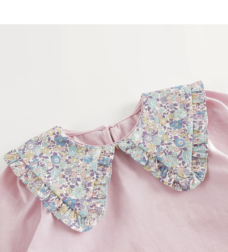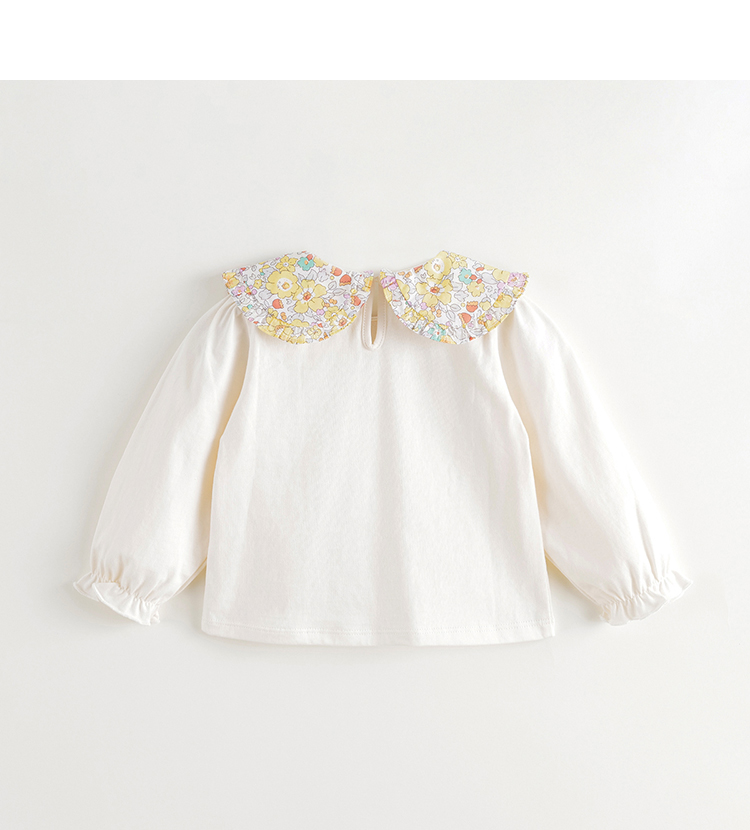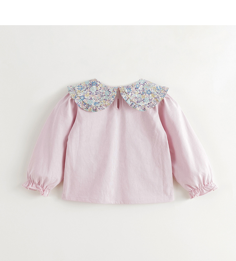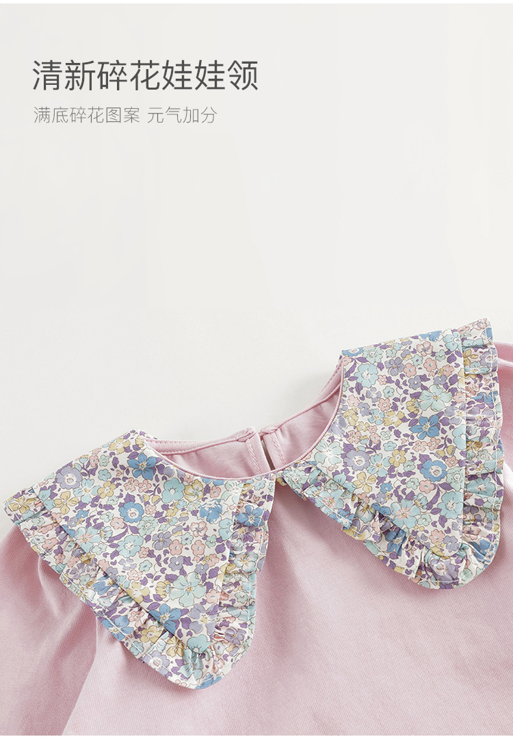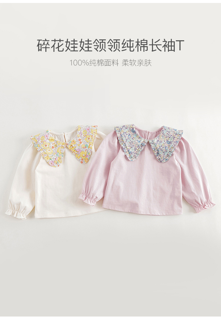 马克珍妮女童碎花翻领全棉长袖打底衫儿童T恤春秋款上衣241521