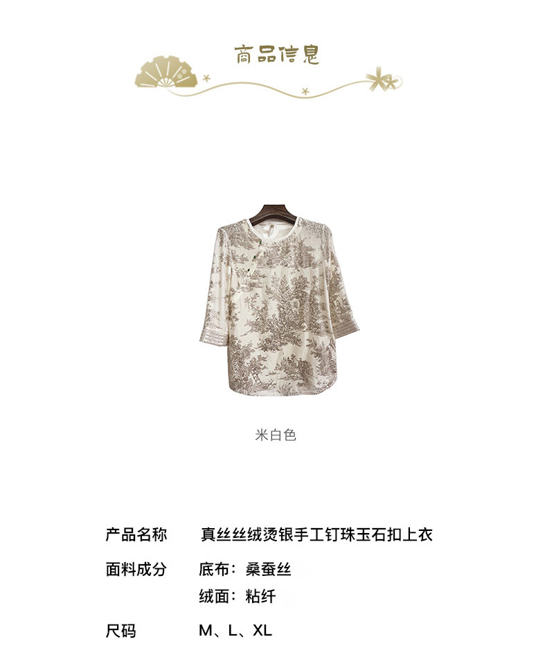 真丝丝绒烫银手工钉珠上衣