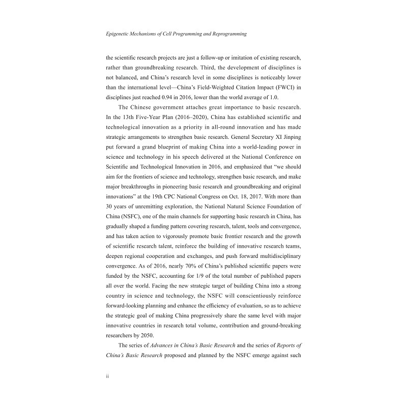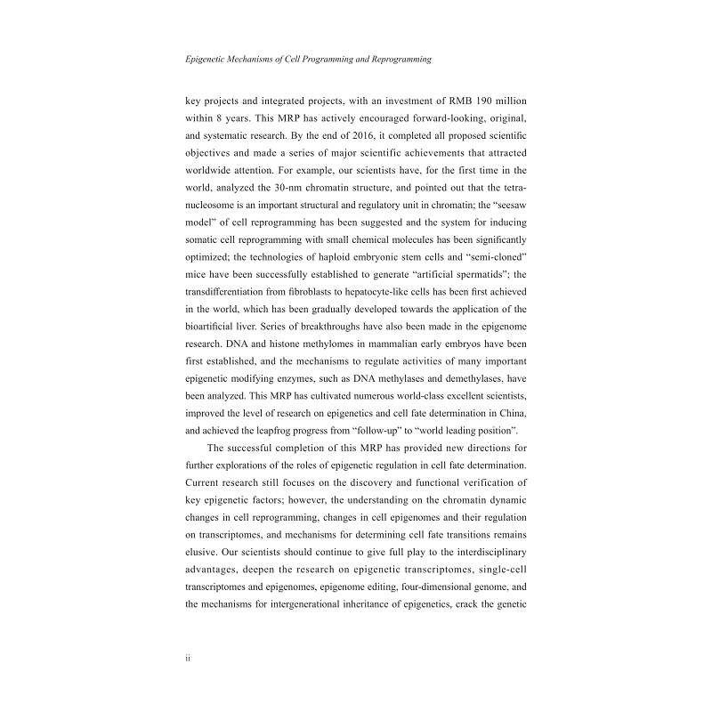 本书为“中国基础研究报告”丛书《细胞编程与重编程的表观遗传机制》英文版,基于重大研究计划“细胞编程与重编程的表观遗传机制”的研究成果写作完成。该重大研究计划历时8年,资助总经费1.9亿元,申请项目涉及生命、化学和信息等学部,取得了丰硕的科研成果,在三大集成方向均取得了多项具有重大国际影响力的突破性研究成果,并培养了一批具有国际竞争力的研究队伍。其成功实施为我国表观遗传总体研究水平的全面提升和跨越式发展做出了重大贡献。本书介绍了这一重大研究计划实施情况。