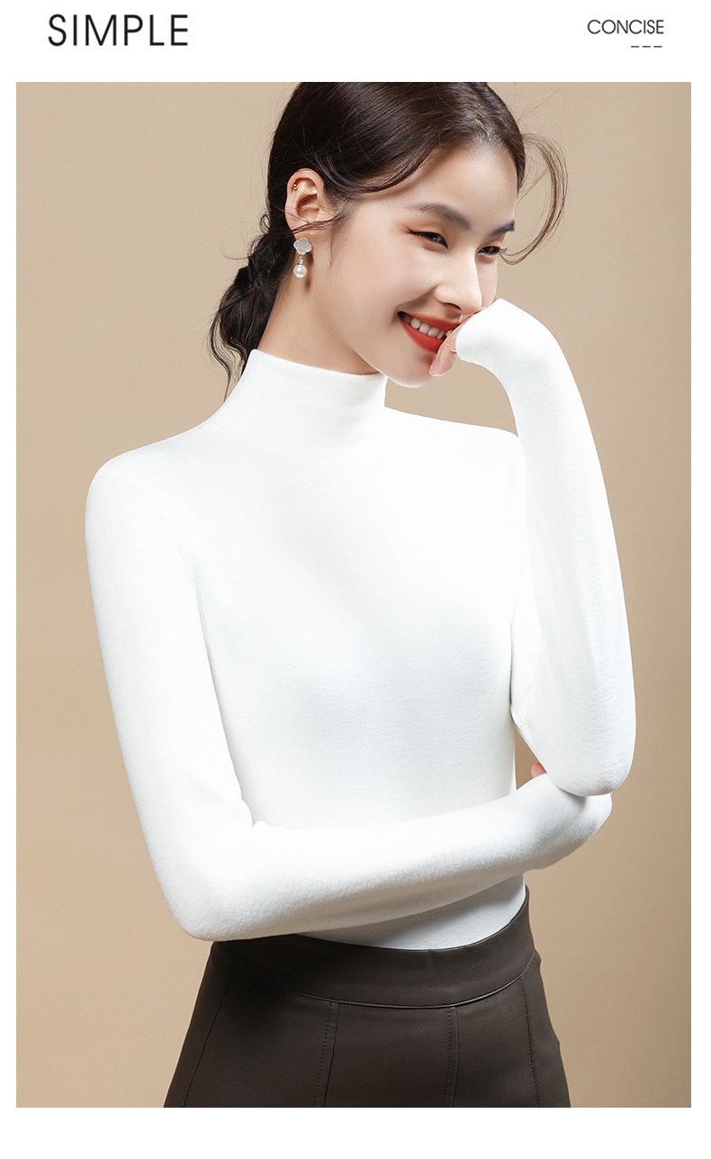 「自j」全新升级【铂金会员119/天猫159/差价40】(94227)洛诗琳气质半高领打底衫2025秋冬洋气百搭德绒保暖加厚上衣