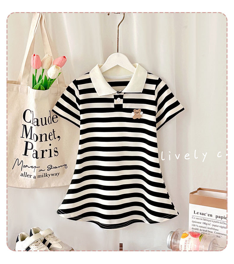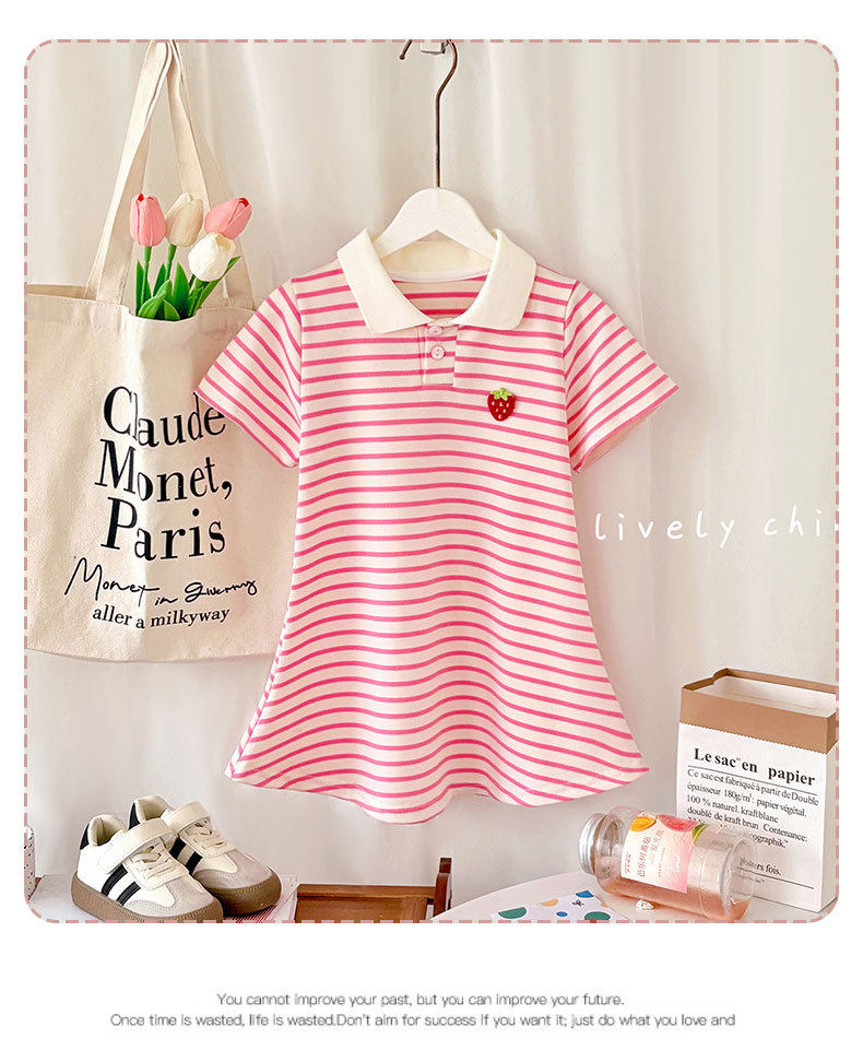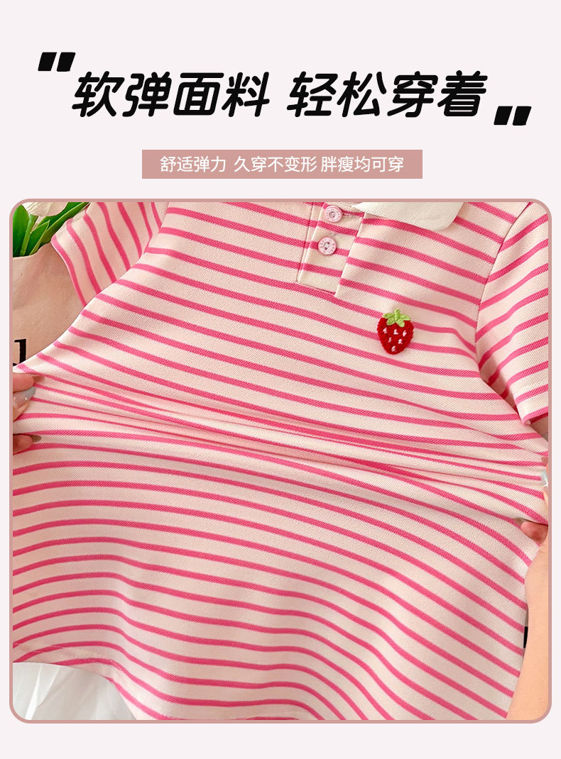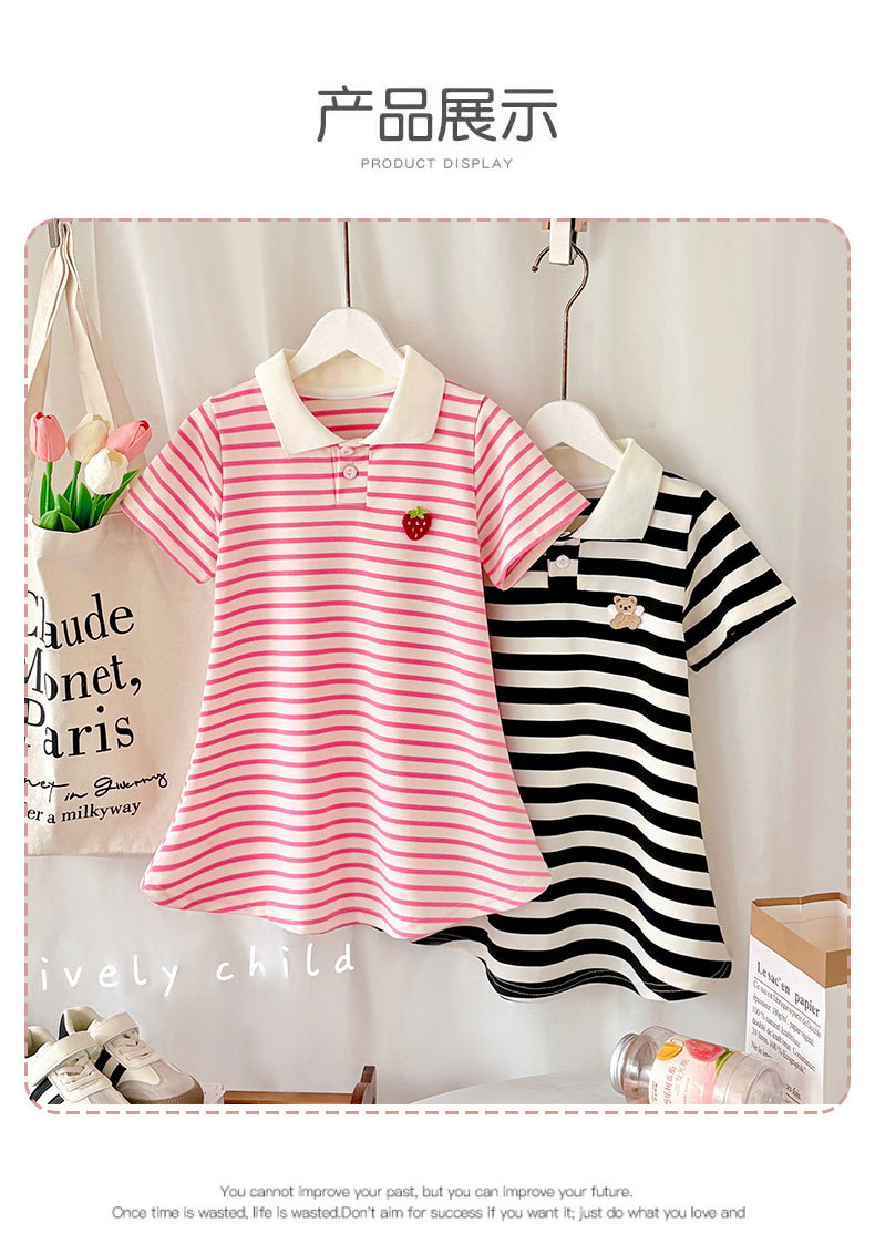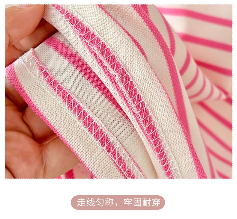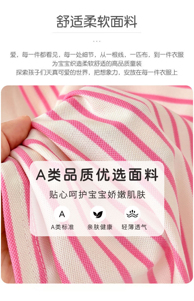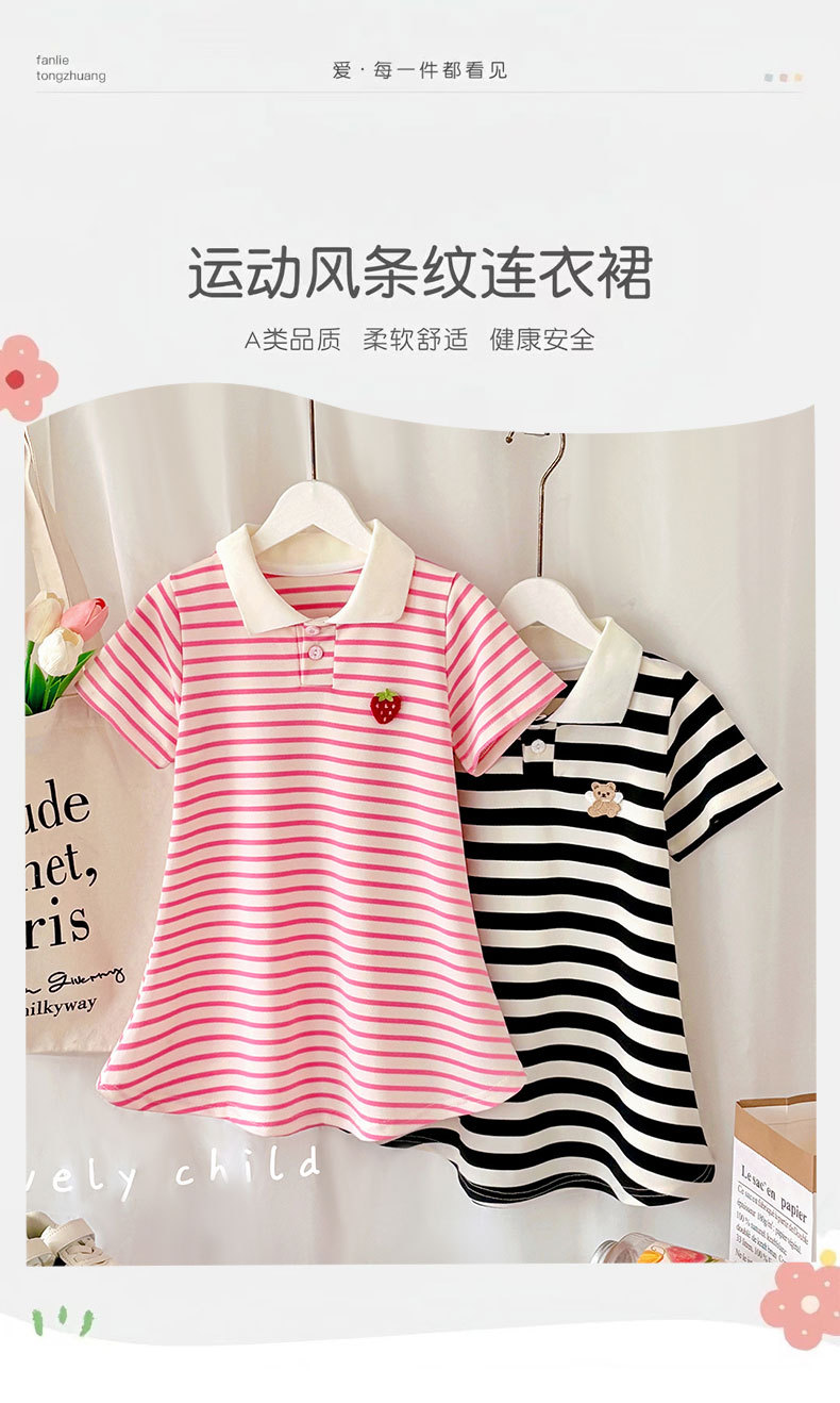 【运动风条纹连衣裙,A类品质,柔软舒适】女童夏装短袖甜美 宝宝条纹学院风公主裙 女孩短袖夏季睡裙连衣裙-QA