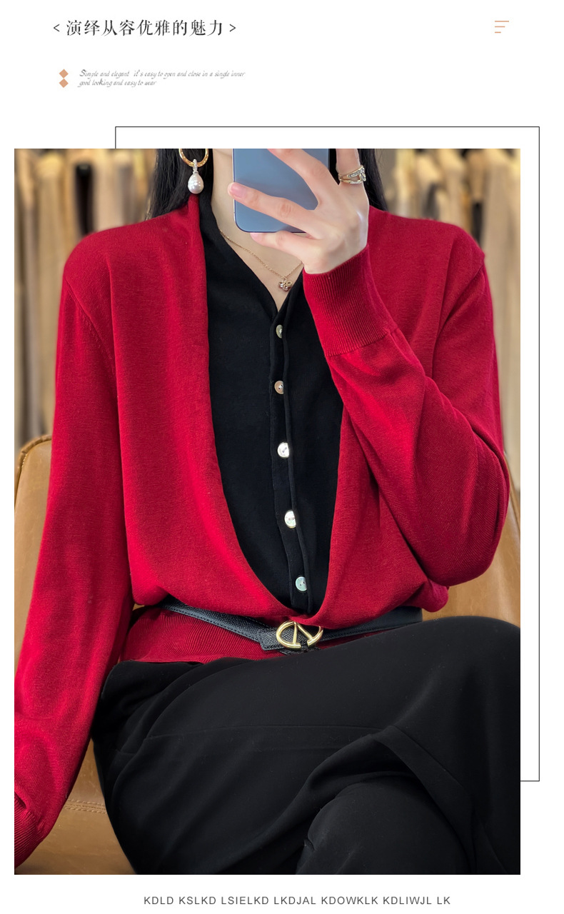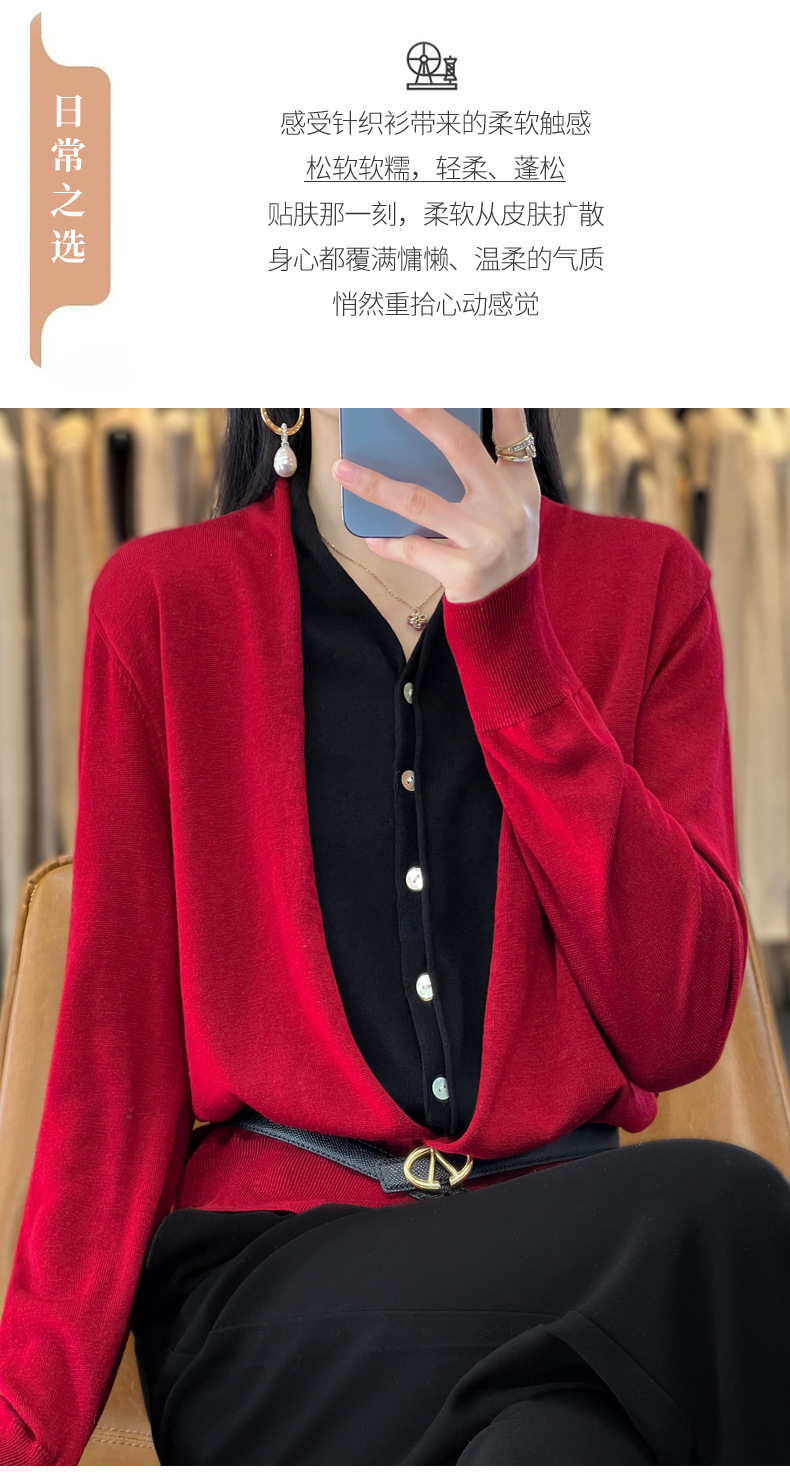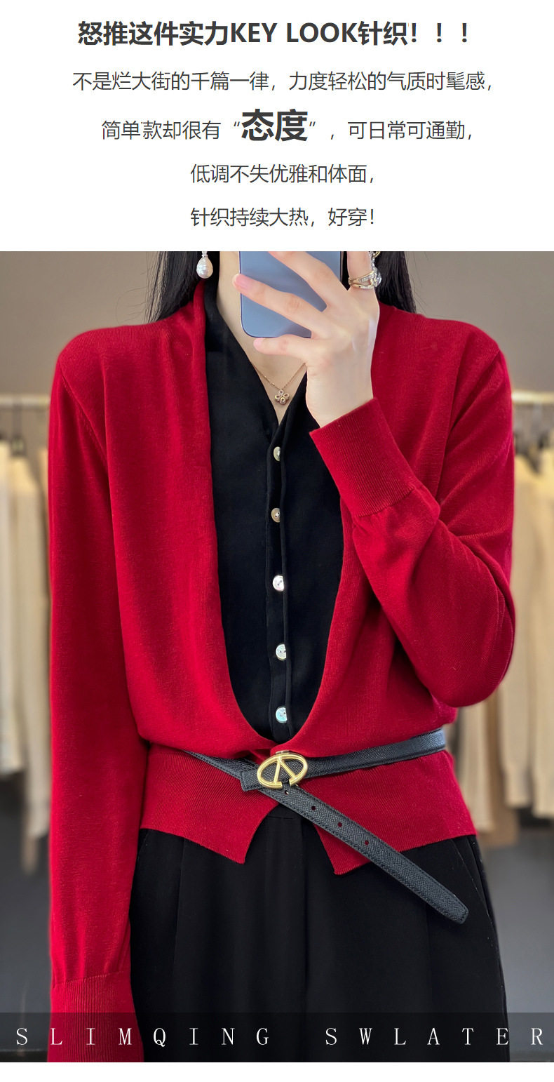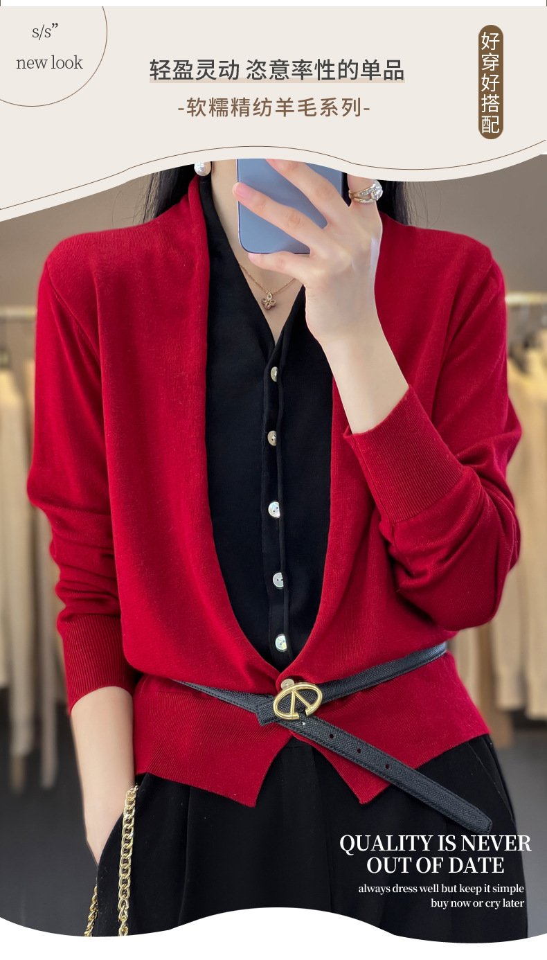 QHJY-JY230283春季新款V领假两件开衫女针织衫长袖外套时尚气质精仿毛衫上衣