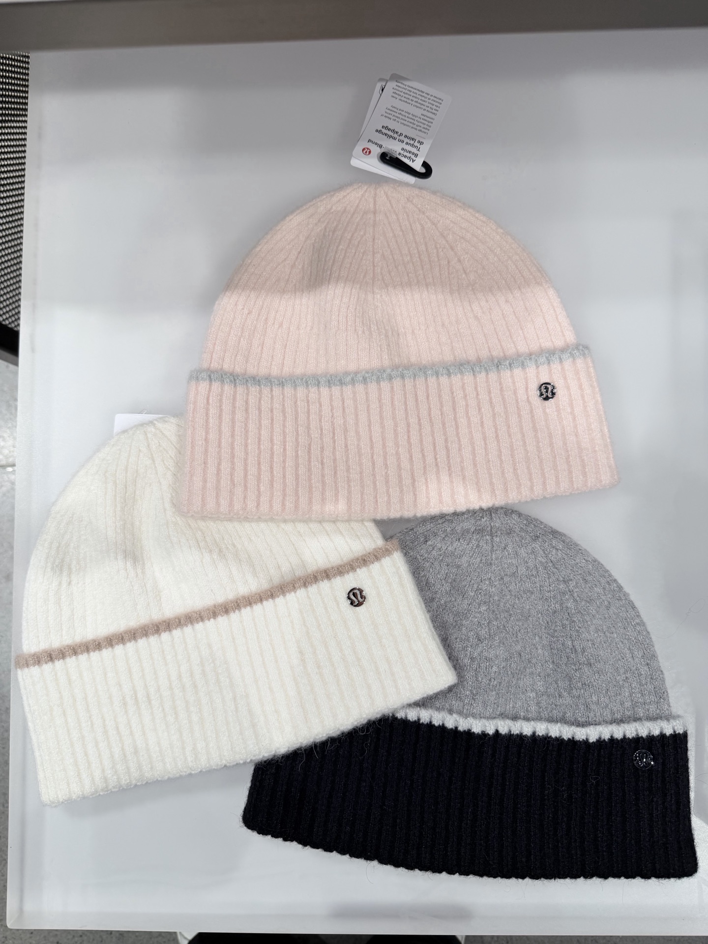 到手价499元 Lulu女士羊毛冷帽 带有金属logo标 质感非标好 保暖 厚度刚好 三个颜色都非常百搭 显白 摸起来非常软糯 美国代购,无中文标签,介意慎拍