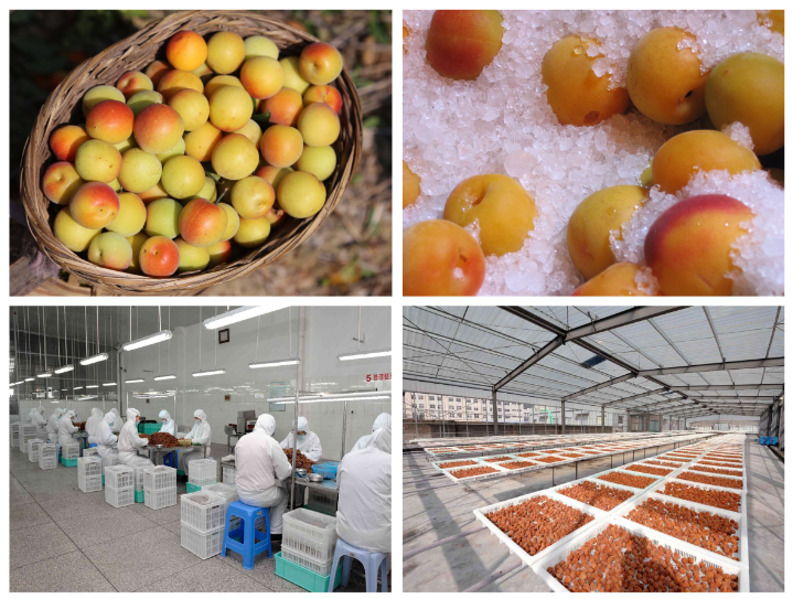 绿家无核话梅暂时采用出口日本标准的青梅(常规种植)作为原料。成熟的青梅人工采摘下来后,马上运至自动加工生产线,进行清洗分级,然后使用海盐腌制,经过2个月腌制后滤干日晒,凝聚时间的味道。晾晒后的梅子经过二次挑选、分级,再使用气泡清洗机清洗,去除异物杂质,再机器去核,糖渍一周,再次日照晾晒。经检验合格的批次进行称重包装,通过X光异物检测机,剔除不合格品。