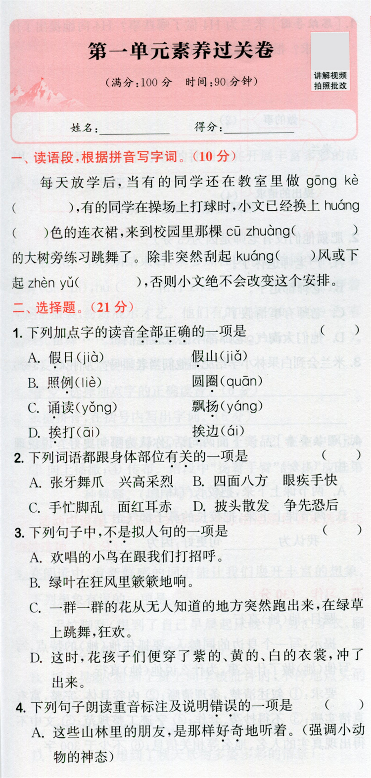 2025秋 非常大试卷 语文 三年级上册 人教版 部编版 小学教辅 测试卷 同步训练 3上 含答案讲解视频 通成学典