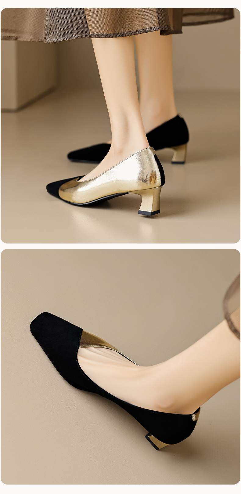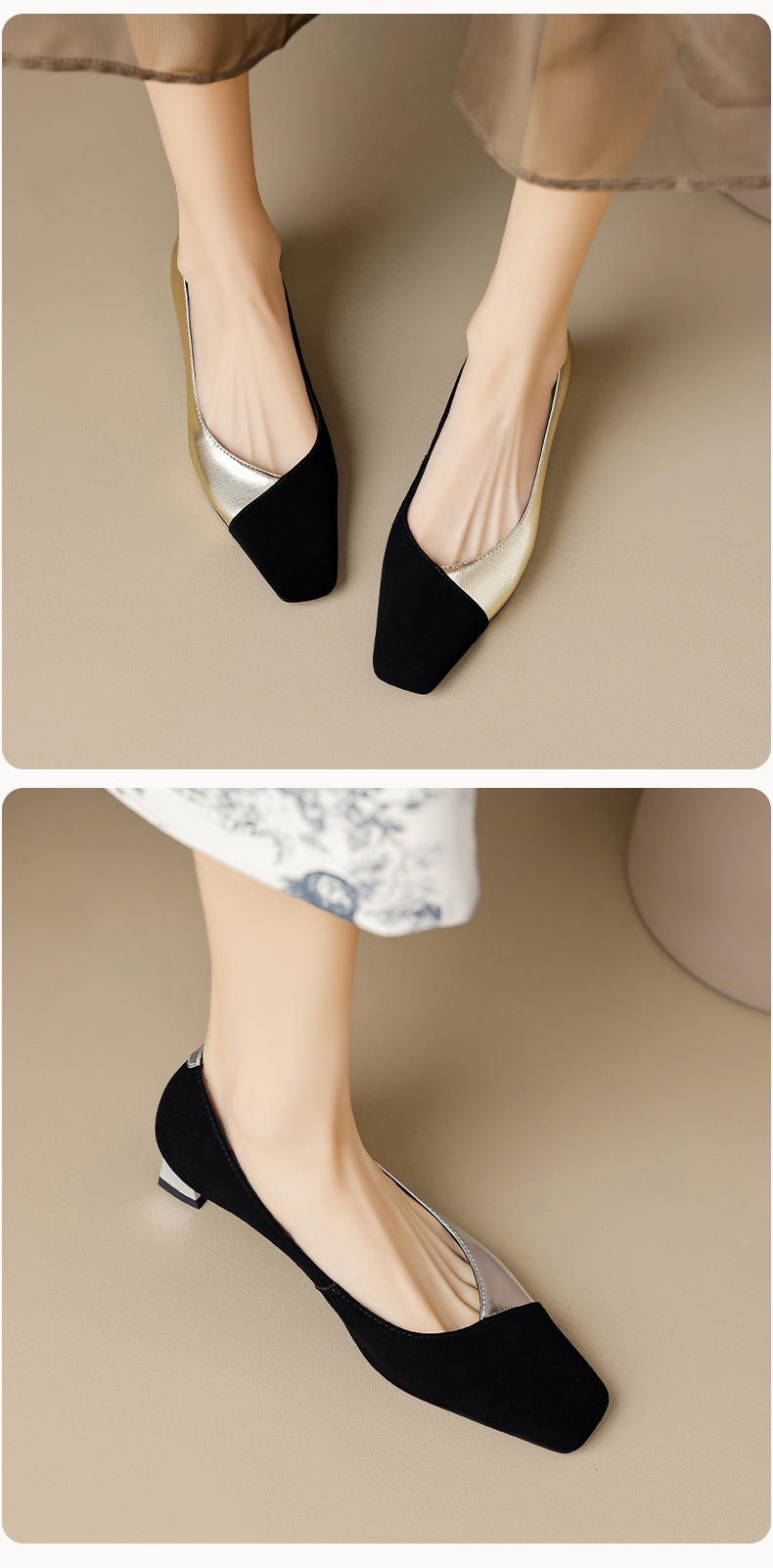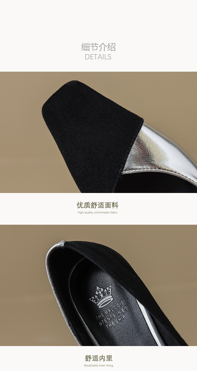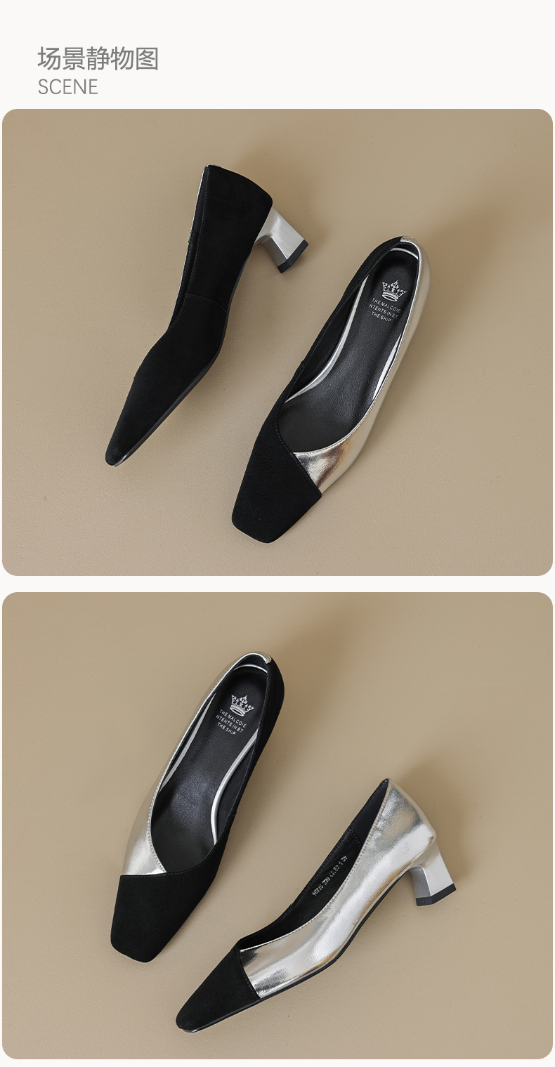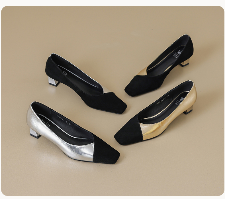 优雅百搭,撞色拼接中跟浅口单鞋OFSM-6775