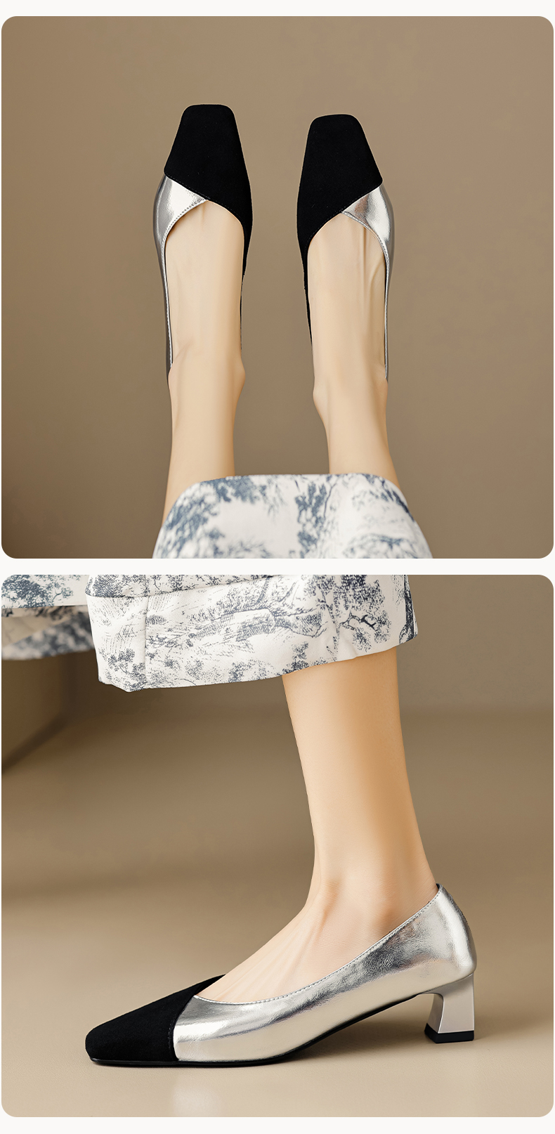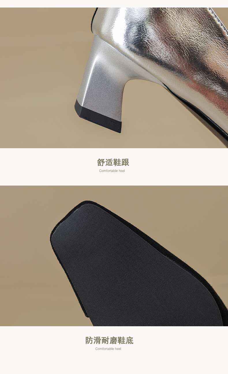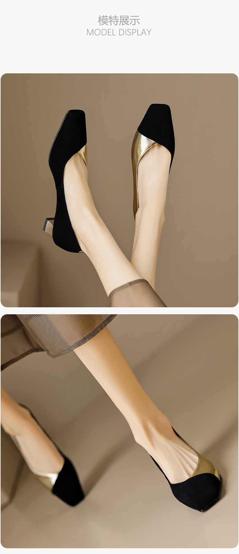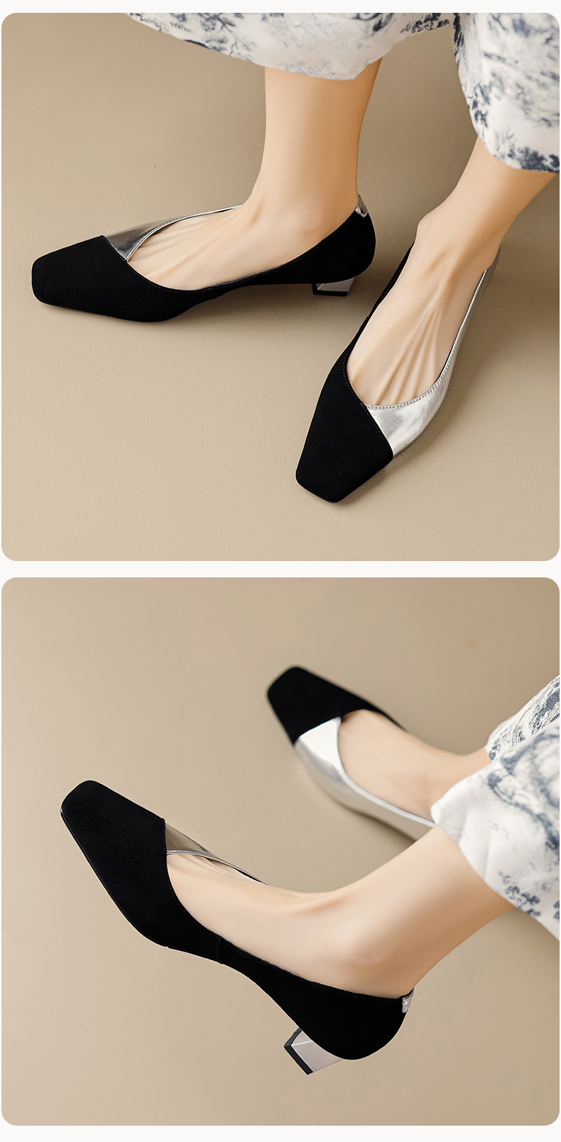 优雅百搭,撞色拼接中跟浅口单鞋OFSM-6775