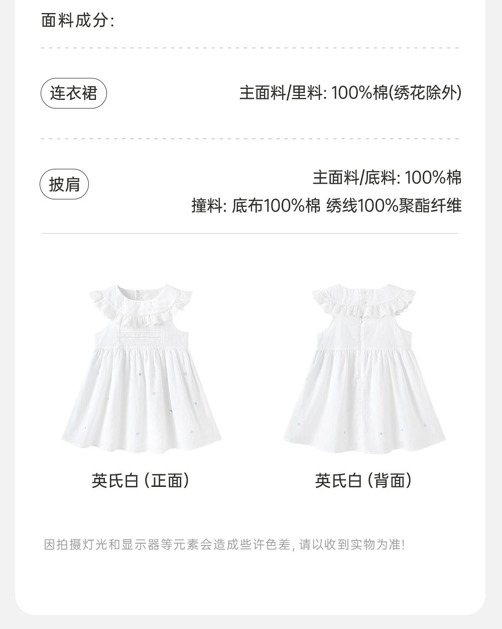 【商场同款】英氏女童连衣裙夏季透气裙子可爱纯棉小白裙两件套