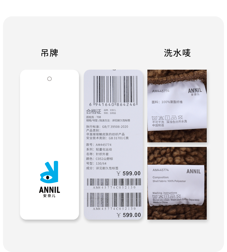 【实体店同款】男女童复合绒御寒外套冬季新款安奈儿童装AM445774