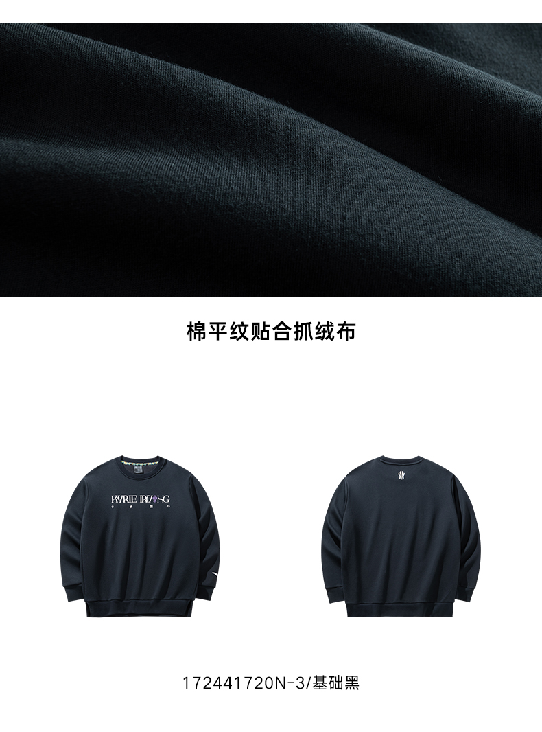 安踏凯里·欧文系列丨卫衣男女同款加绒保暖套头衫上衣172441720N