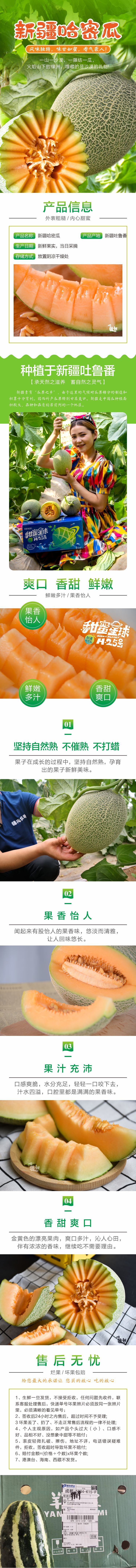 【产品亮点】新疆哈密瓜,风味独特,味甘如蜜,香气袭人。