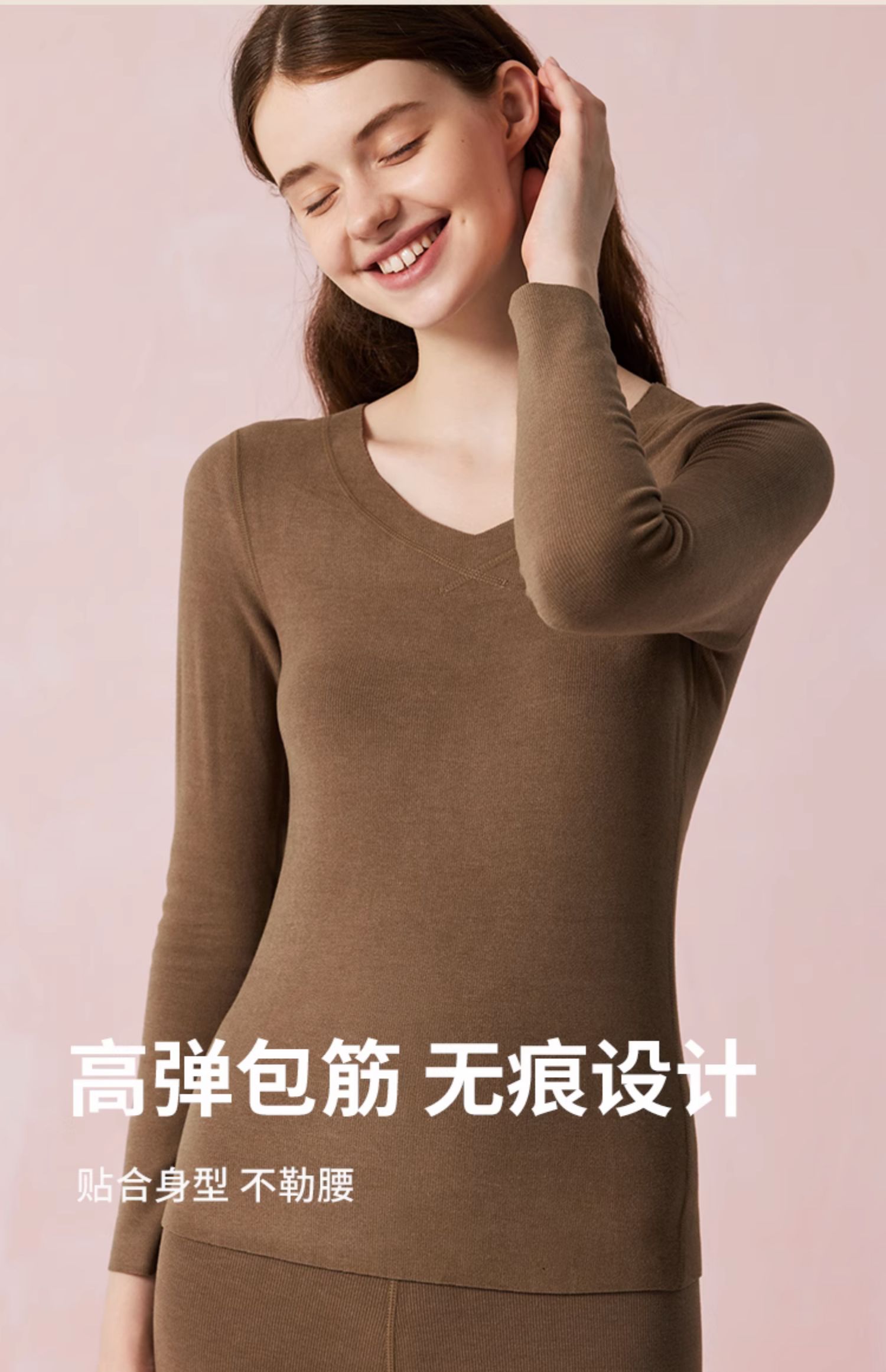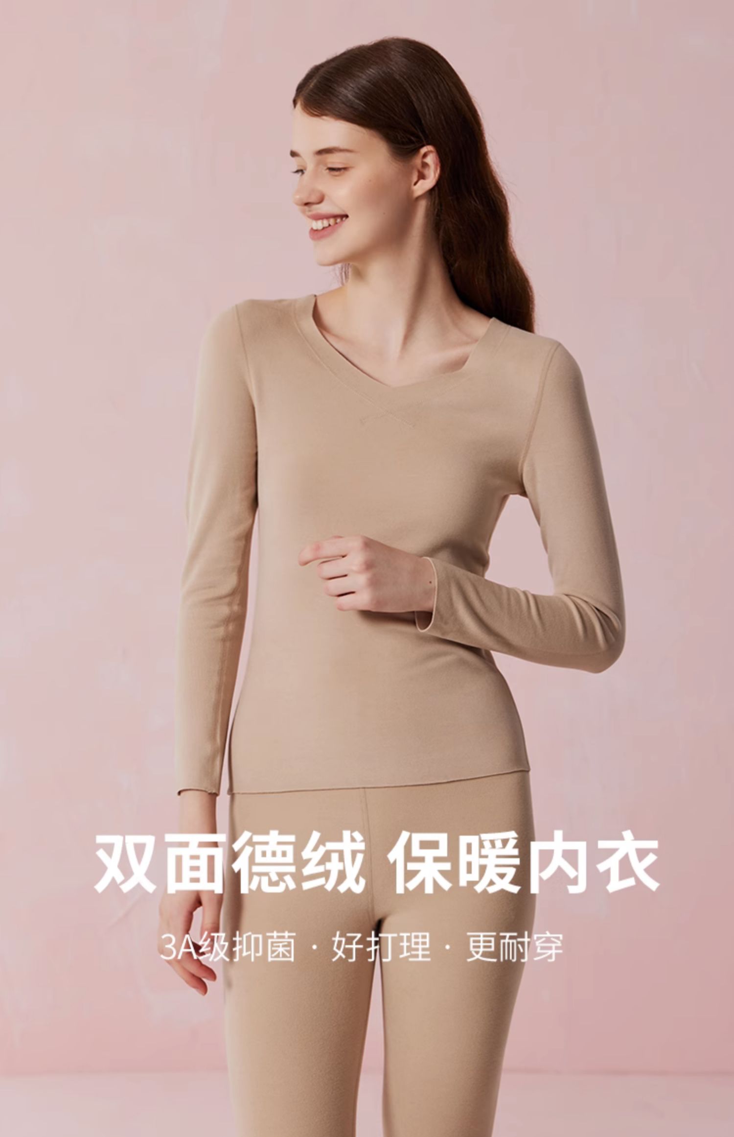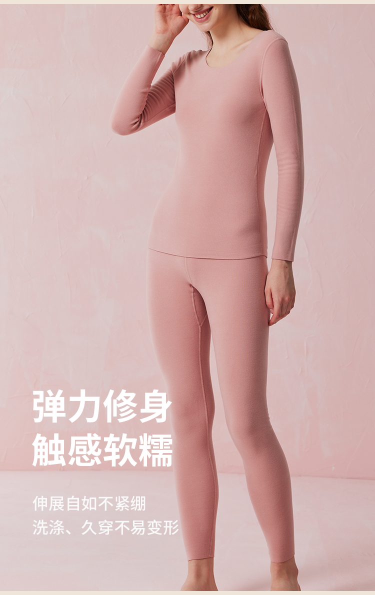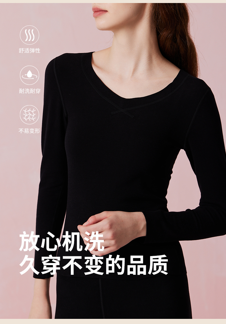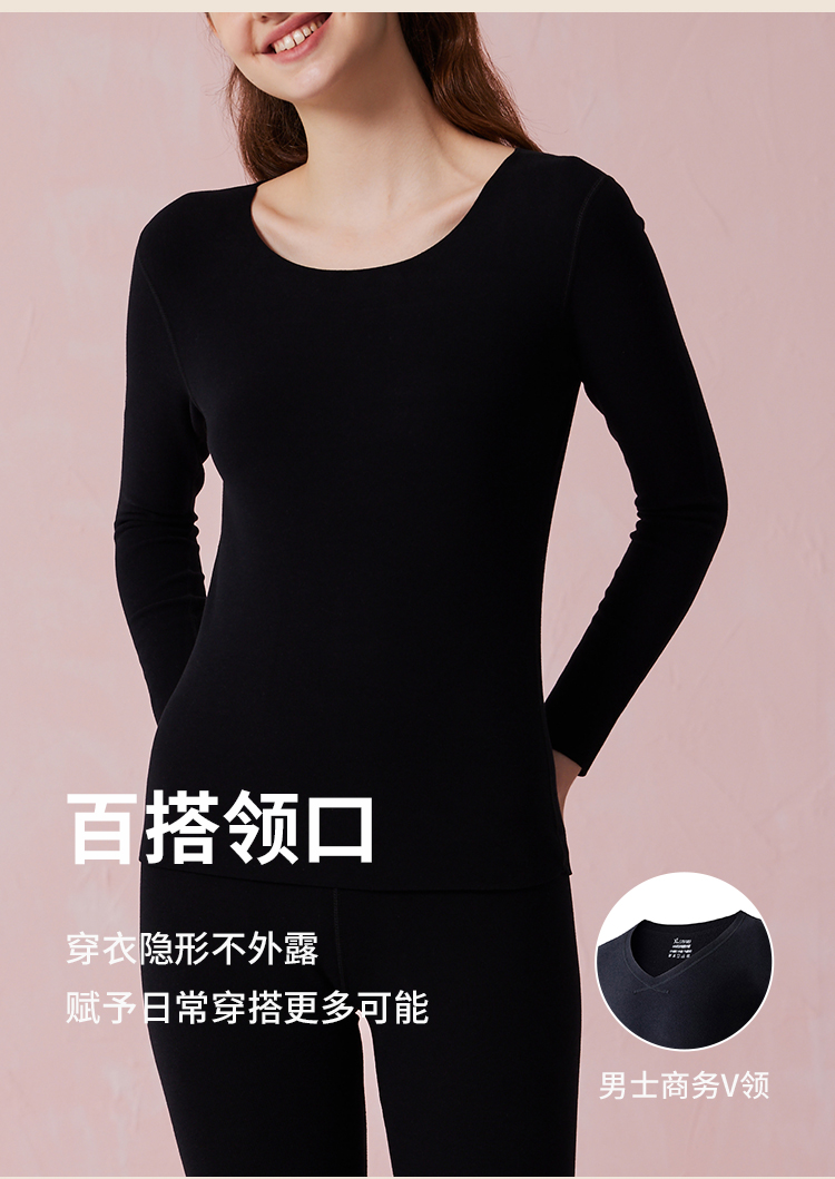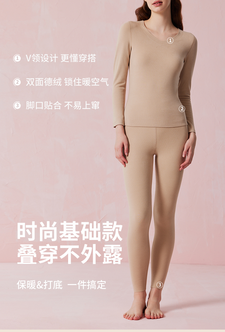 弗利少女德绒秋衣秋裤贴身套装V领修身加厚加绒无痕打底保暖内衣