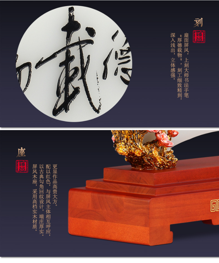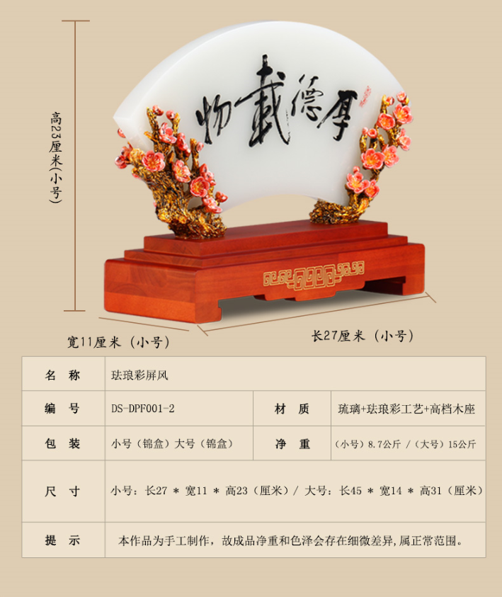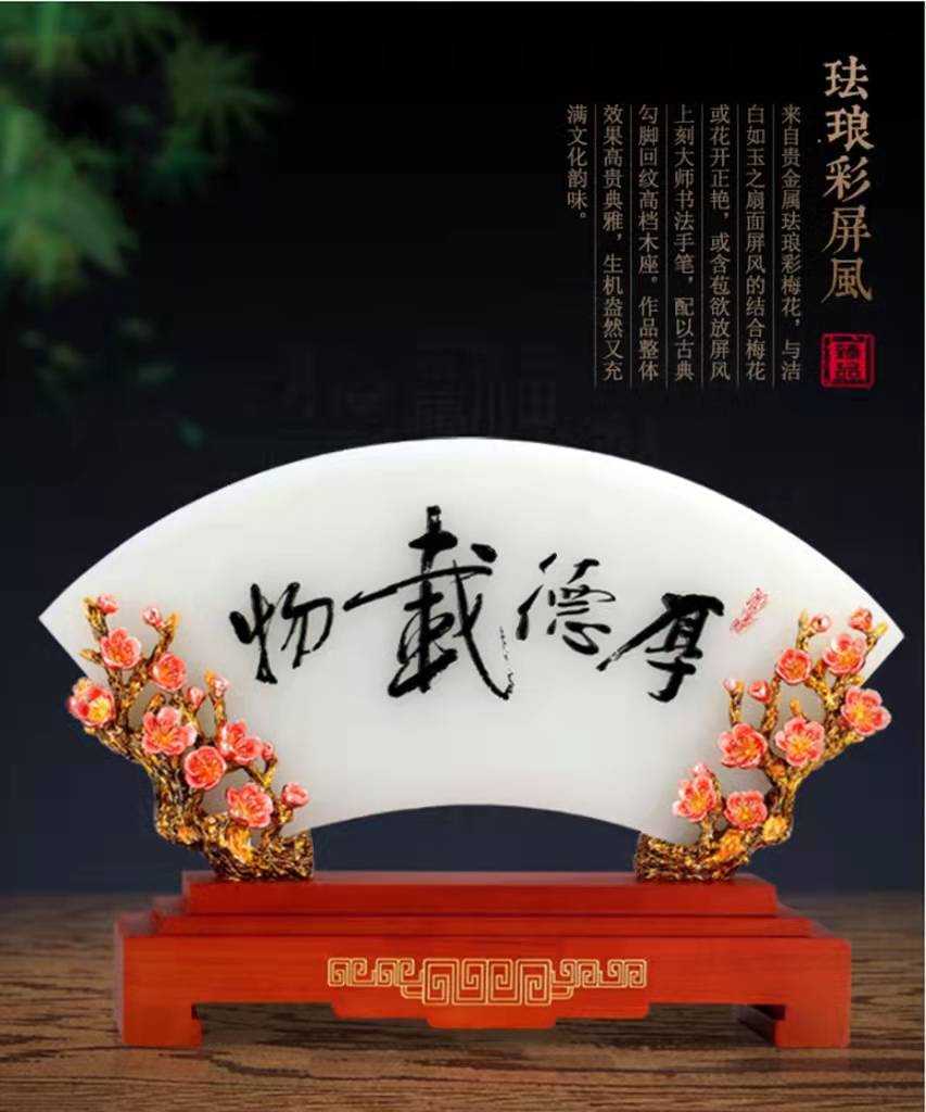 【彼达思】珐琅彩屏风摆件厚德载物琉璃工艺品家居客厅办公室玄关摆设