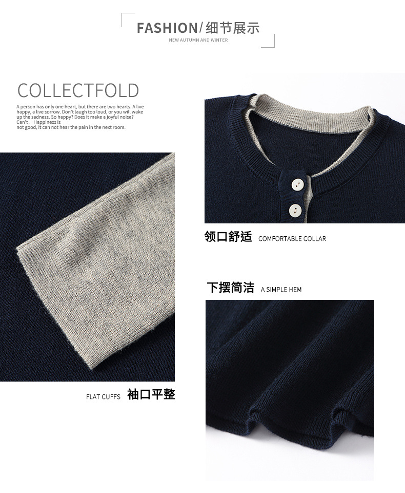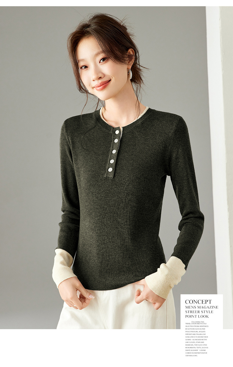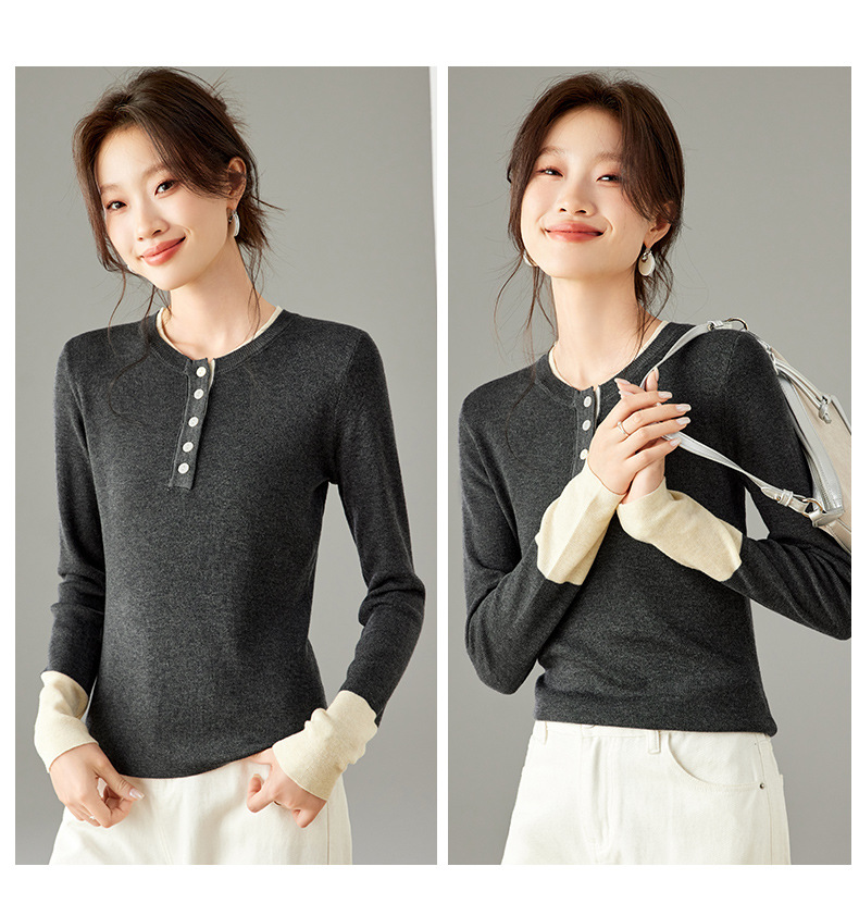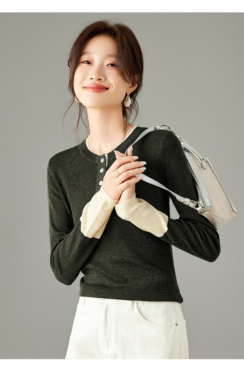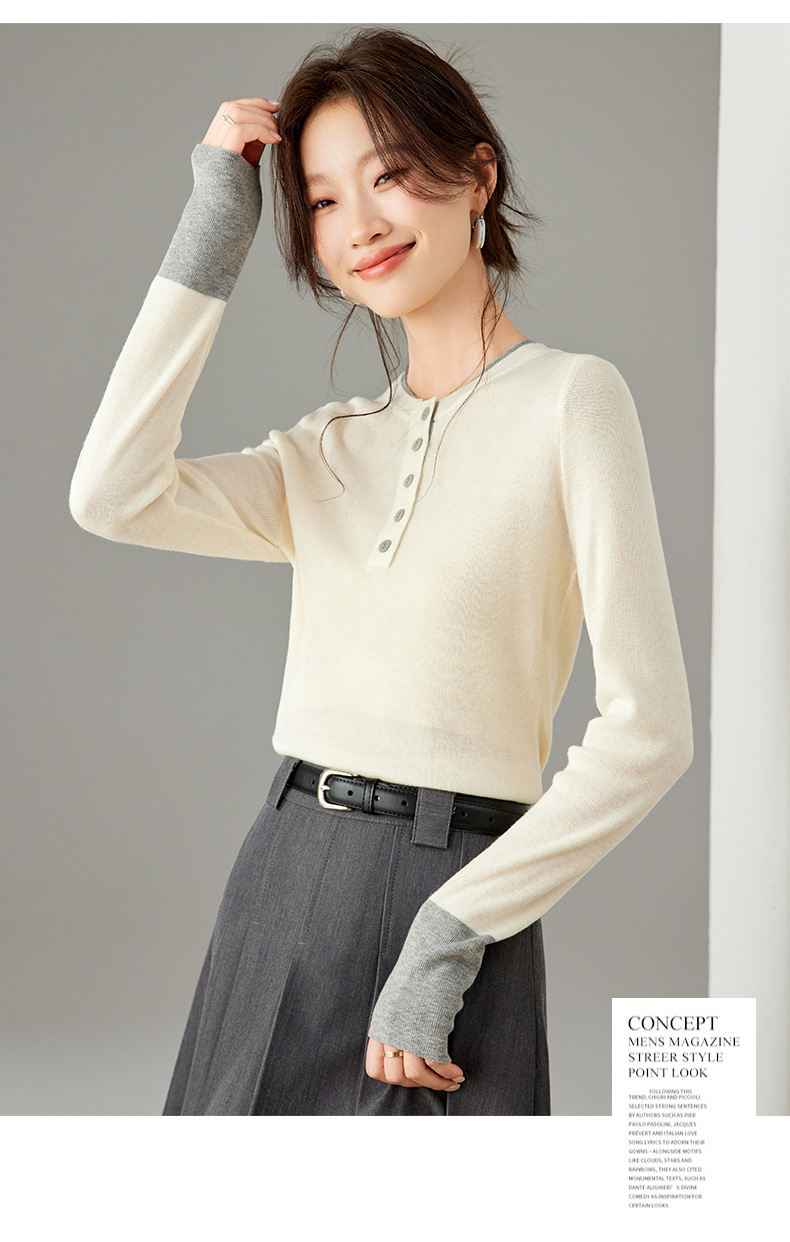 基础款撞色套头毛衣女2025秋冬季短款简约小衫纽扣装饰打底针织衫