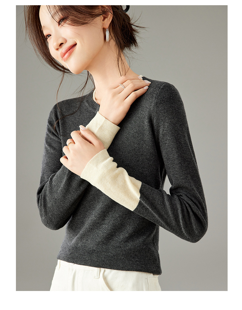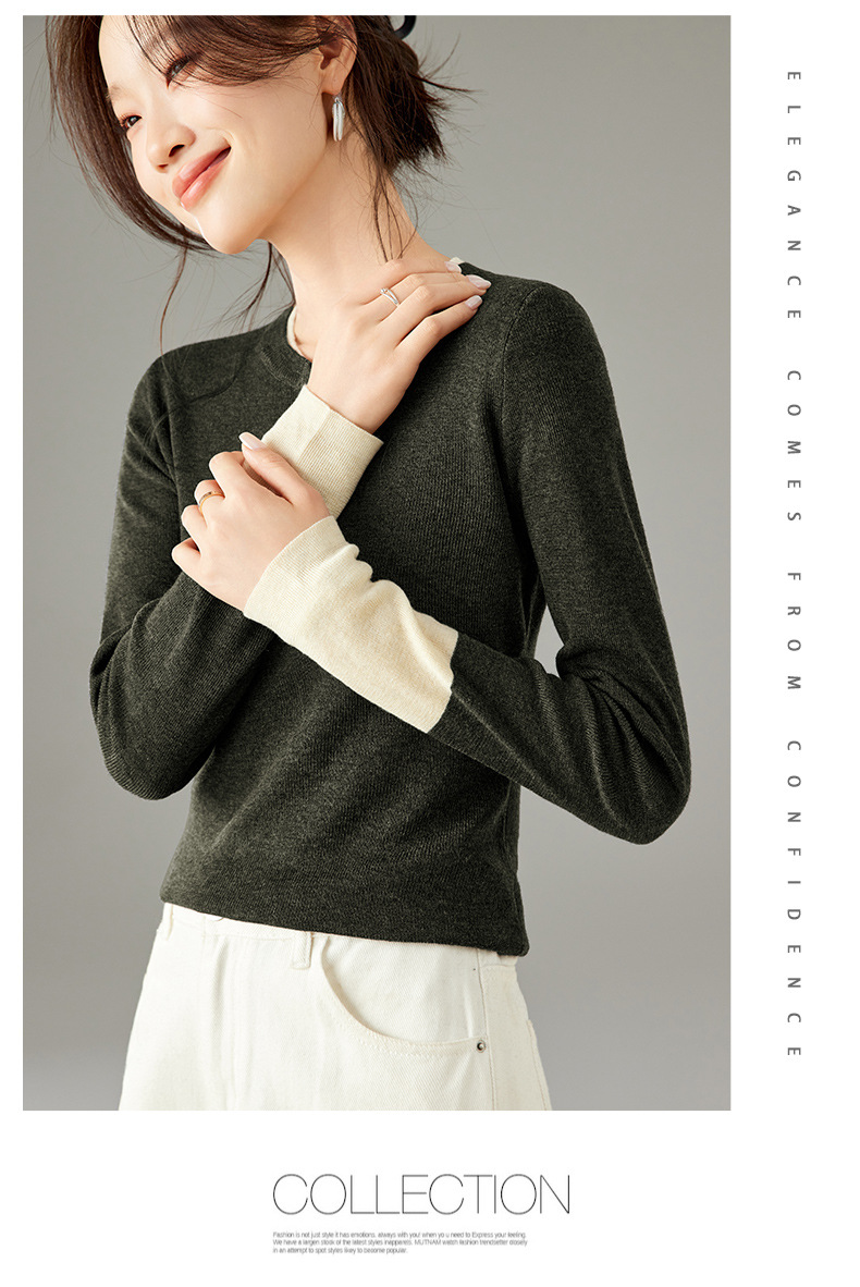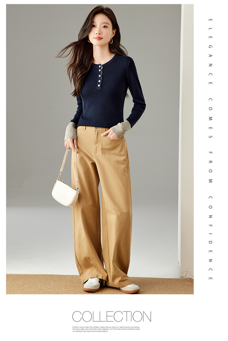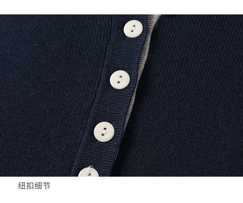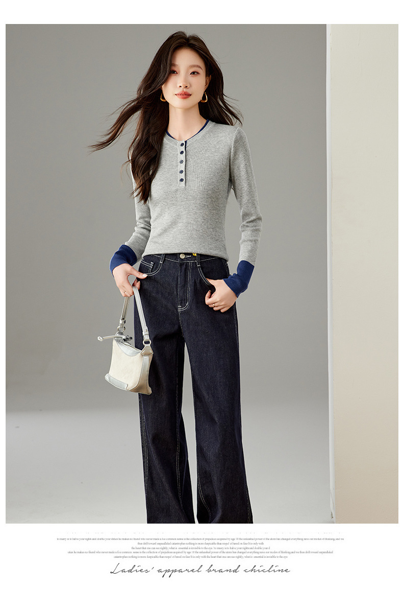 基础款撞色套头毛衣女2025秋冬季短款简约小衫纽扣装饰打底针织衫