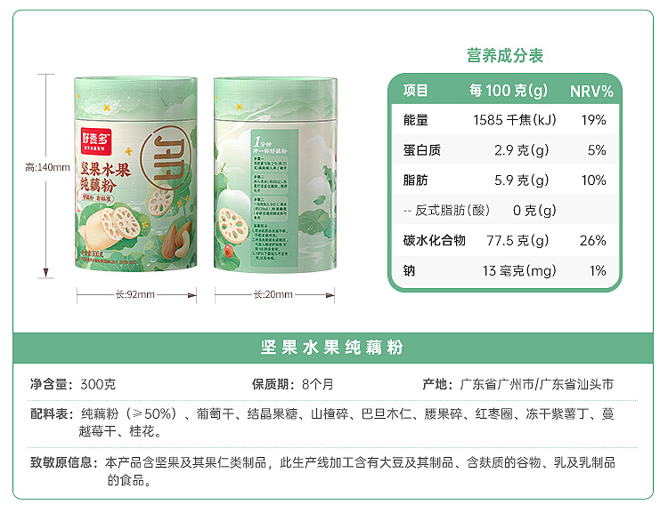 【麦麦SY】好麦多坚果水果/桂花莲子/玫瑰银耳纯藕粉300g/罐