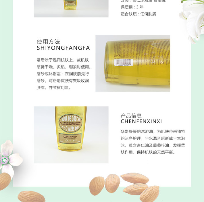 【保税】欧舒丹(L'OCCITANE)甜扁桃味沐浴油500ml