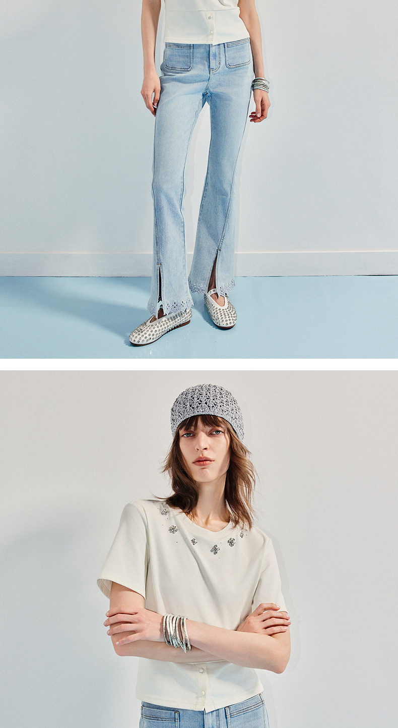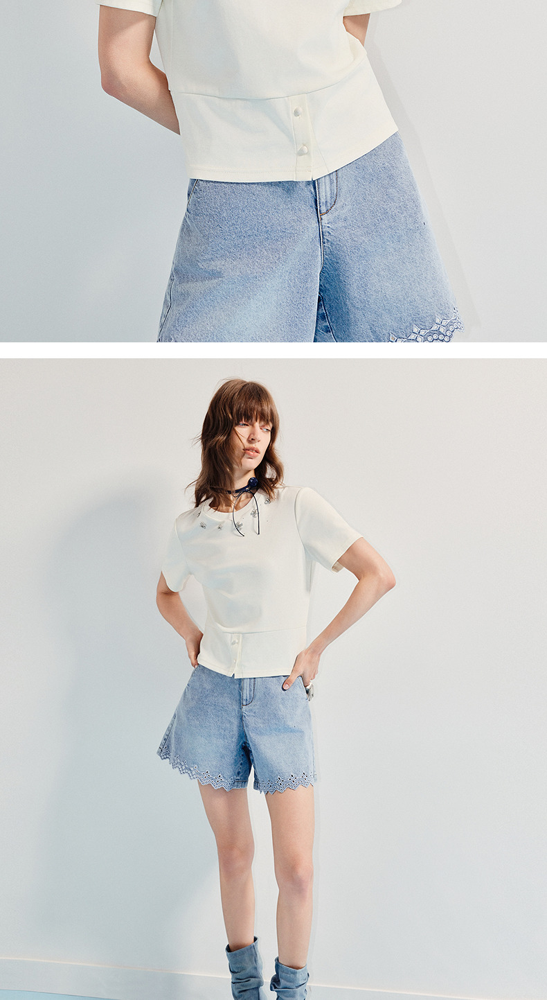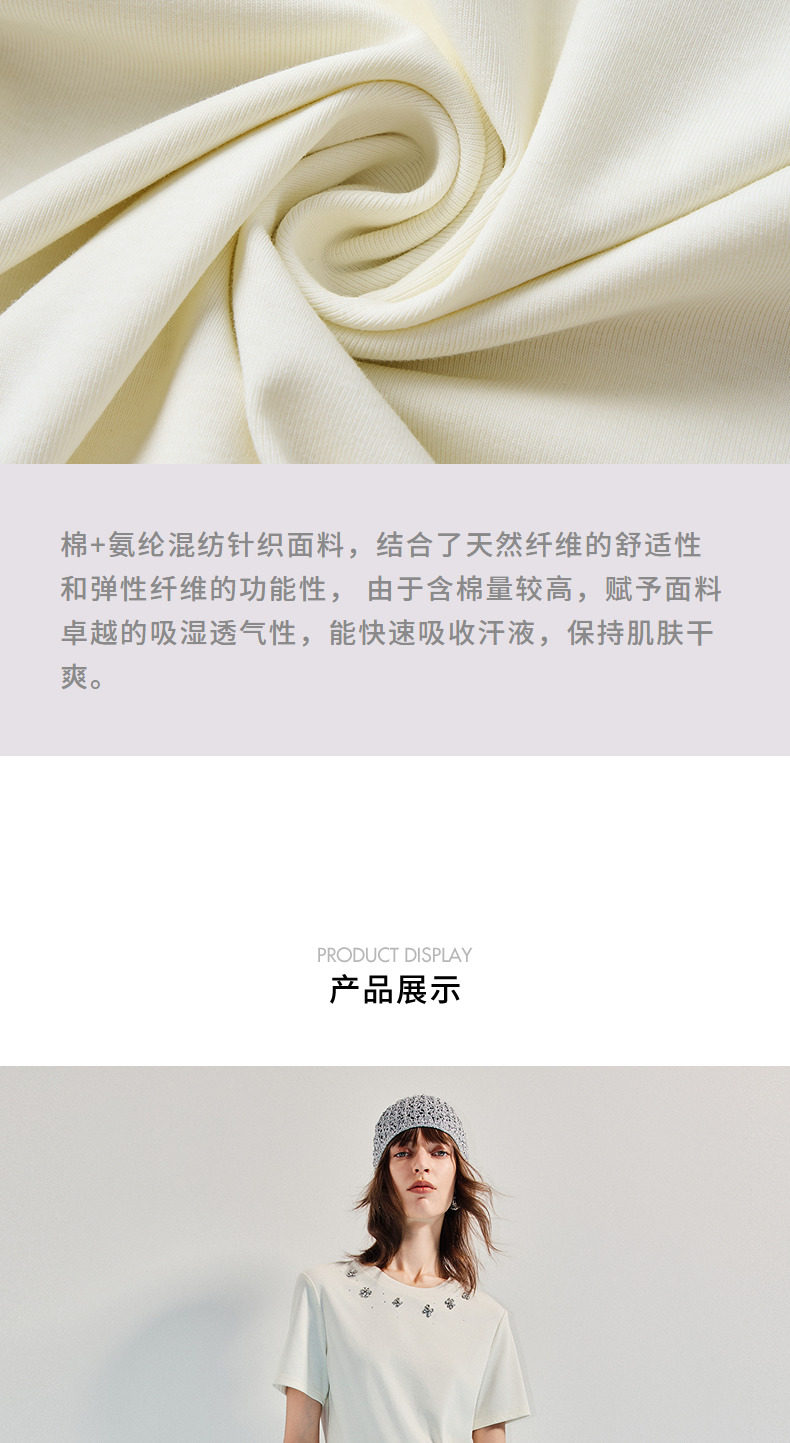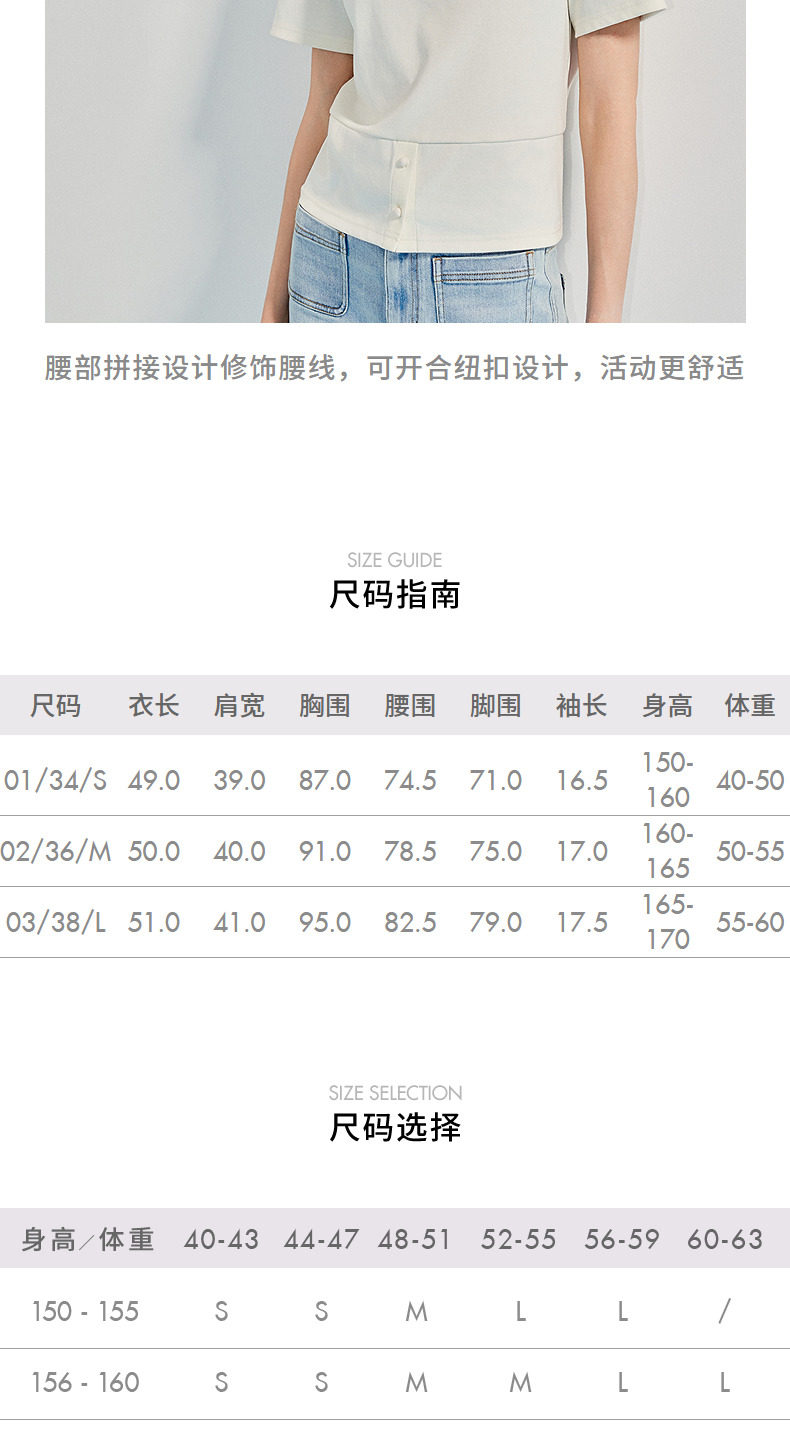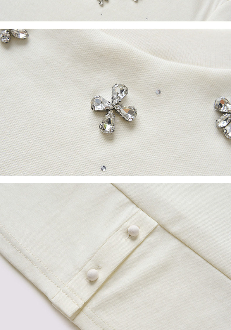 【SGPR】精致日常钻饰下摆两穿短袖T恤25夏修身上衣(货号:MU86TS251)