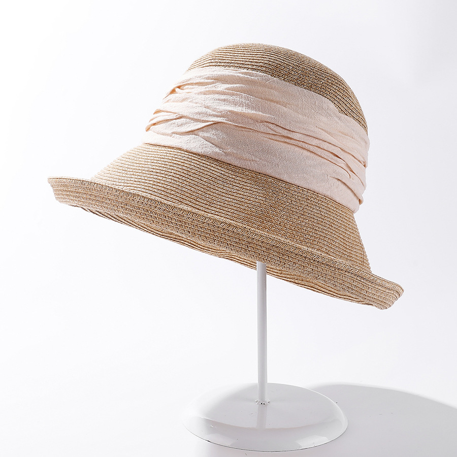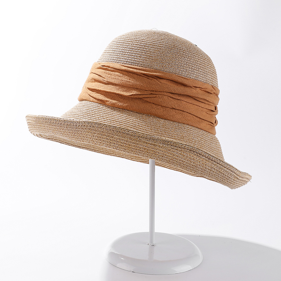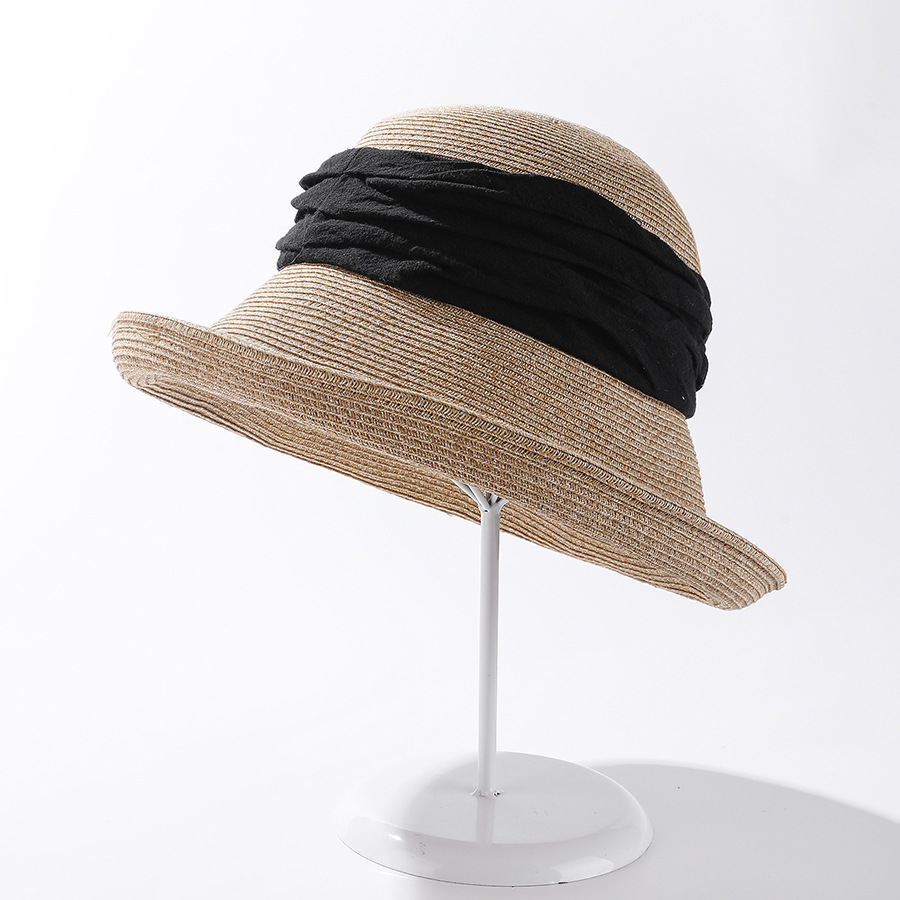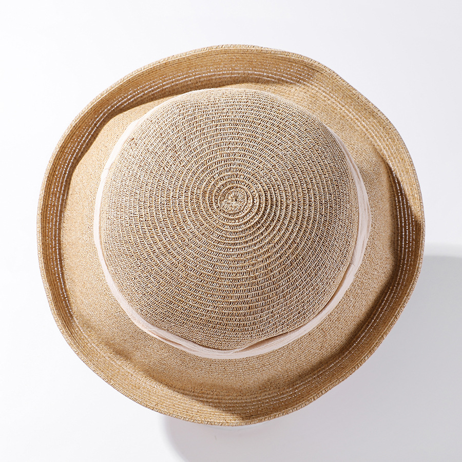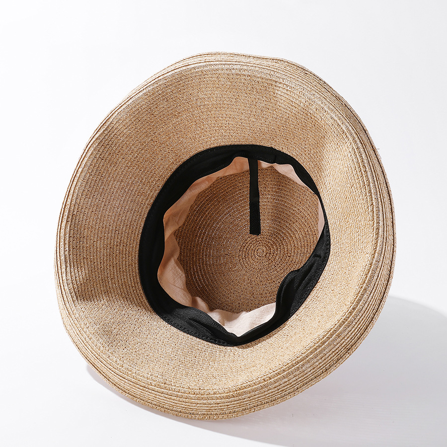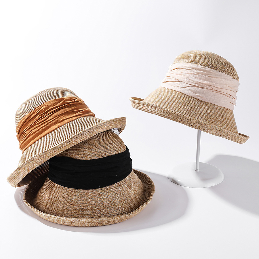CT-M1876跨境夏季新款皱皱卷边细编帽户外遮阳透气大檐帽子工厂
