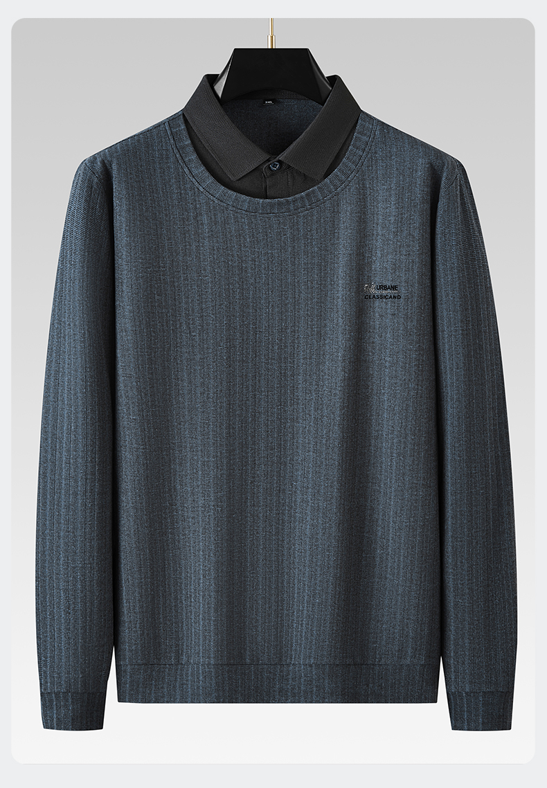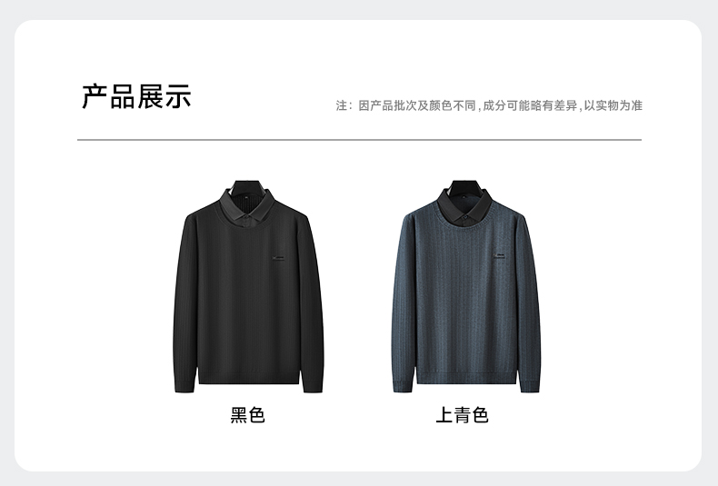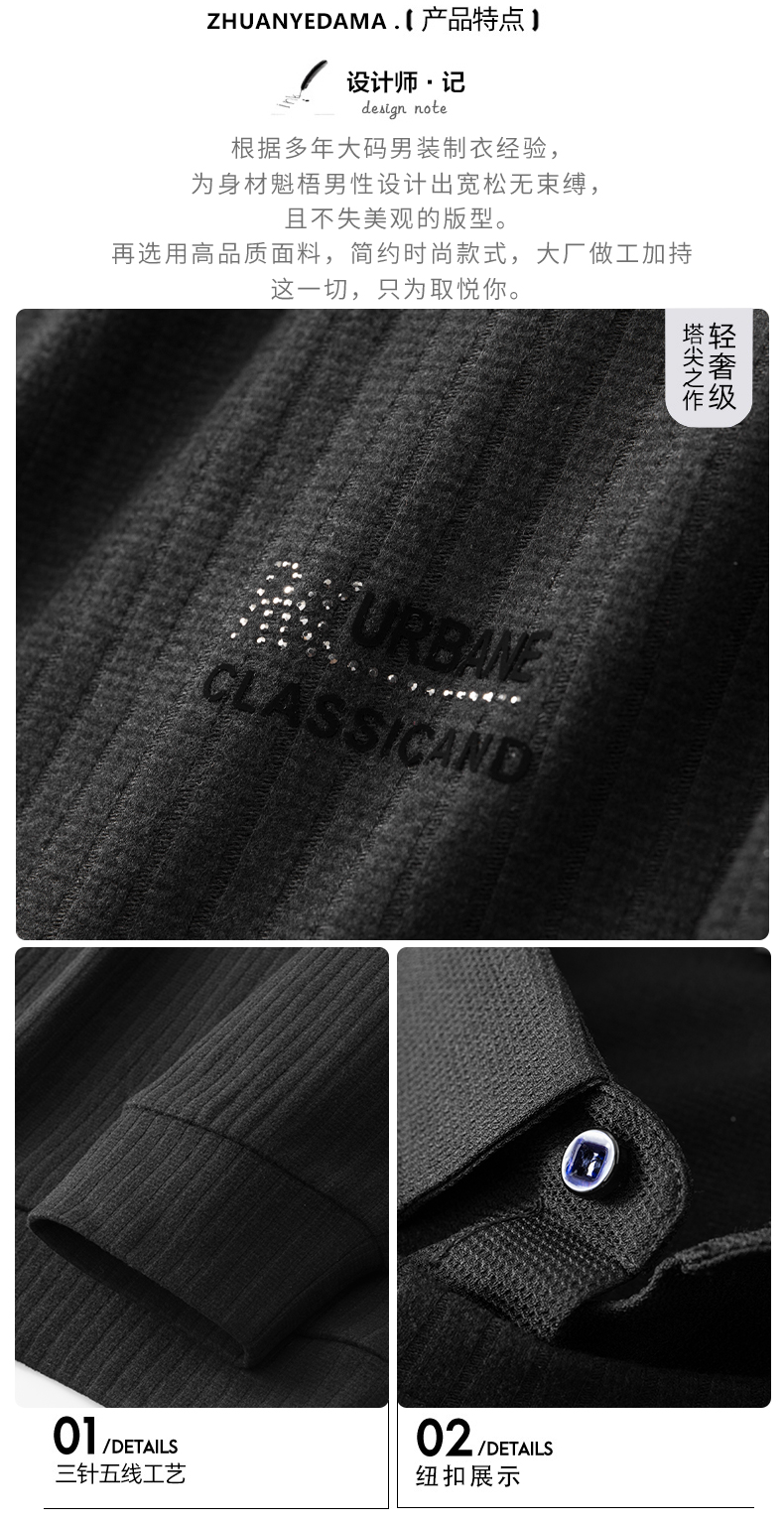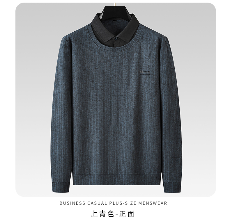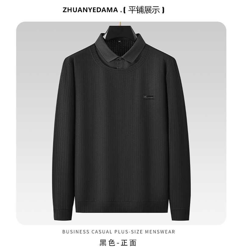 【假两件】【新款DDA】大依优型大码假两件长袖T恤衬衫领加肥加大肥佬休闲商务宽松透气上衣打底