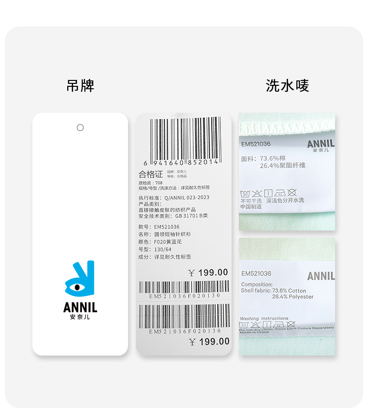 男女童圆领SORONA短袖T恤夏季新款安奈儿童装EM521036