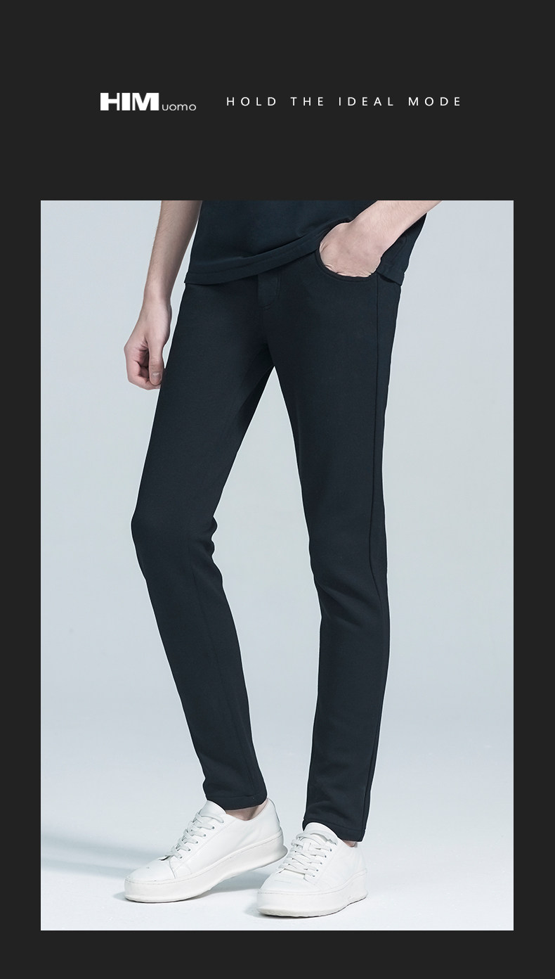 HIM漢崇 紧身弹力小脚基础款休闲裤男日常通勤针织长裤 2025冬季