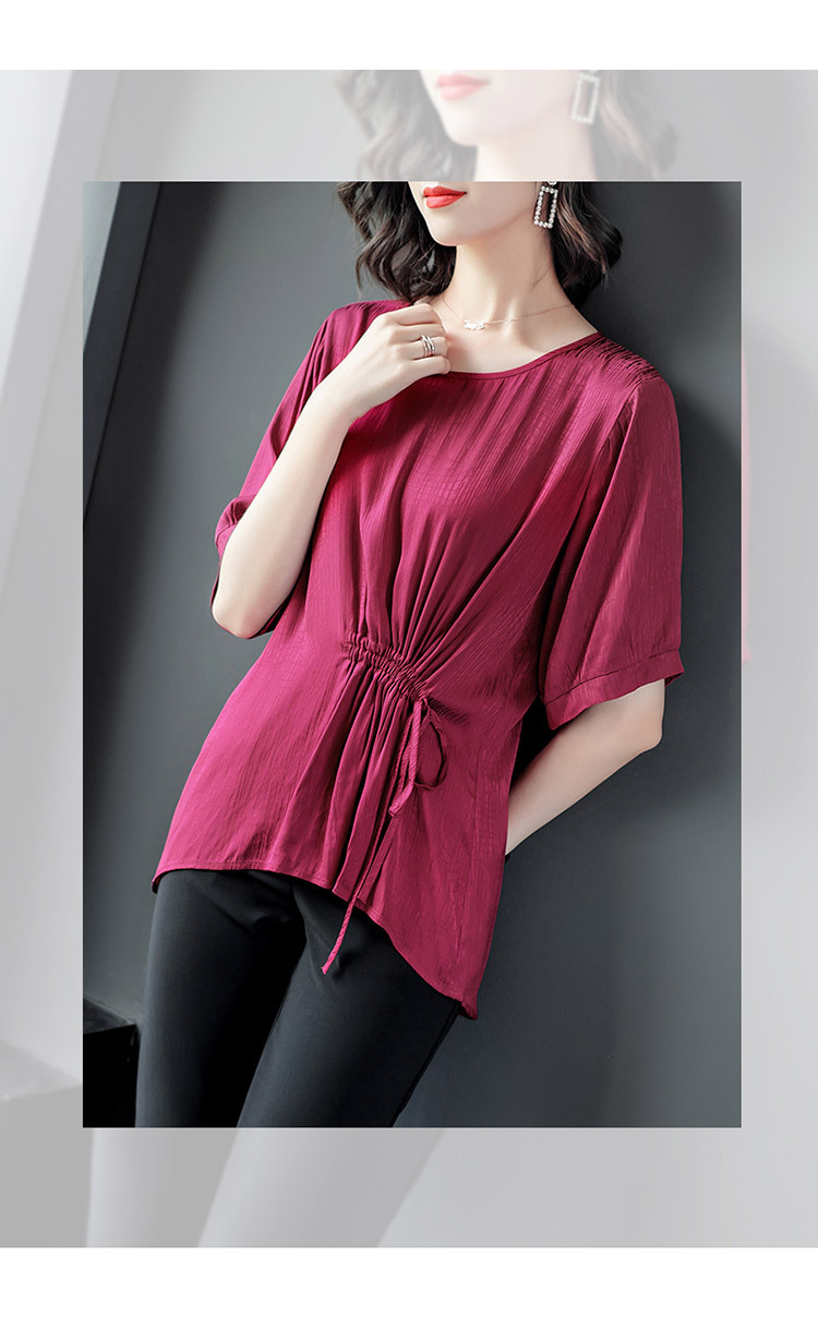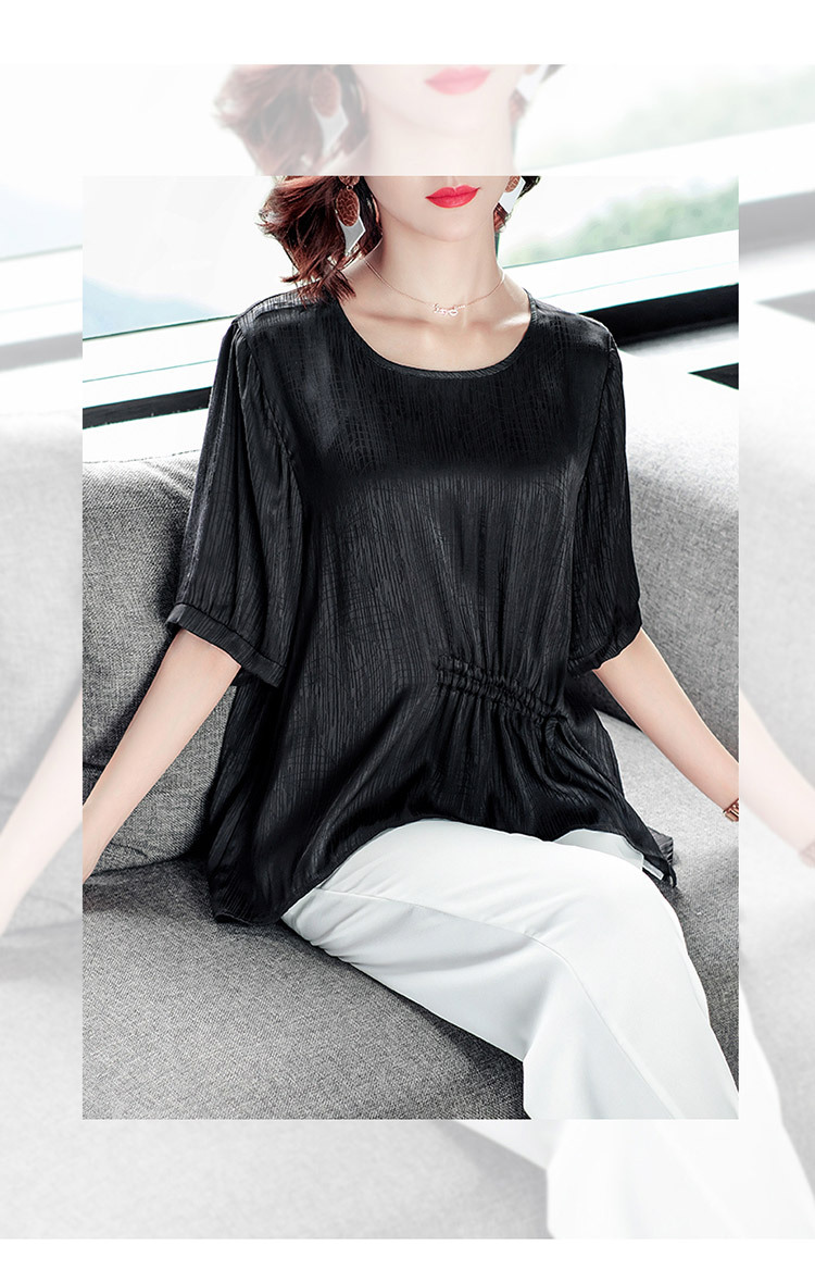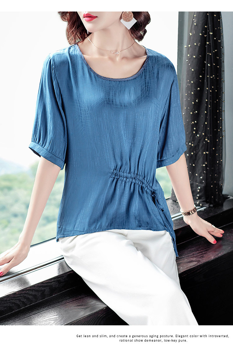 YH-893160新品天丝设计感小众百搭显瘦圆领中袖打底衫