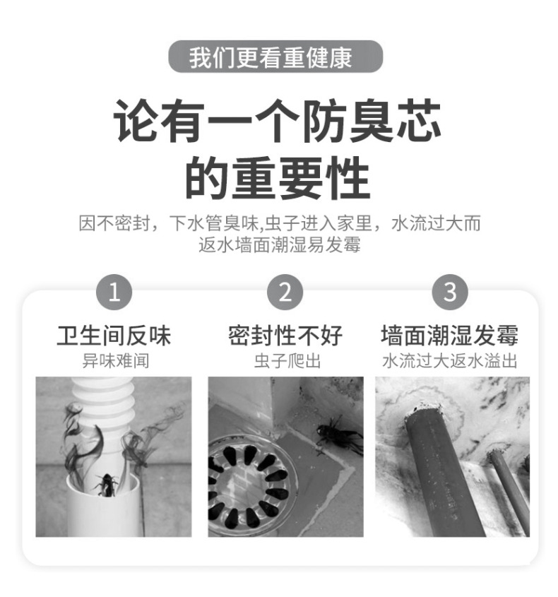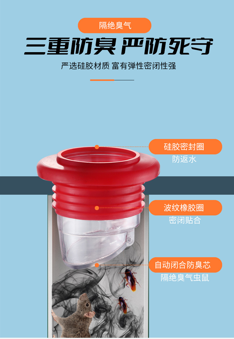 【地漏防臭器】卫生间下水道管防虫盖硅胶芯厕所防反味内芯密封圈神器