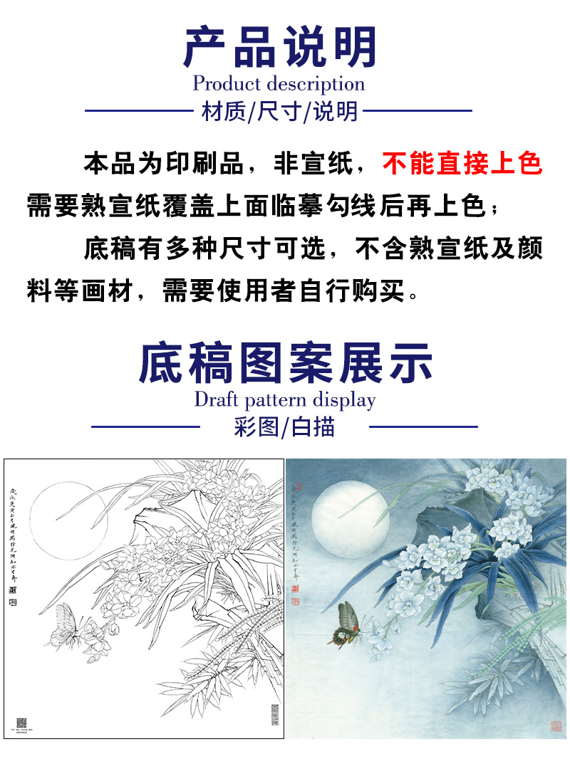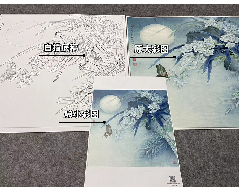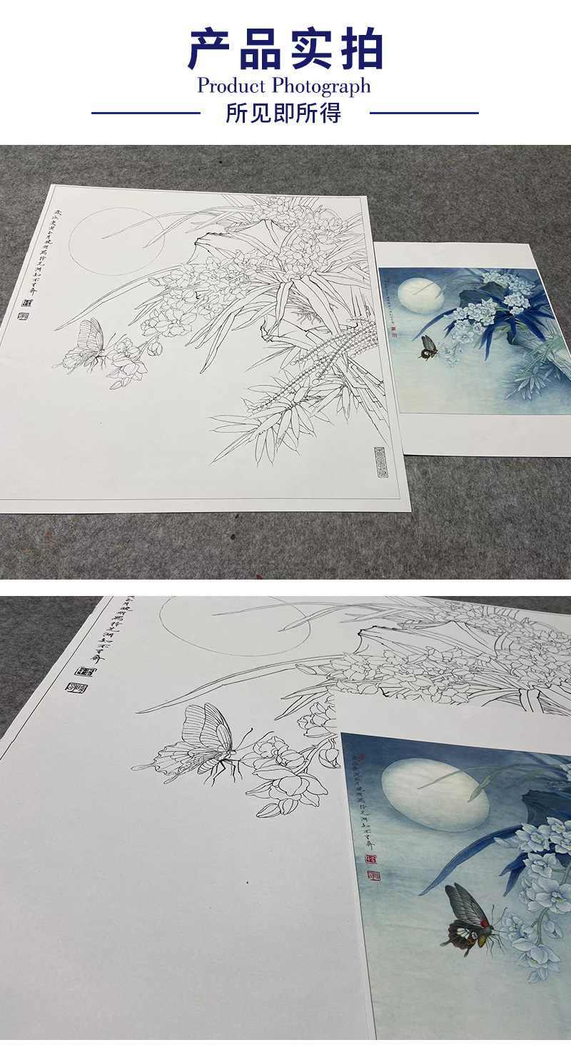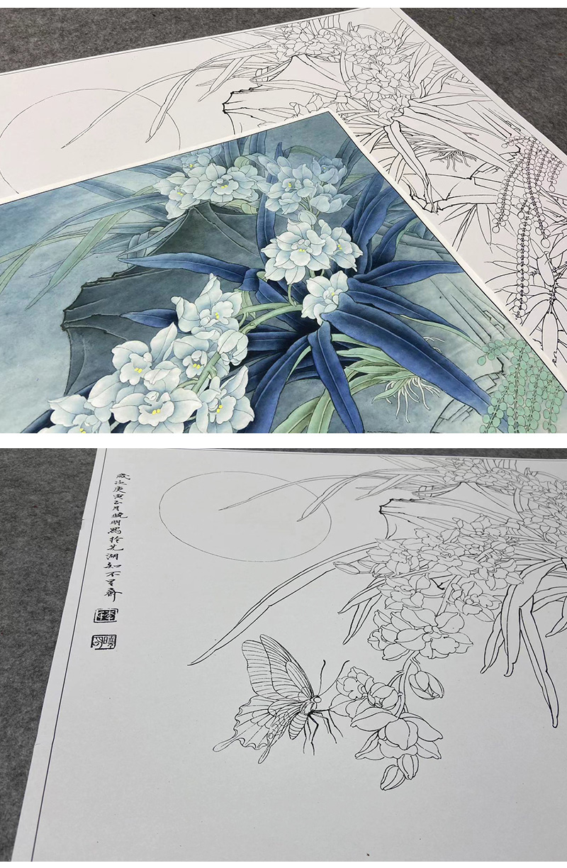 【大彩图】李晓明工笔画白描底稿斗方小品《幽兰玉凤蝶》玉兰花临摹勾线花鸟线稿K118