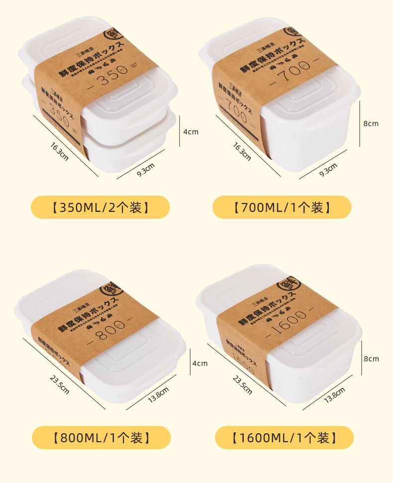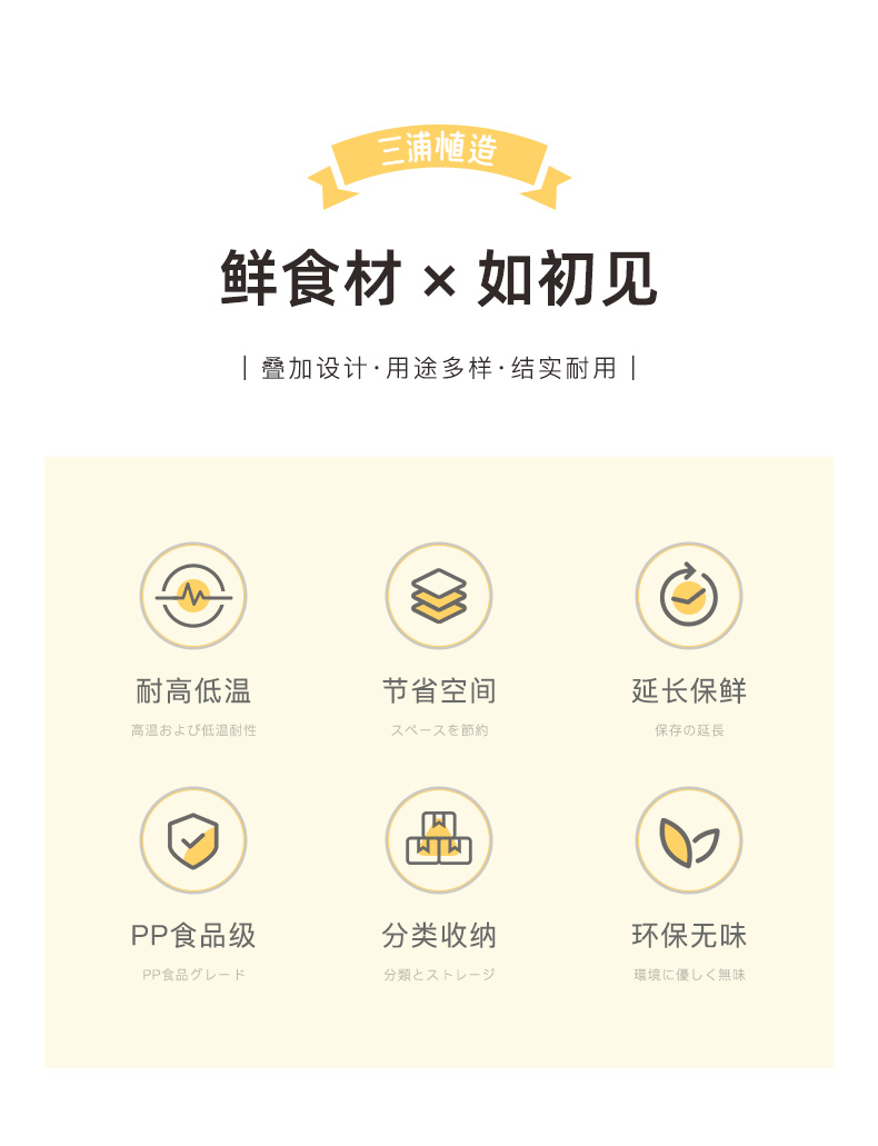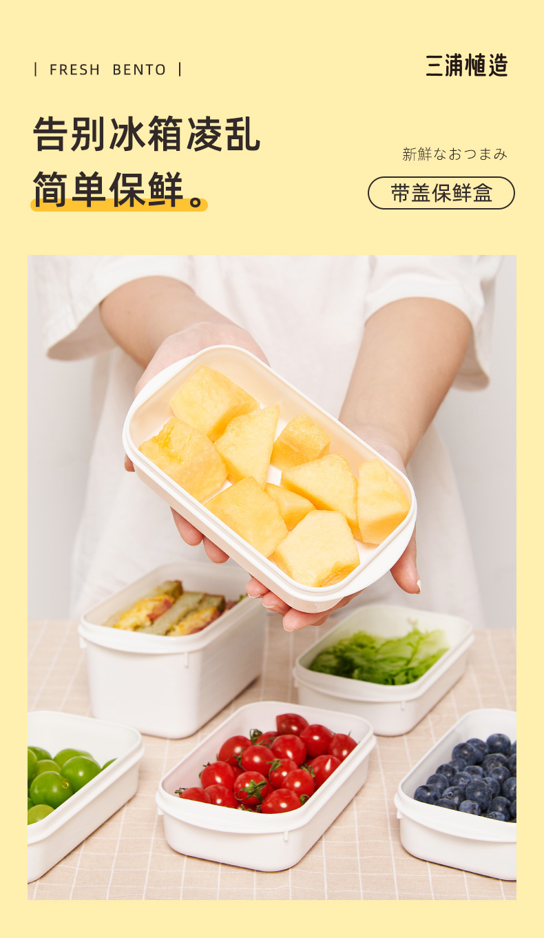 【冰箱保鲜盒5个装】三浦植造带盖保鲜盒冰箱收纳盒/密封盒可微波炉加热食品级pp材质可收纳食材果蔬各种坚果零食一组4个规格5个装