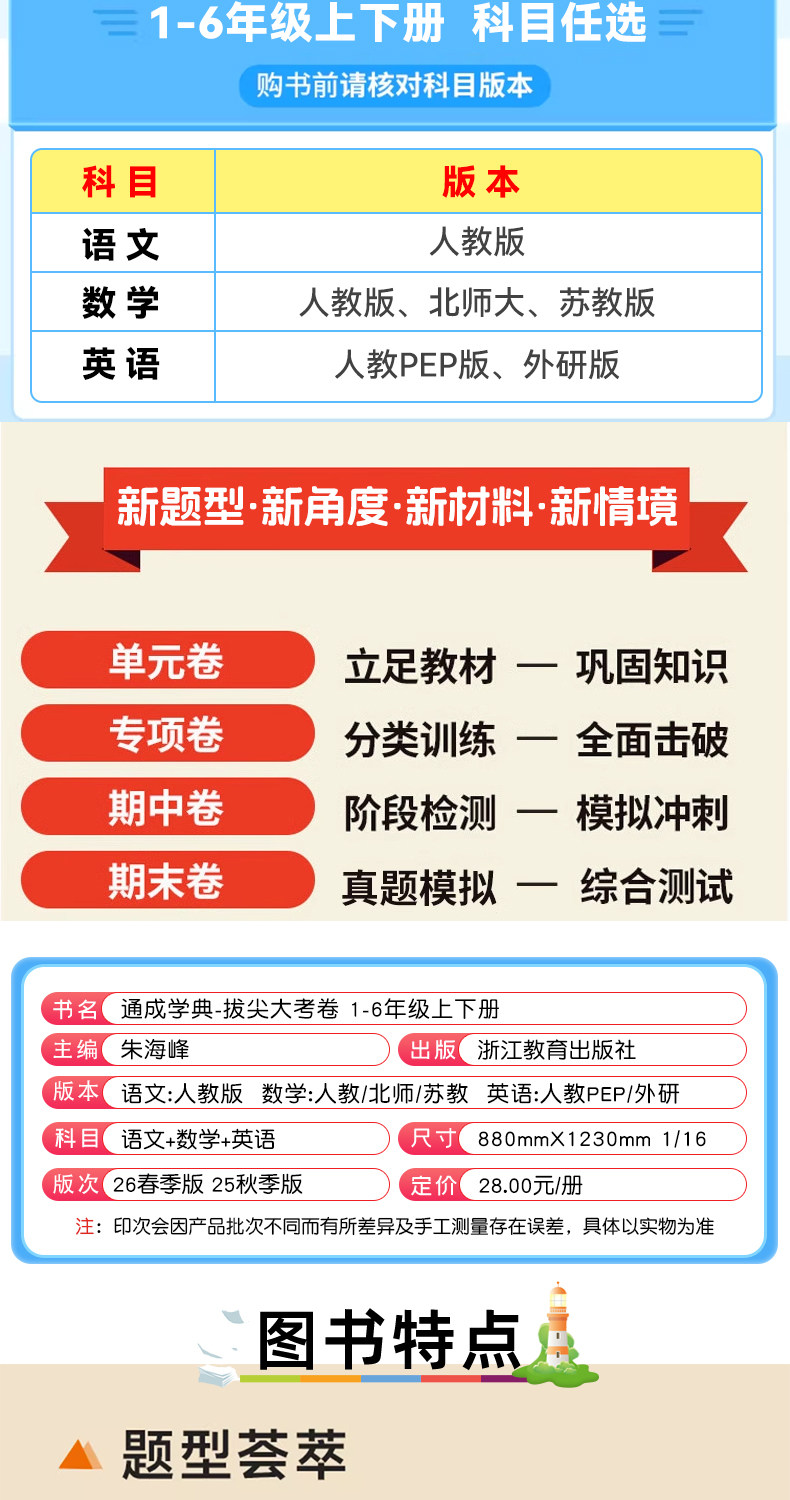 2026春通成学典拔尖大试卷小学语文数学英语一二三四五六年级下册任选人教版单元卷期中卷期末卷专项突破卷