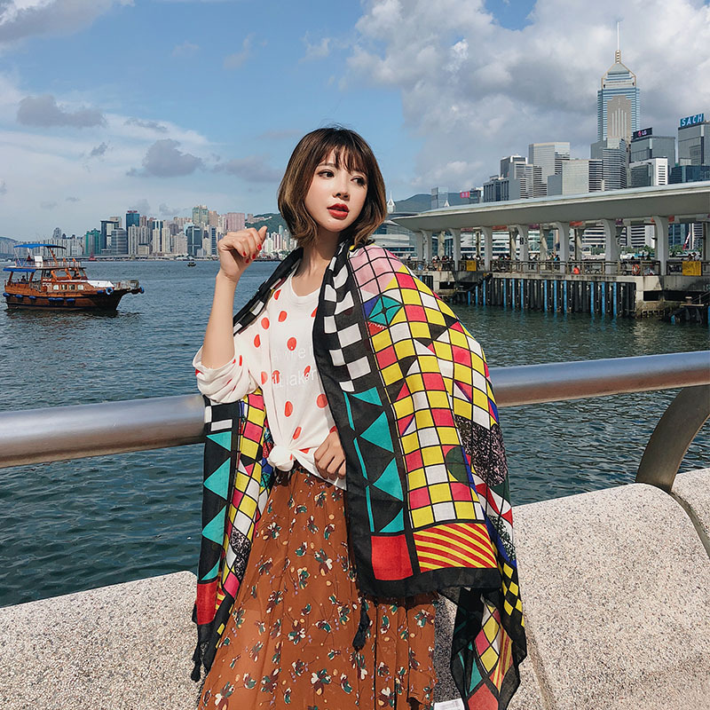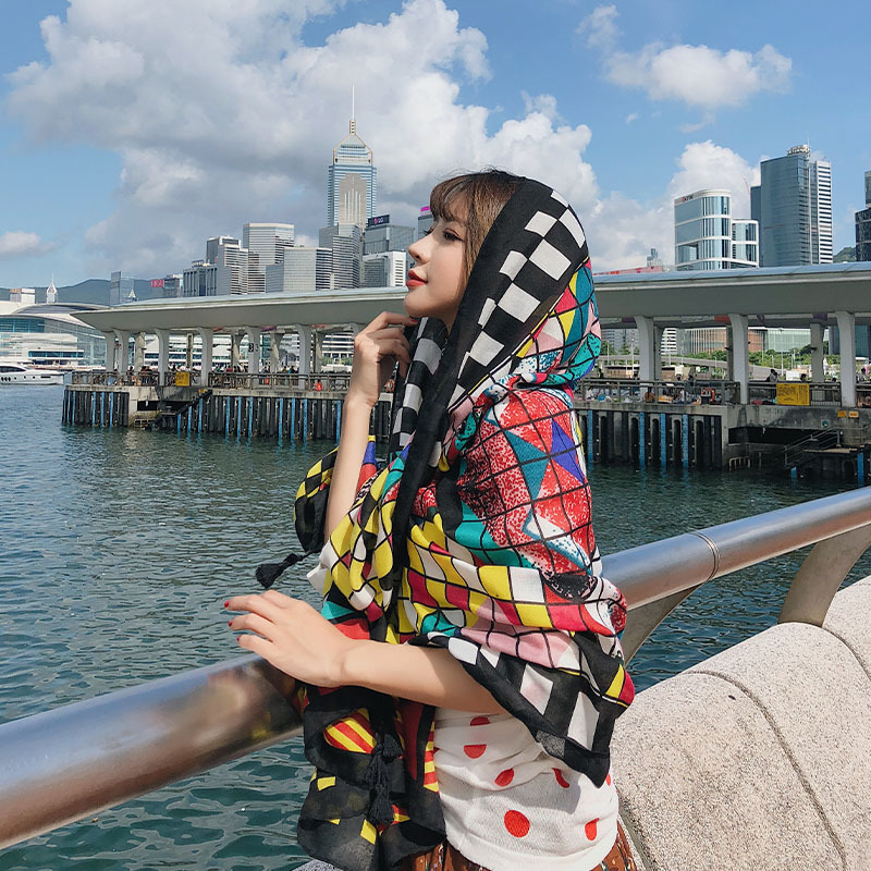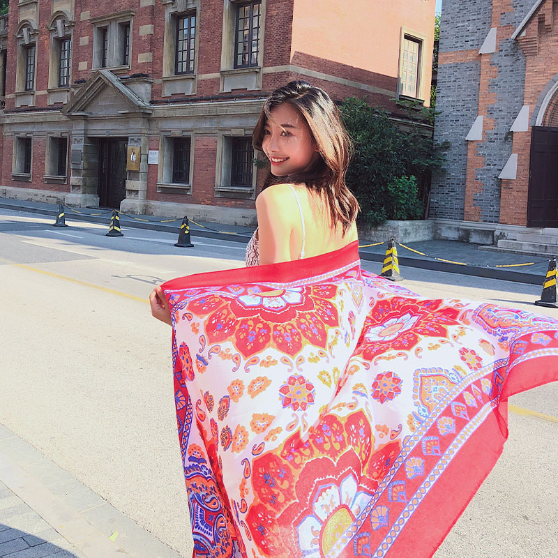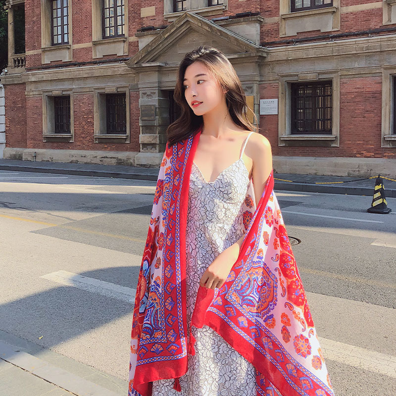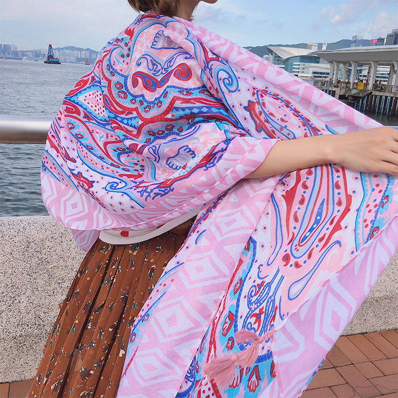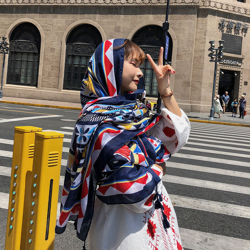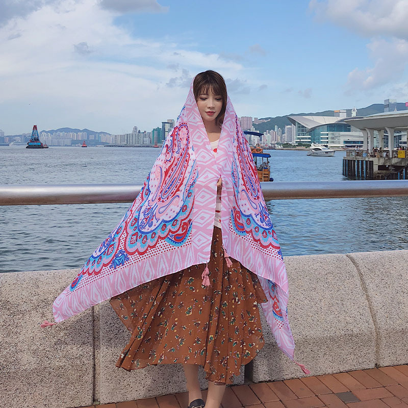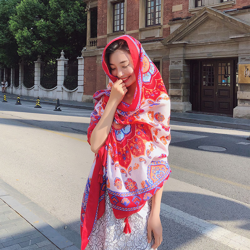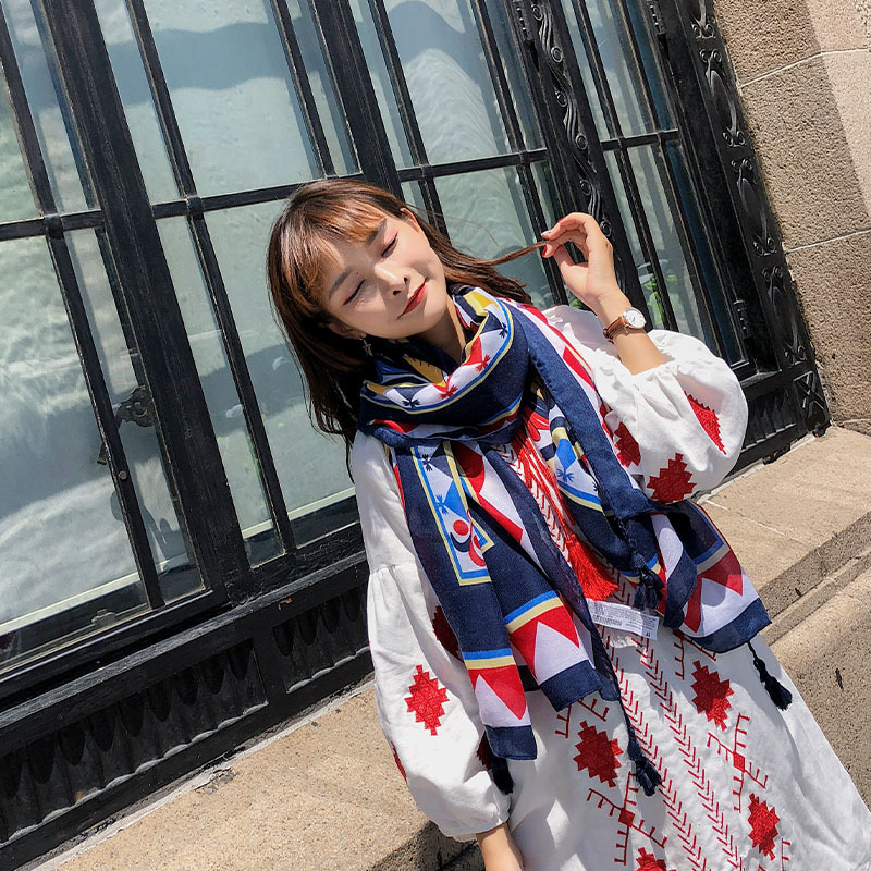 GRH-ttq202190春夏季新款复古民族风沙滩巾棉麻度假防晒丝巾百搭旅游围巾女披肩