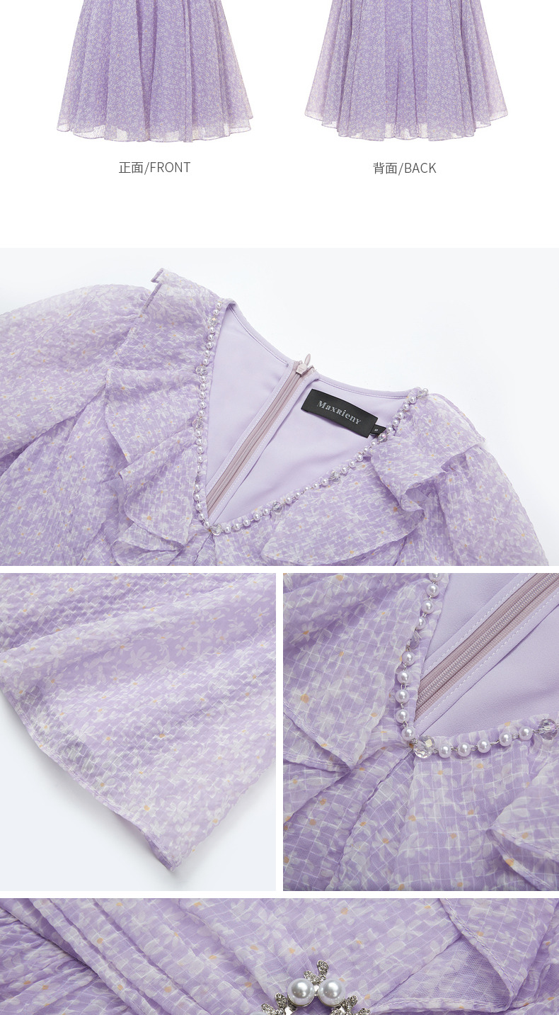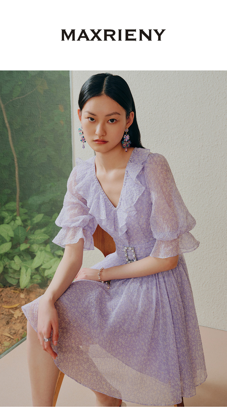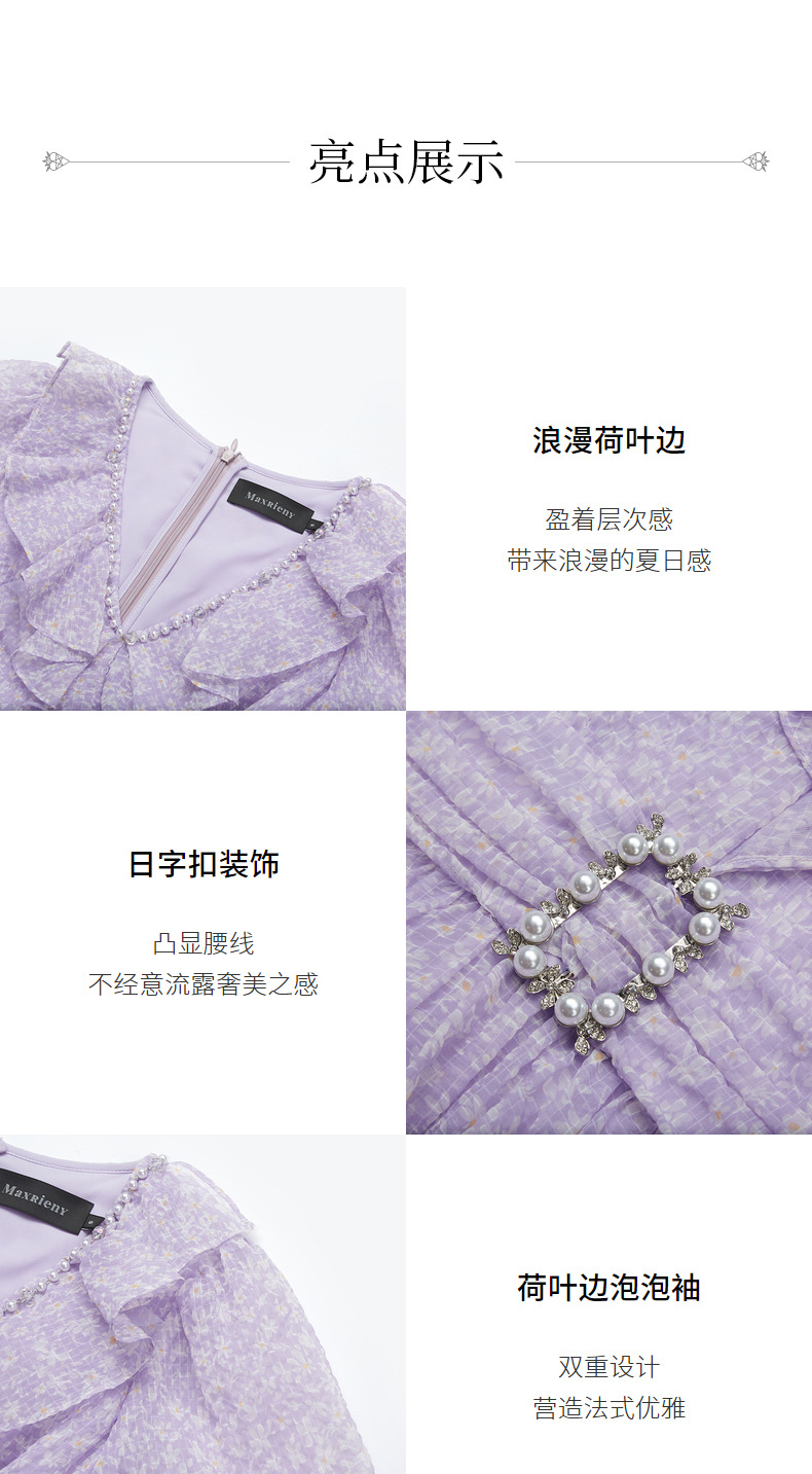 MAXRIENY欧式园艺风碎花茶歇裙修身显瘦雪纺连衣裙(货号:MC88DR354)