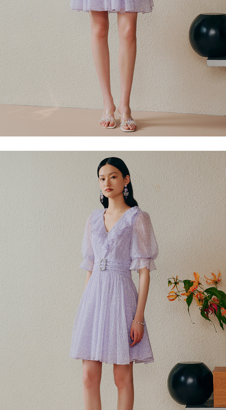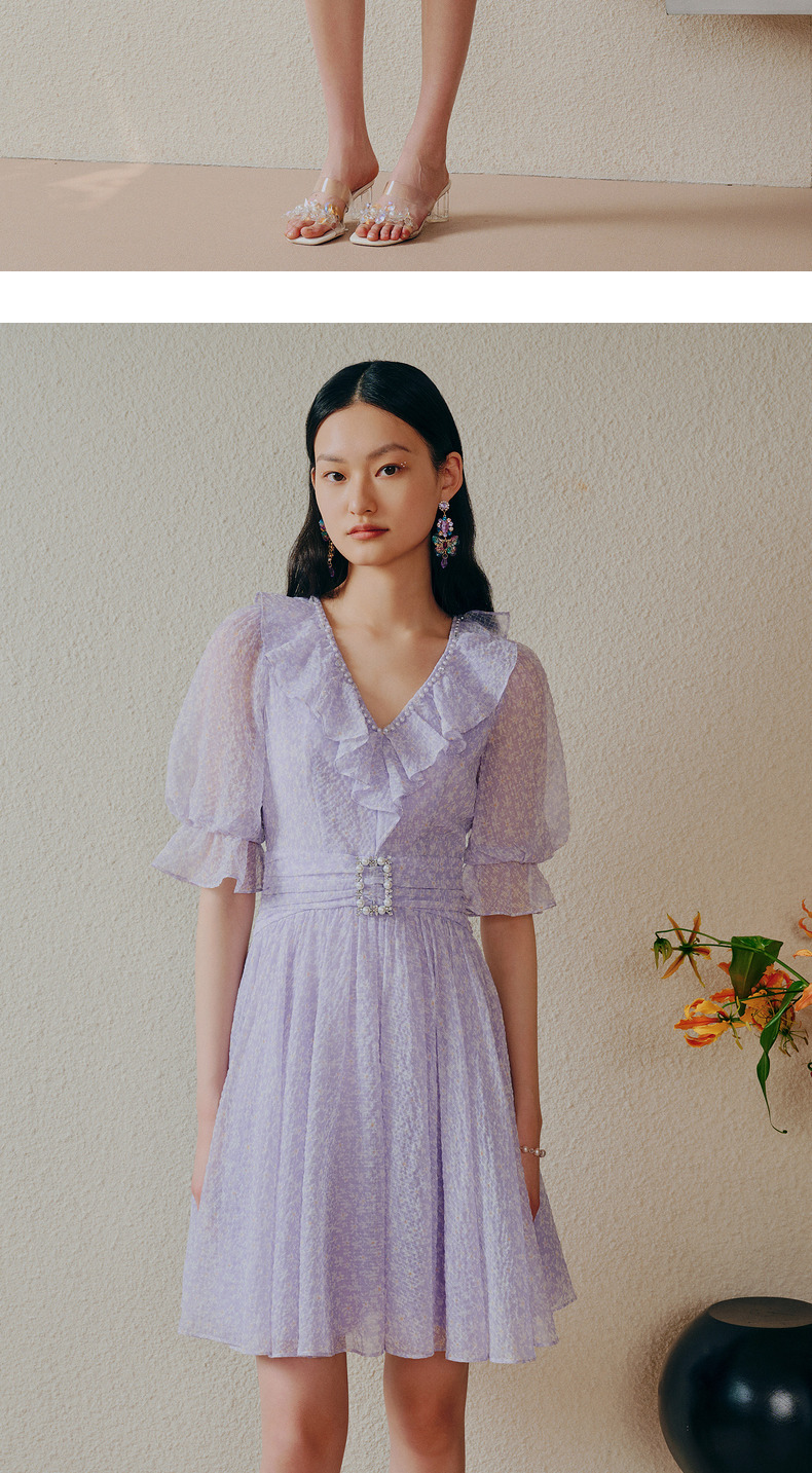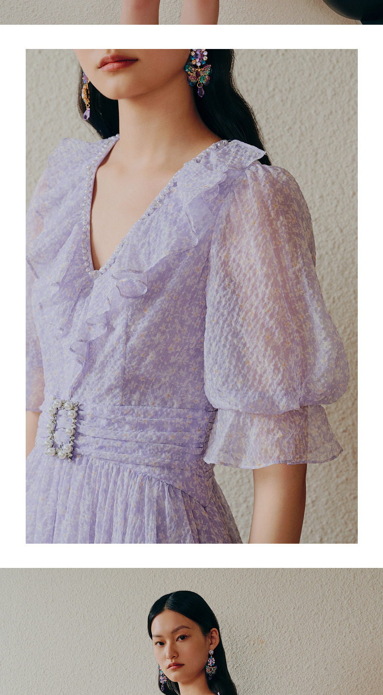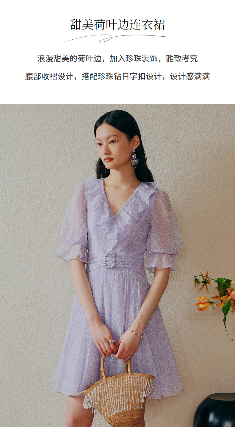 MAXRIENY欧式园艺风碎花茶歇裙修身显瘦雪纺连衣裙(货号:MC88DR354)
