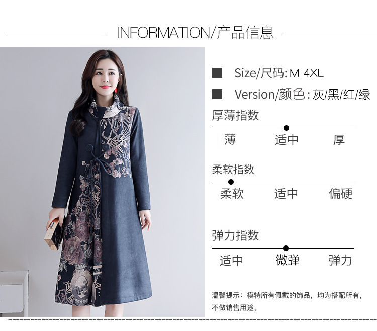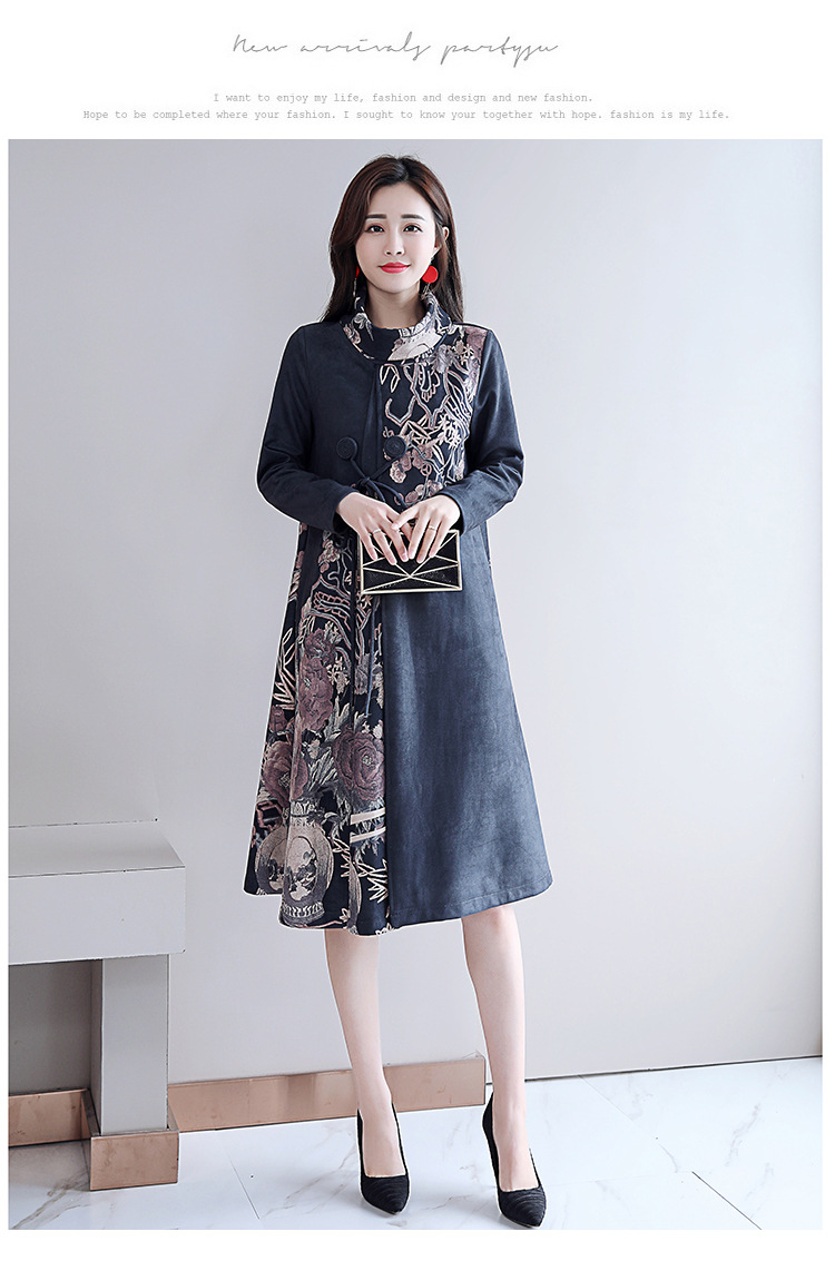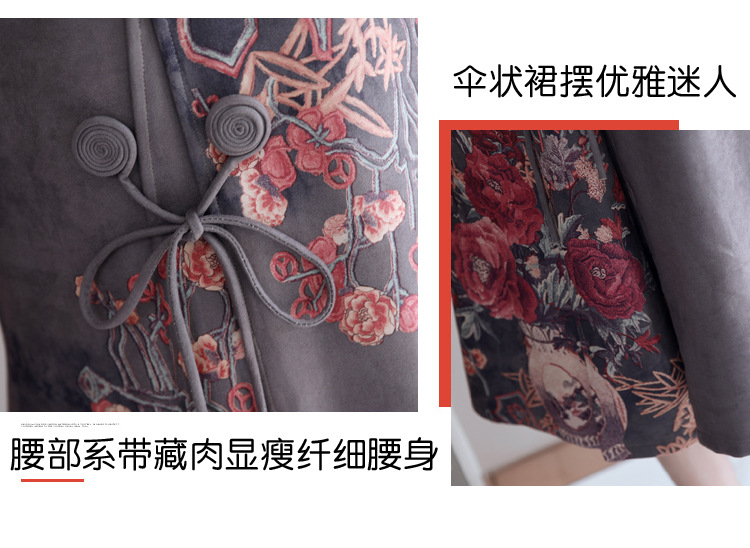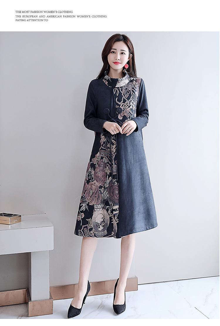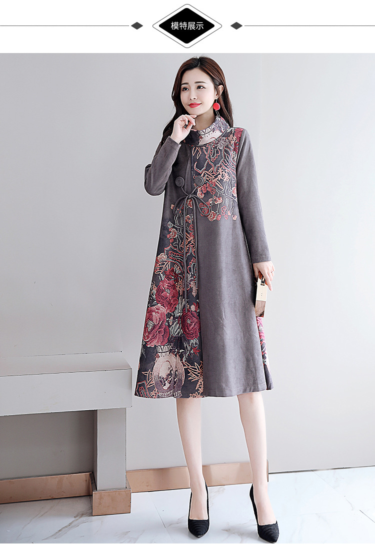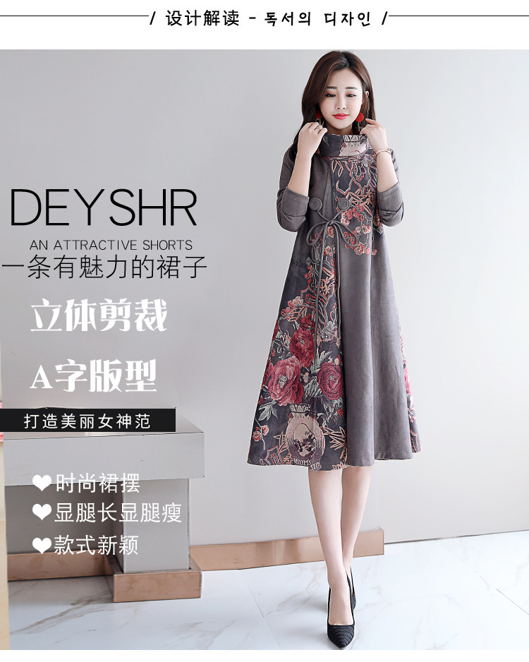 HT-917新款灰色复古印花高领连衣裙 XCX