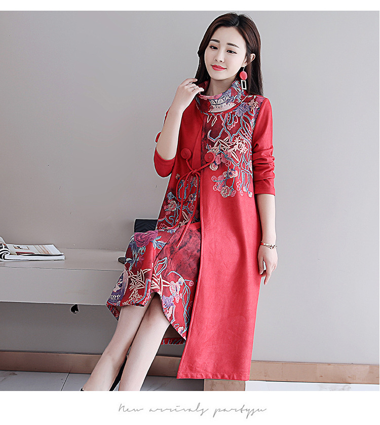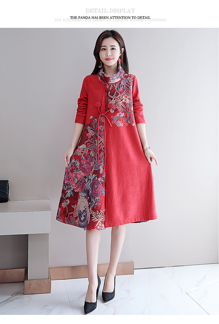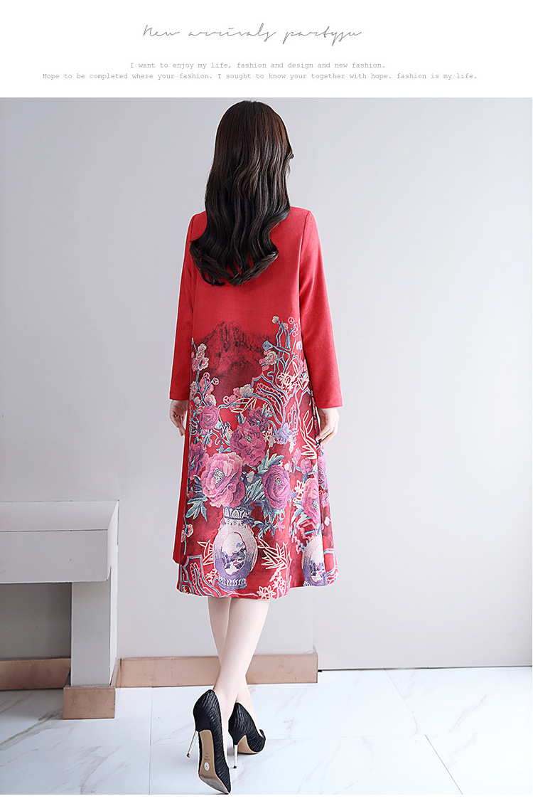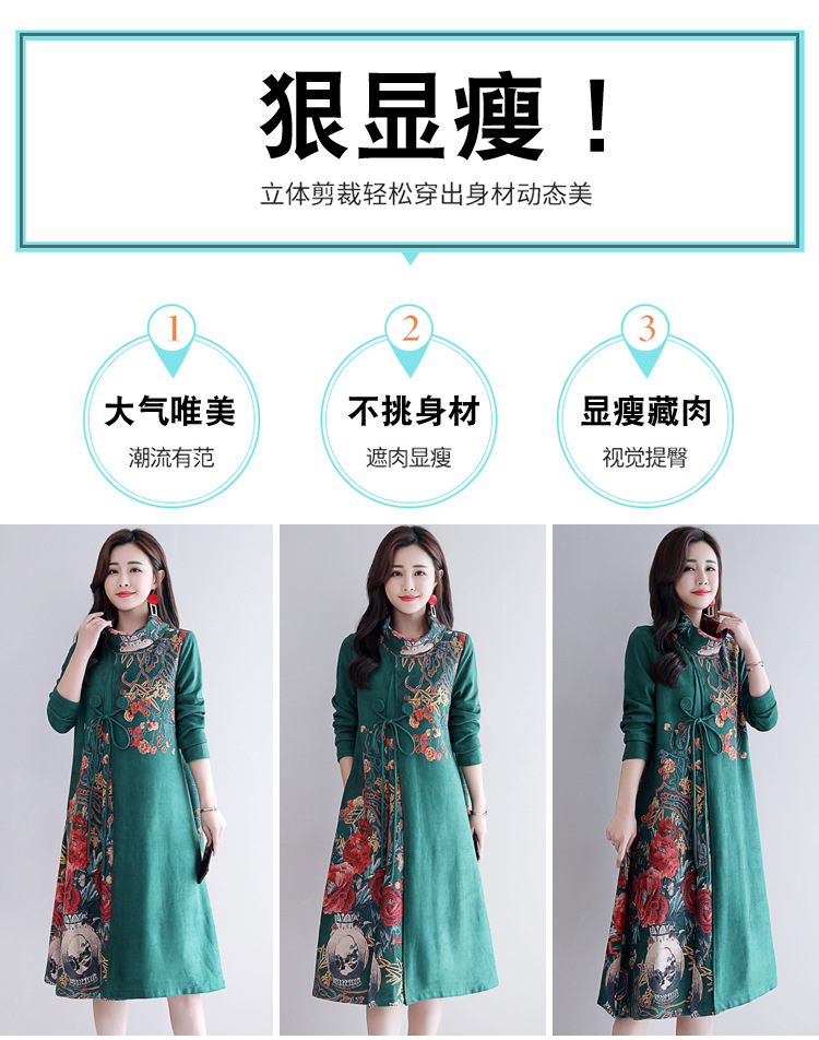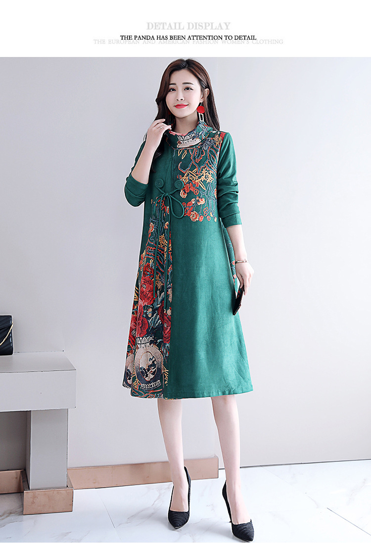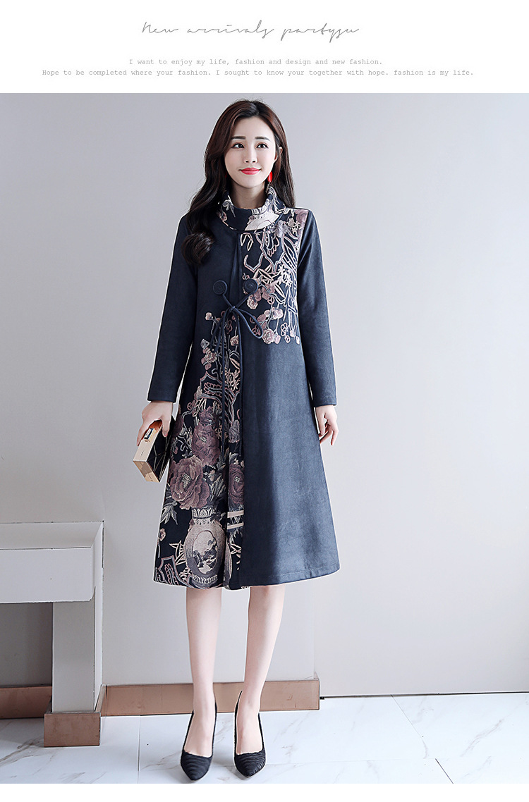 HT-917新款灰色复古印花高领连衣裙 XCX