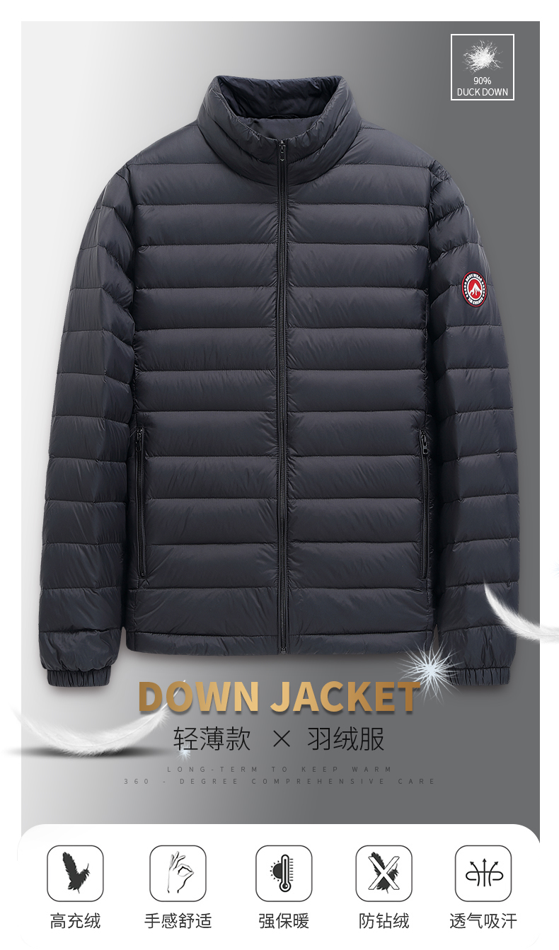 【新款DKP】大依优型大码轻薄立领羽绒服男士加肥加大码保暖上衣胖子外套