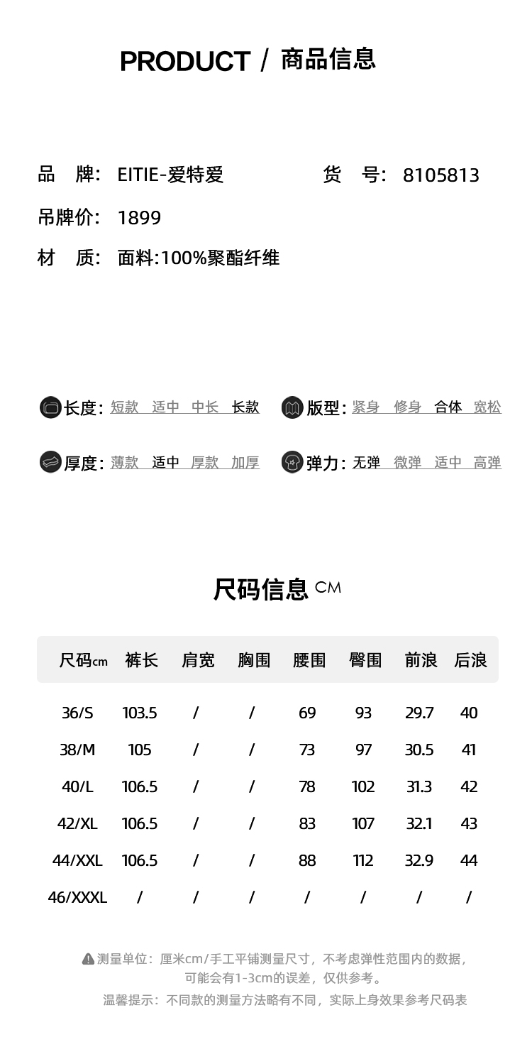 EITIE爱特爱气质修身微喇显瘦通勤西装裤春季新款8105813