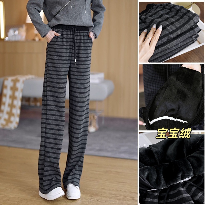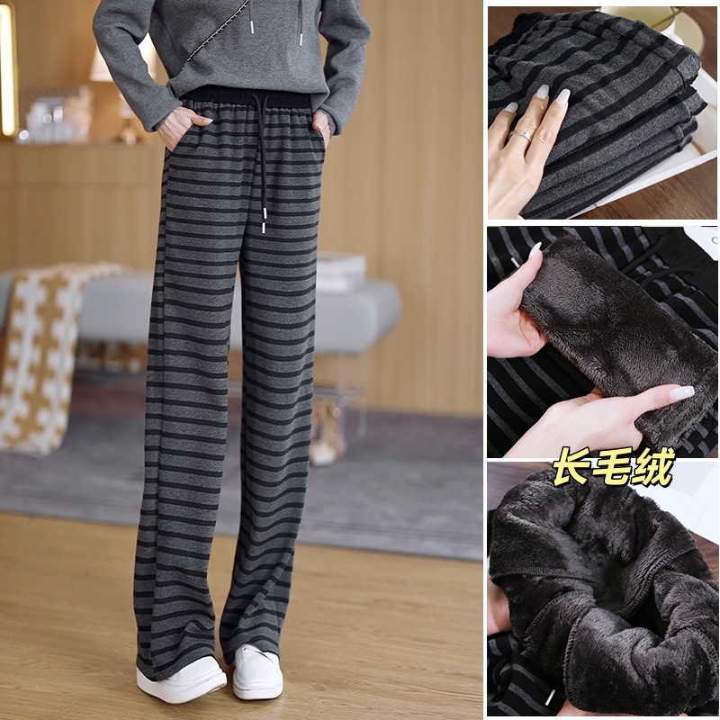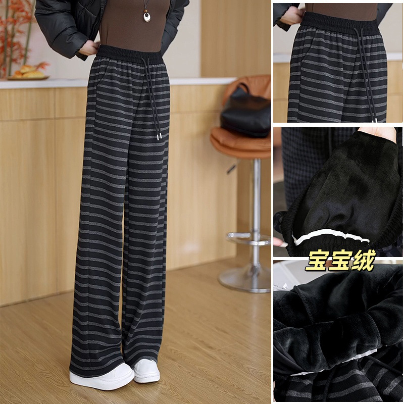 丁摩 条纹阔腿裤女春夏新款抽绳松紧高腰显瘦慵懒宽松拖地裤子5ZF-1785