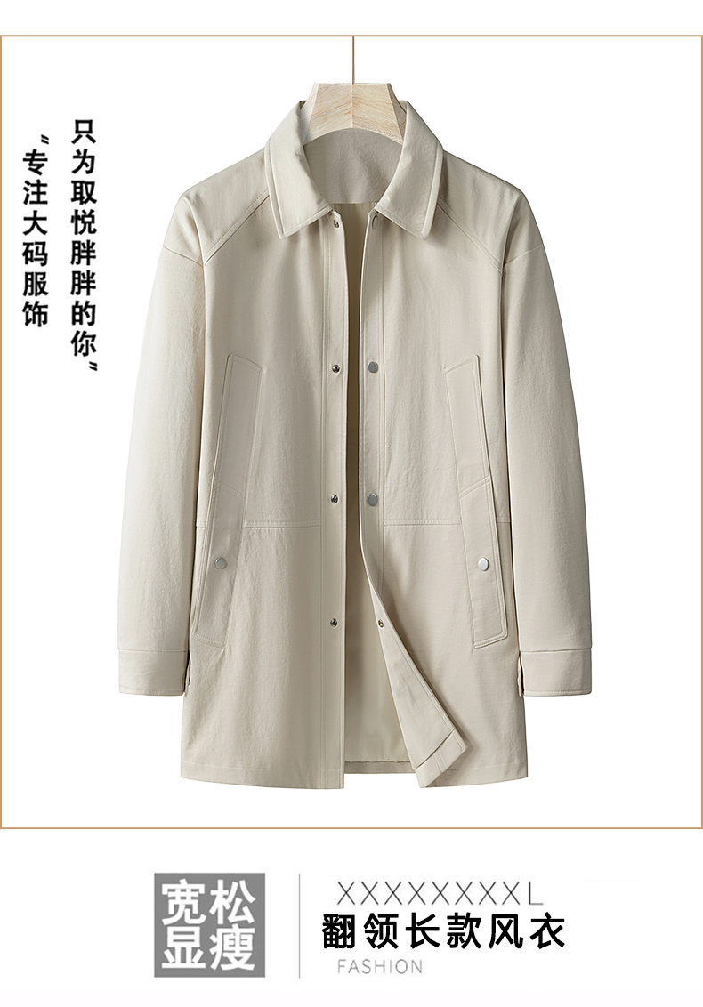 【DPX】300斤大依优型大码翻领中长款时尚休闲夹克加大码风衣外套男士胖子春秋
