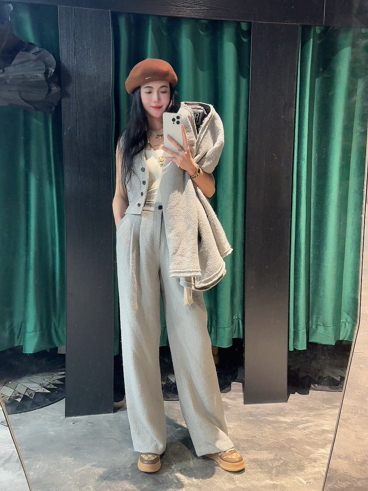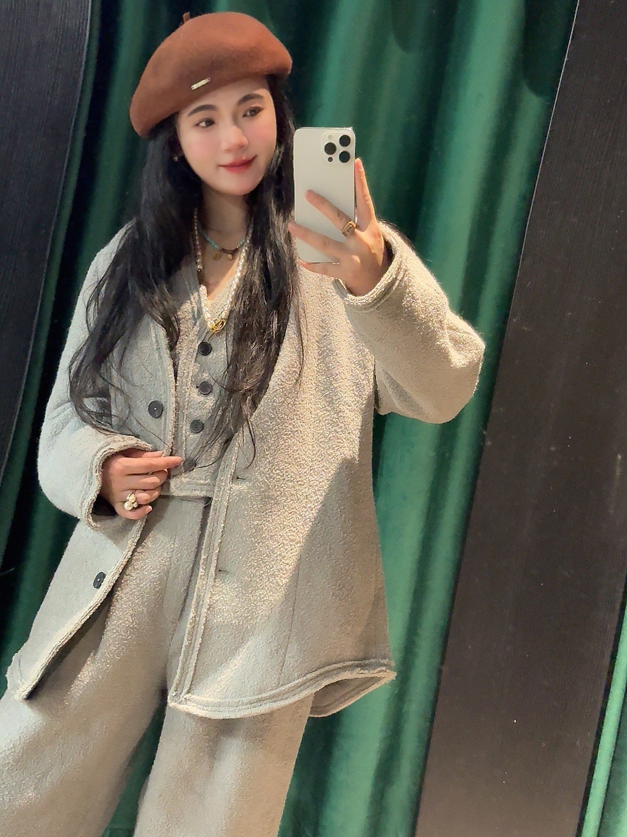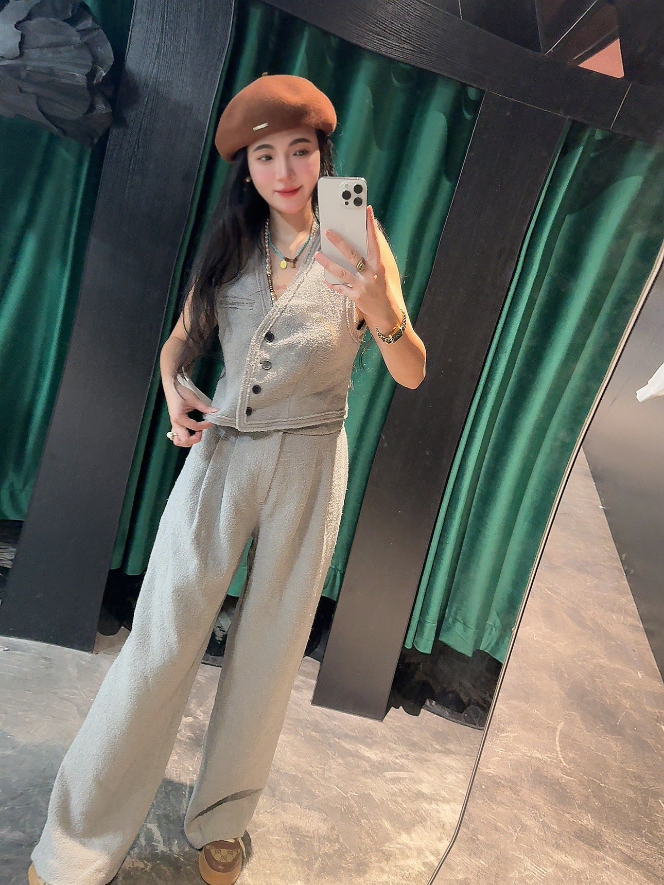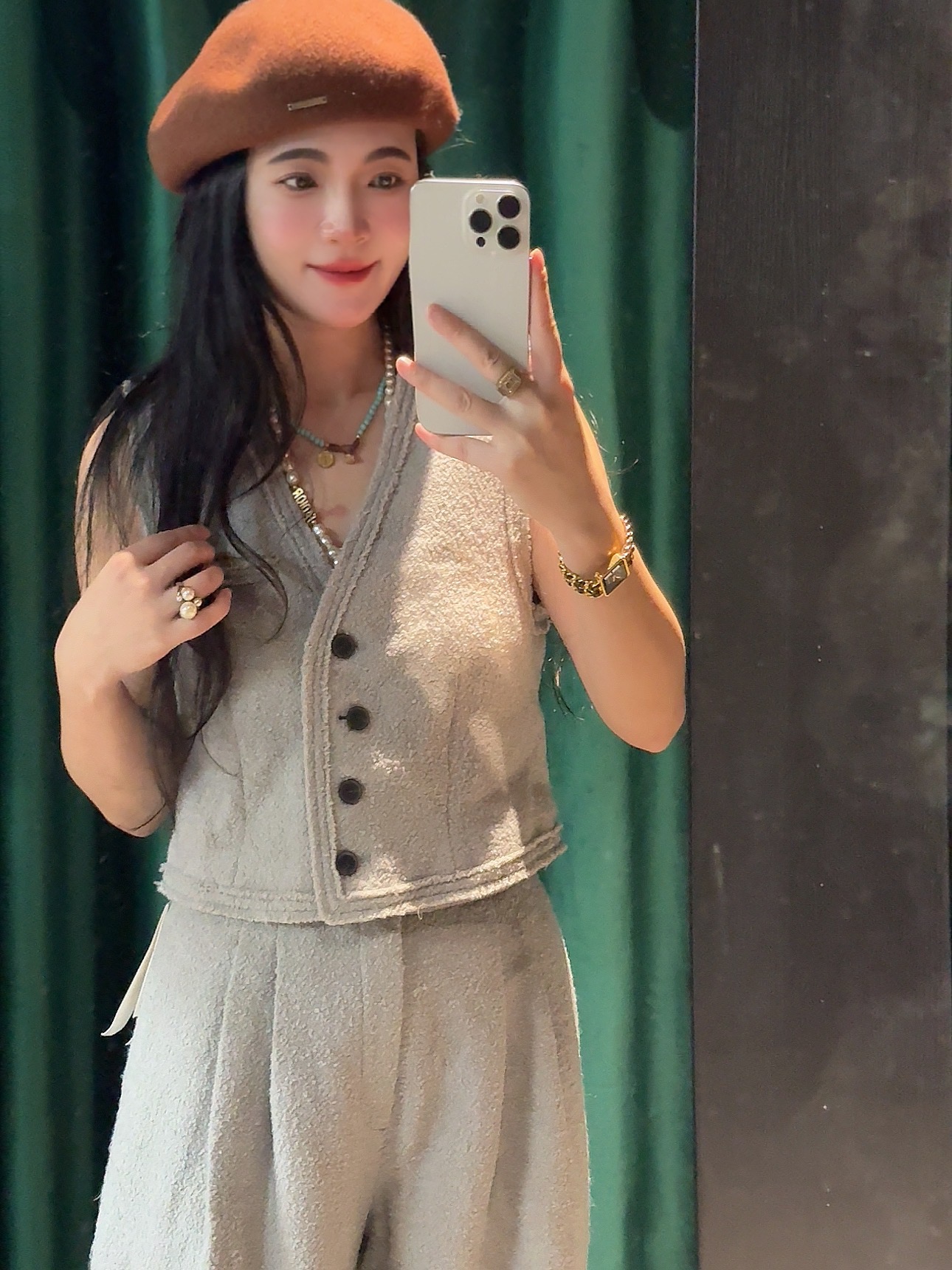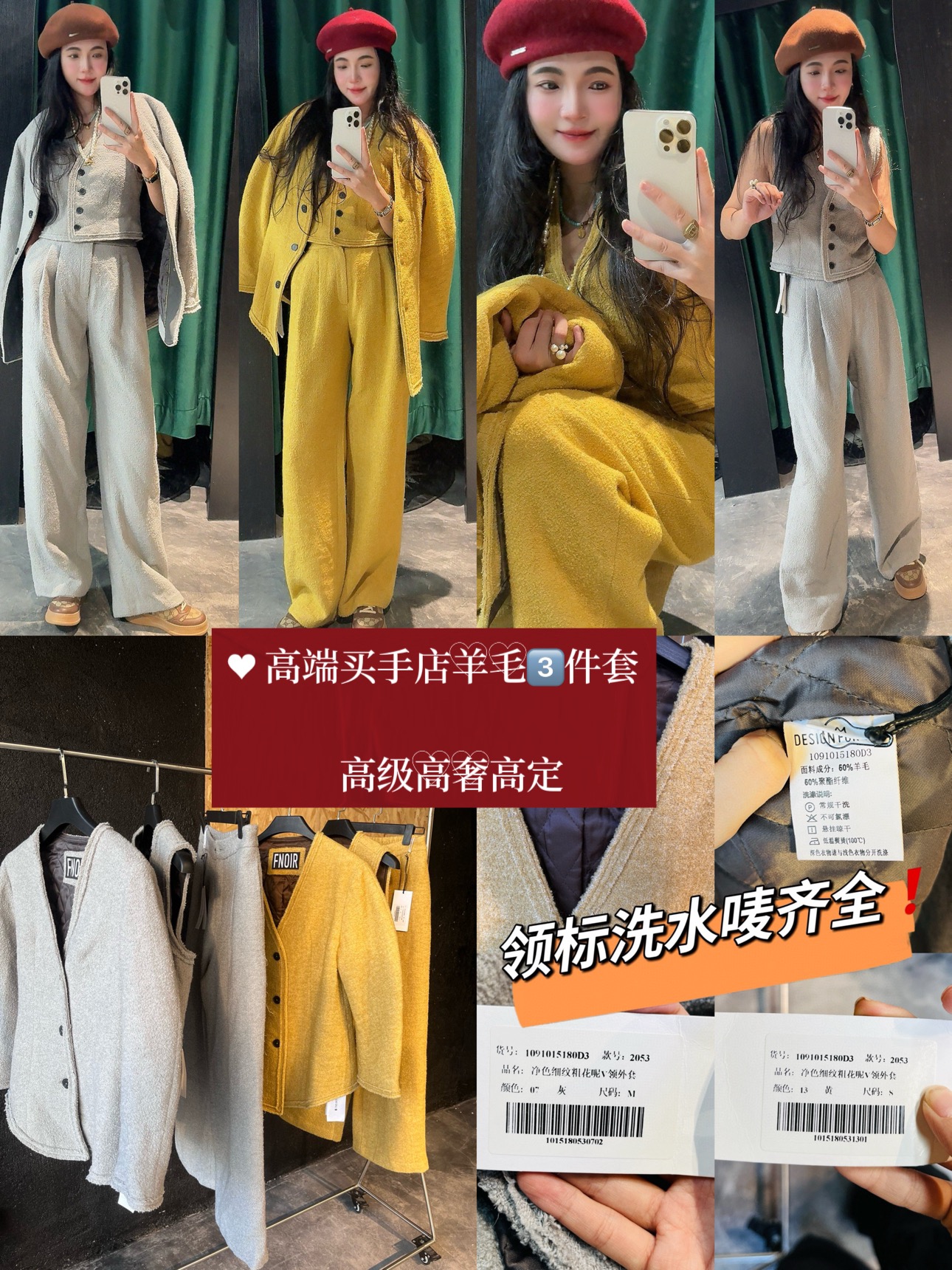 现在刚上架的这款‼️你们准备好!正儿八经深圳买手店高定款!羊毛三件套!比羽绒还暖!又显瘦!而且非常有气场!很罕见的货!数量都不多!全现货在仓!这种套装买手店没有2-3000不可能拿的下来!‼️重点是三件套‼️ 现在天气不穿外套。就搭配背心都够了! 重点‼️市面没有2-3000不可能拿到‼️ 羊毛羊毛!外套内里夹棉 不显臃肿 包容度也很友好哦~ 肩部微垫肩设计 轻松穿出直角肩效果 利落的平驳领很有气质 单排扣设计 方便日常穿脱 下身经典的直筒裤 遮跨显瘦 视觉上收拢臀腿 上身温柔知性 高级感满满‼️羊毛含量百分之50‼️我穿S。2色都自己留了‼️