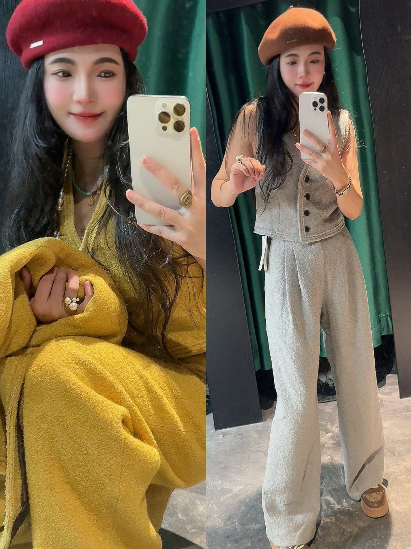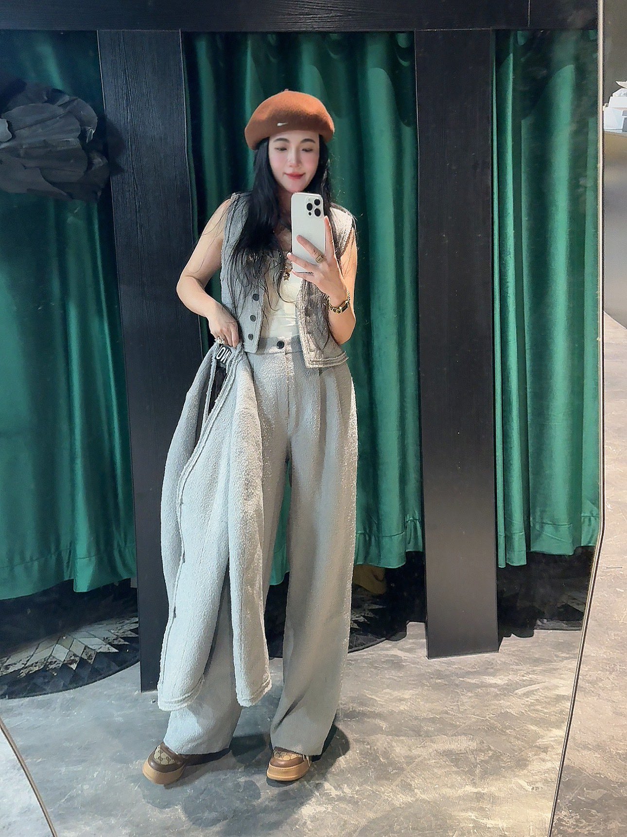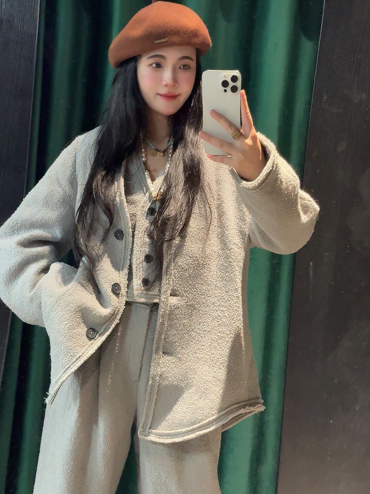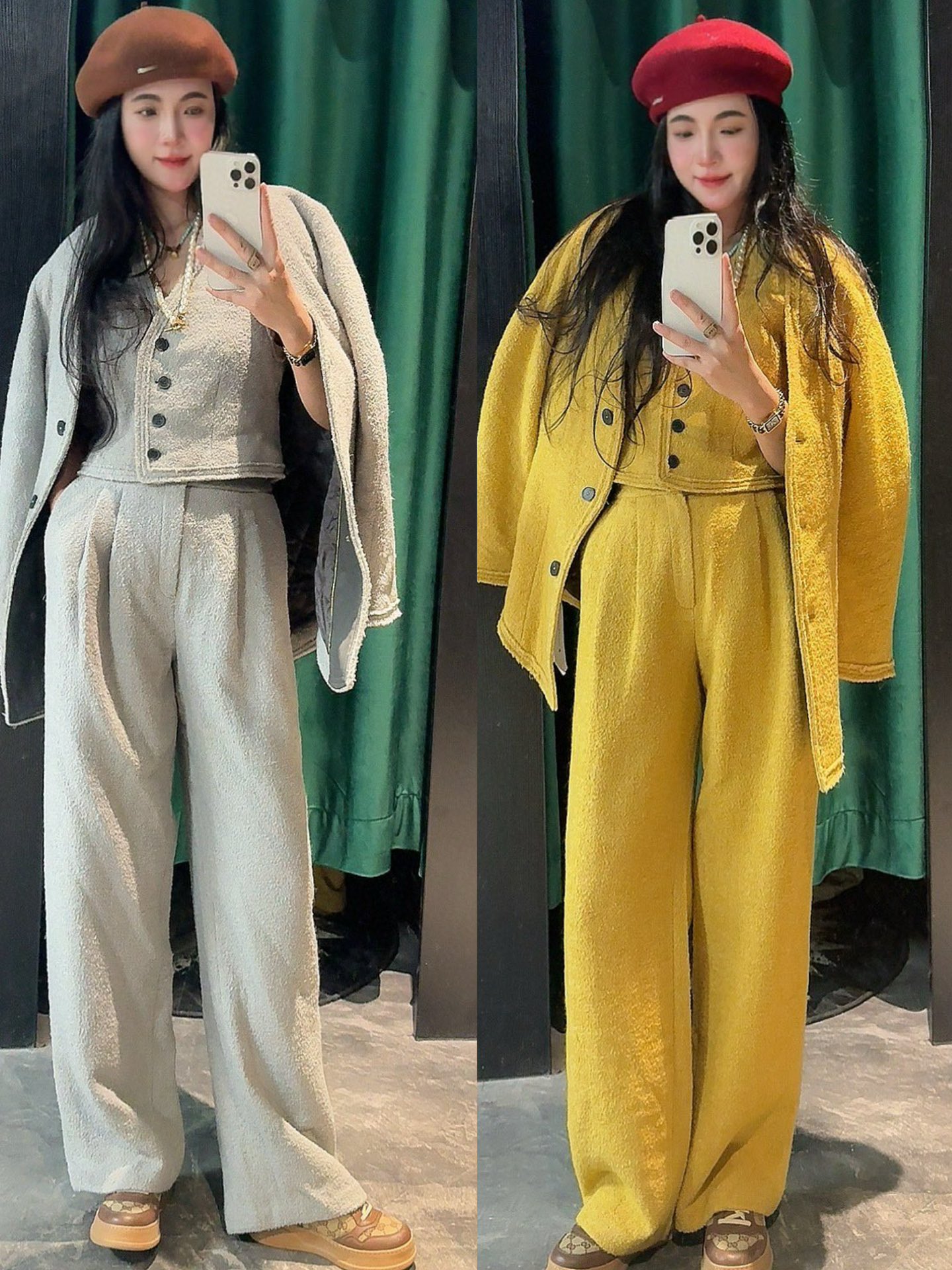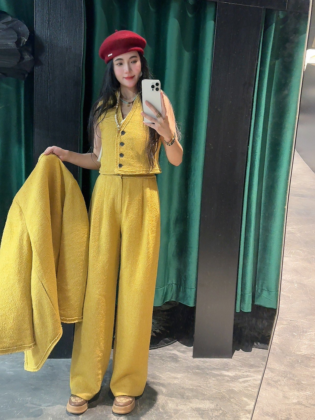 现在刚上架的这款‼️你们准备好!正儿八经深圳买手店高定款!羊毛三件套!比羽绒还暖!又显瘦!而且非常有气场!很罕见的货!数量都不多!全现货在仓!这种套装买手店没有2-3000不可能拿的下来!‼️重点是三件套‼️ 现在天气不穿外套。就搭配背心都够了! 重点‼️市面没有2-3000不可能拿到‼️ 羊毛羊毛!外套内里夹棉 不显臃肿 包容度也很友好哦~ 肩部微垫肩设计 轻松穿出直角肩效果 利落的平驳领很有气质 单排扣设计 方便日常穿脱 下身经典的直筒裤 遮跨显瘦 视觉上收拢臀腿 上身温柔知性 高级感满满‼️羊毛含量百分之50‼️我穿S。2色都自己留了‼️