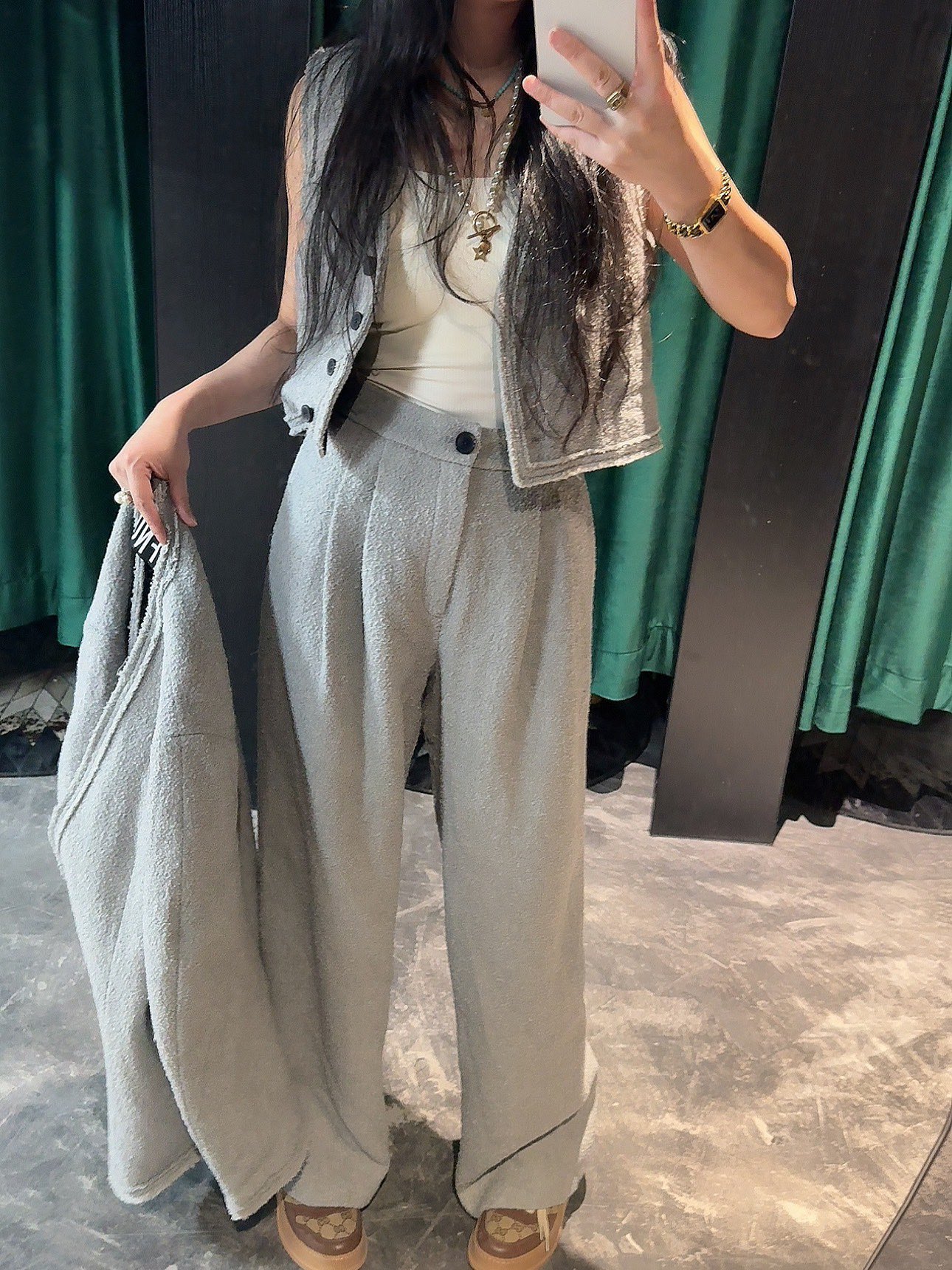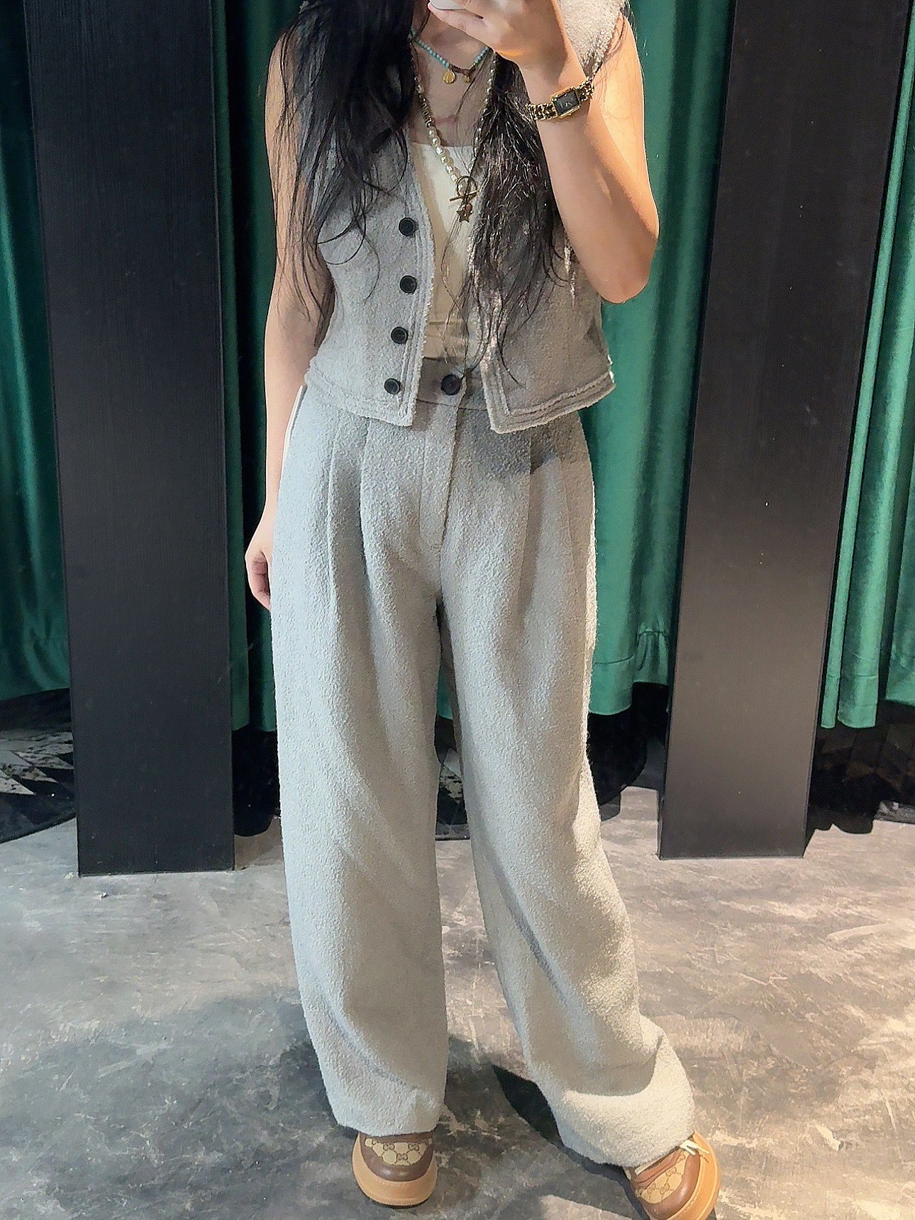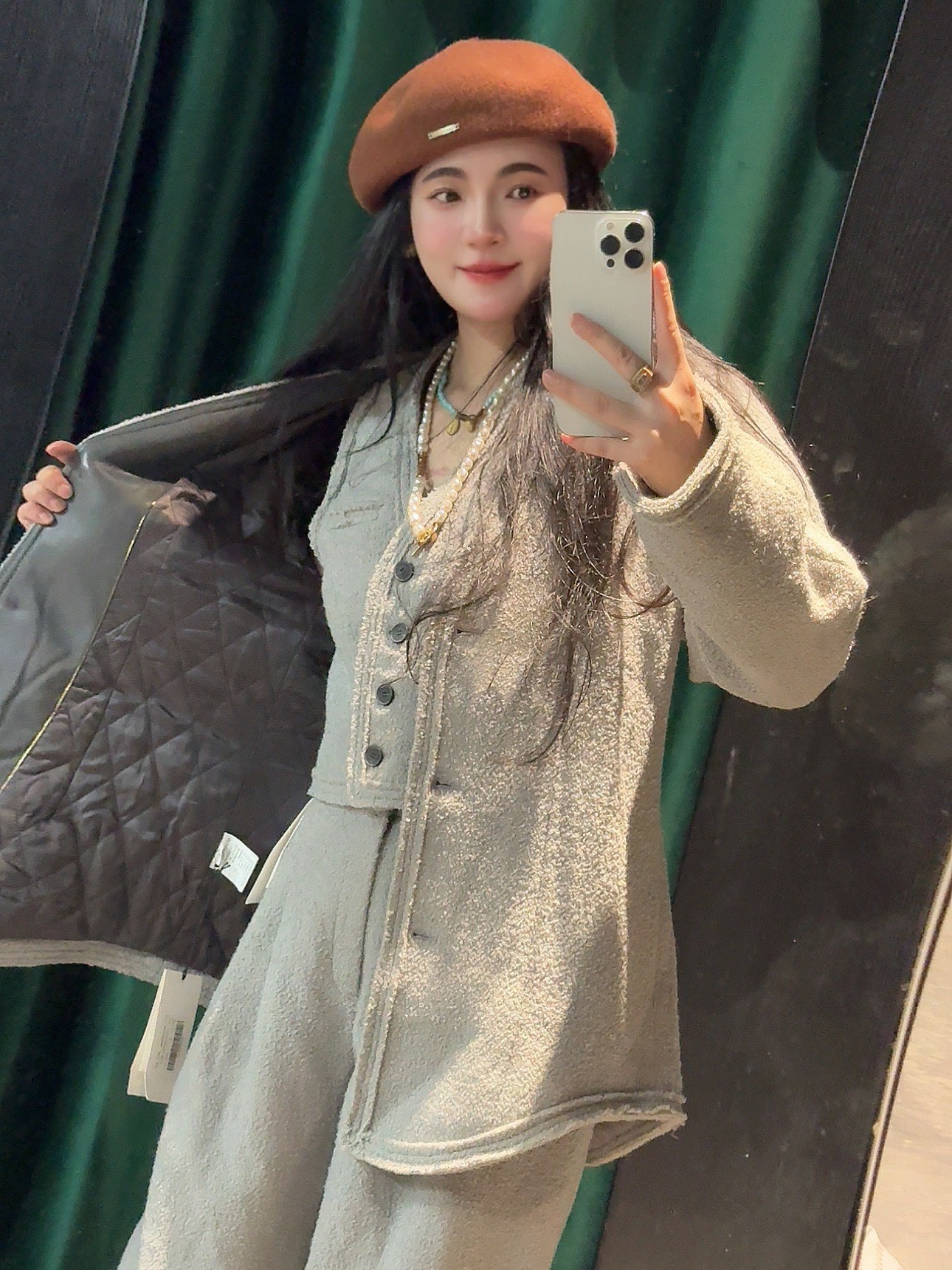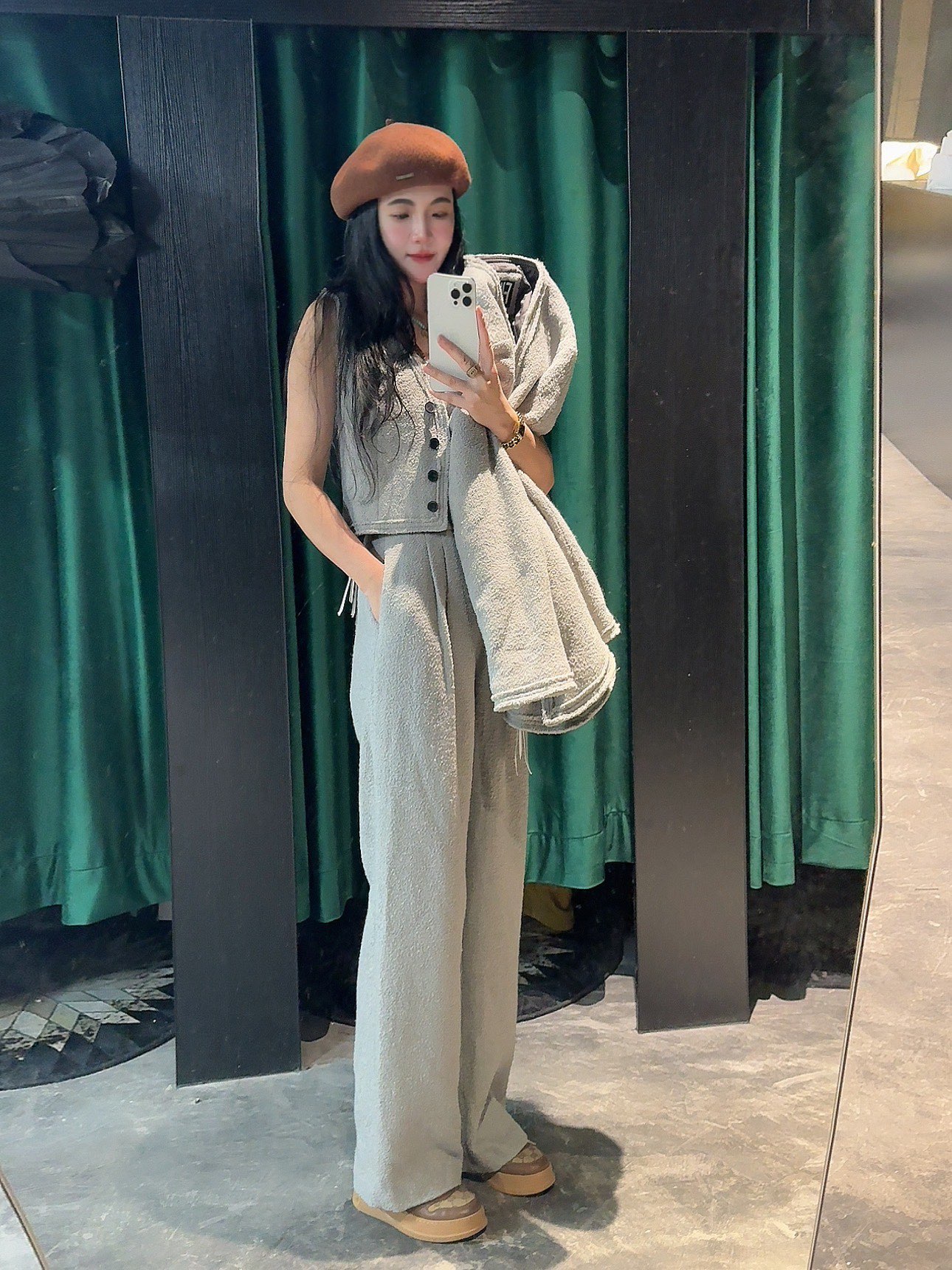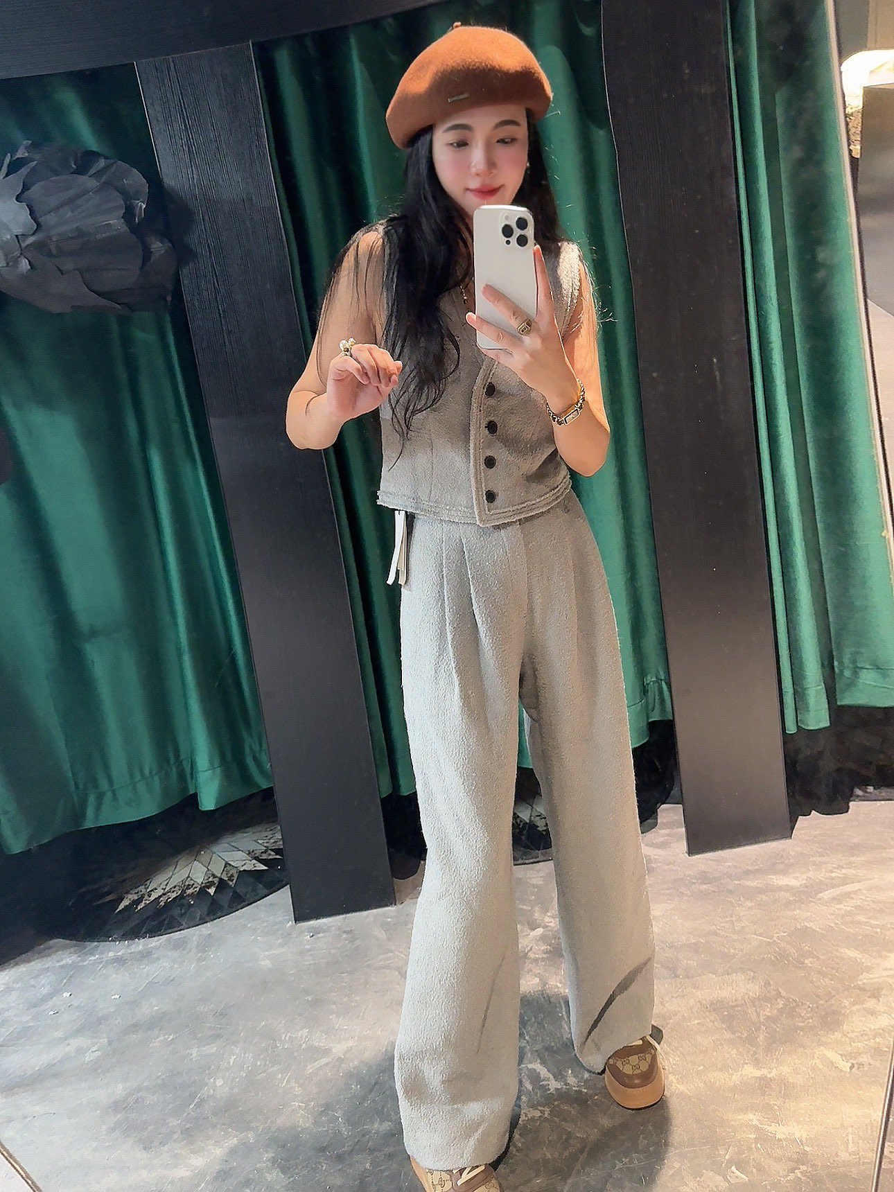 现在刚上架的这款‼️你们准备好!正儿八经深圳买手店高定款!羊毛三件套!比羽绒还暖!又显瘦!而且非常有气场!很罕见的货!数量都不多!全现货在仓!这种套装买手店没有2-3000不可能拿的下来!‼️重点是三件套‼️ 现在天气不穿外套。就搭配背心都够了! 重点‼️市面没有2-3000不可能拿到‼️ 羊毛羊毛!外套内里夹棉 不显臃肿 包容度也很友好哦~ 肩部微垫肩设计 轻松穿出直角肩效果 利落的平驳领很有气质 单排扣设计 方便日常穿脱 下身经典的直筒裤 遮跨显瘦 视觉上收拢臀腿 上身温柔知性 高级感满满‼️羊毛含量百分之50‼️我穿S。2色都自己留了‼️